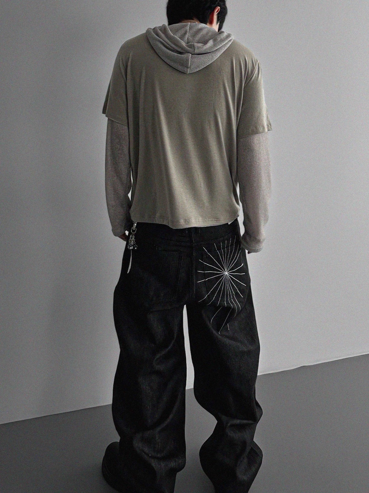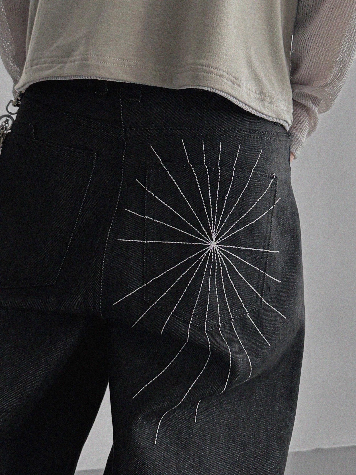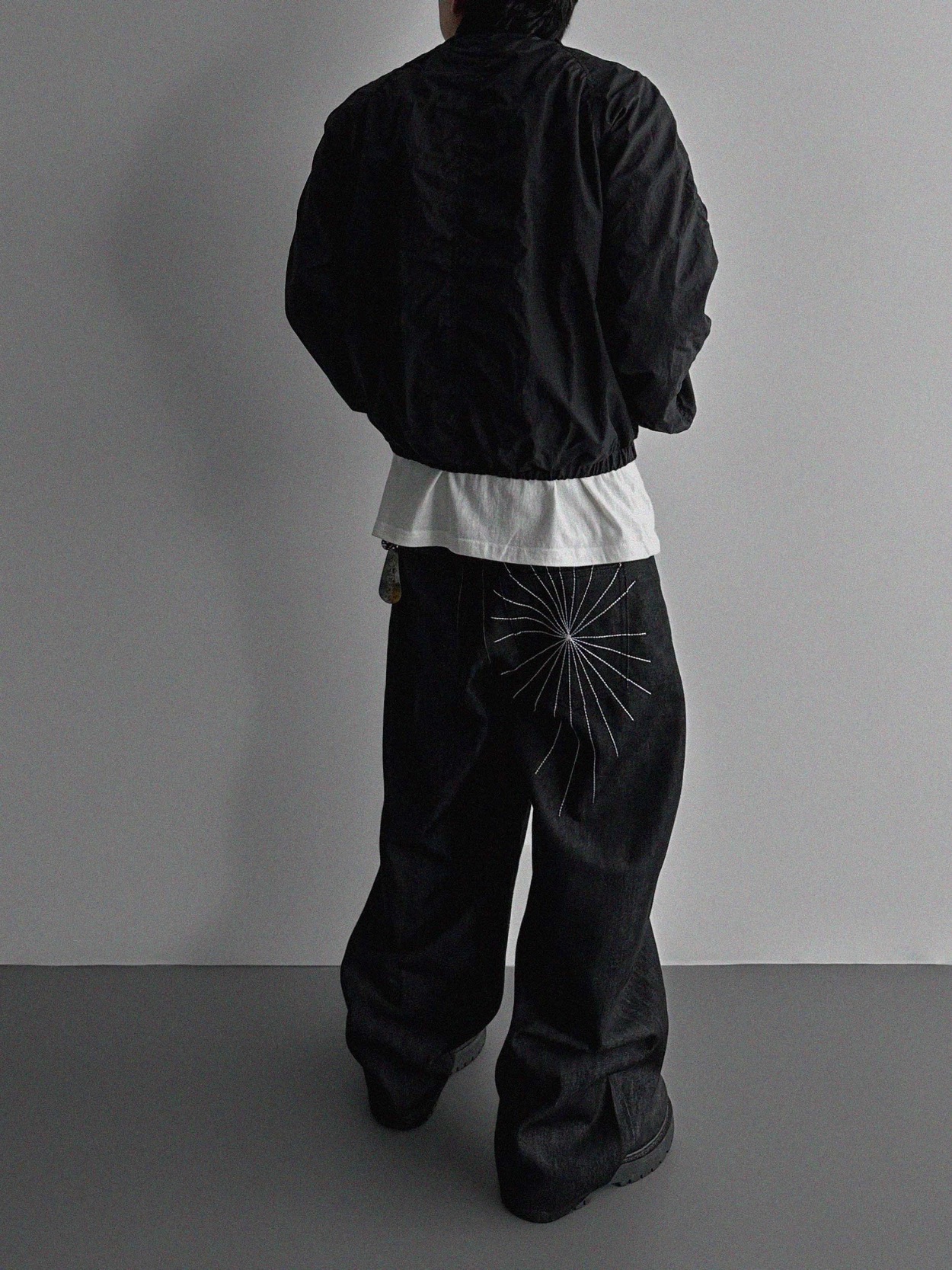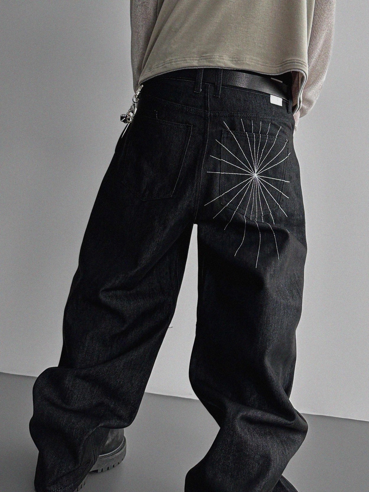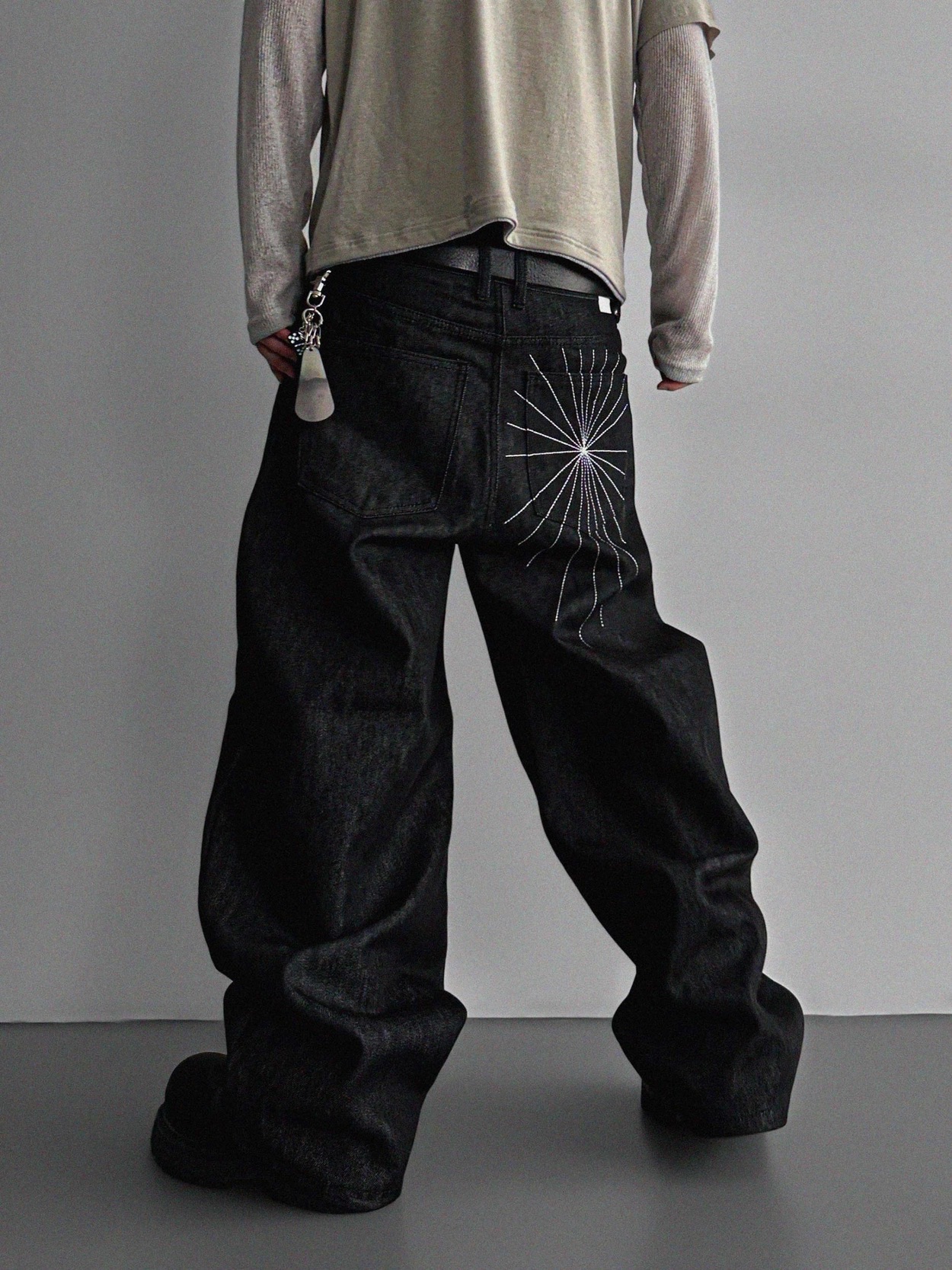 韓國 蜘蛛 刺繡 重磅 丹寧 寬版 牛仔褲 (2color)