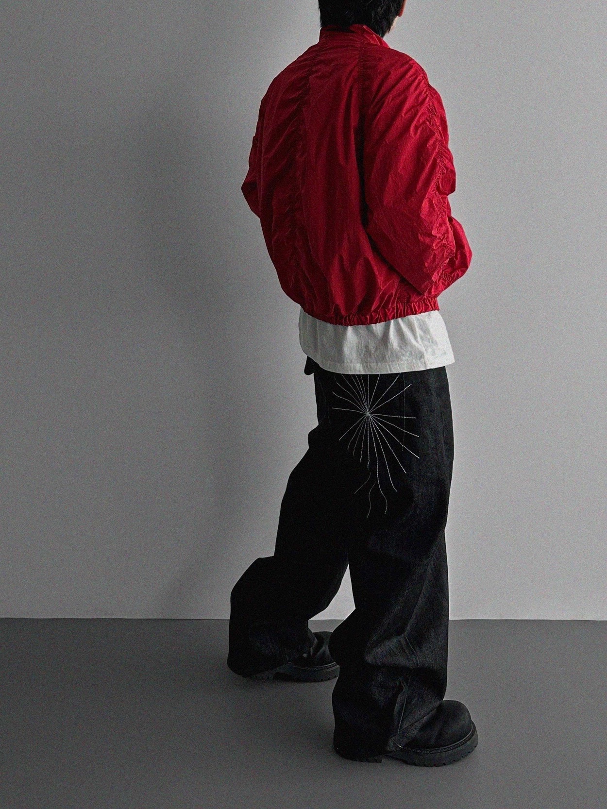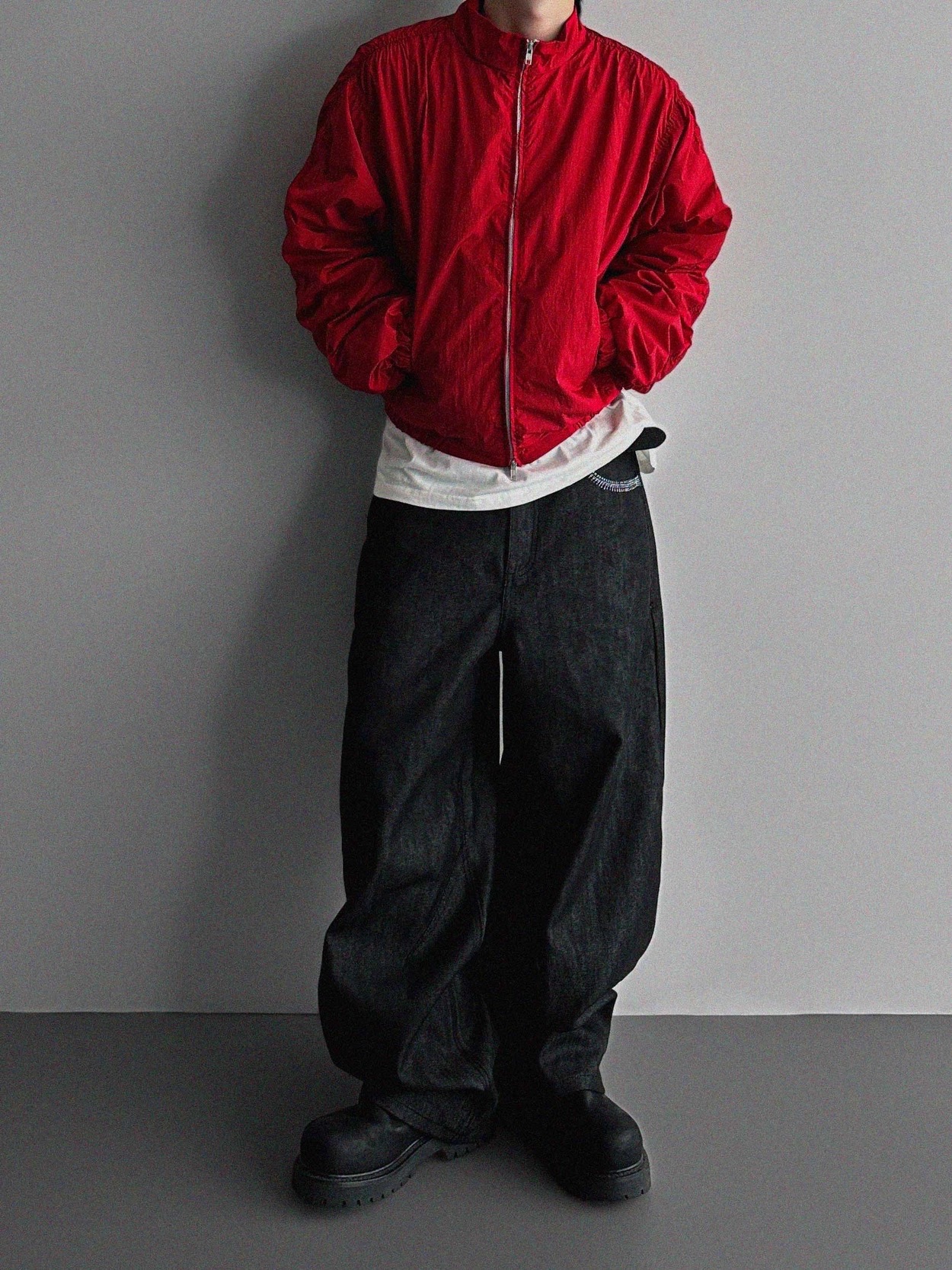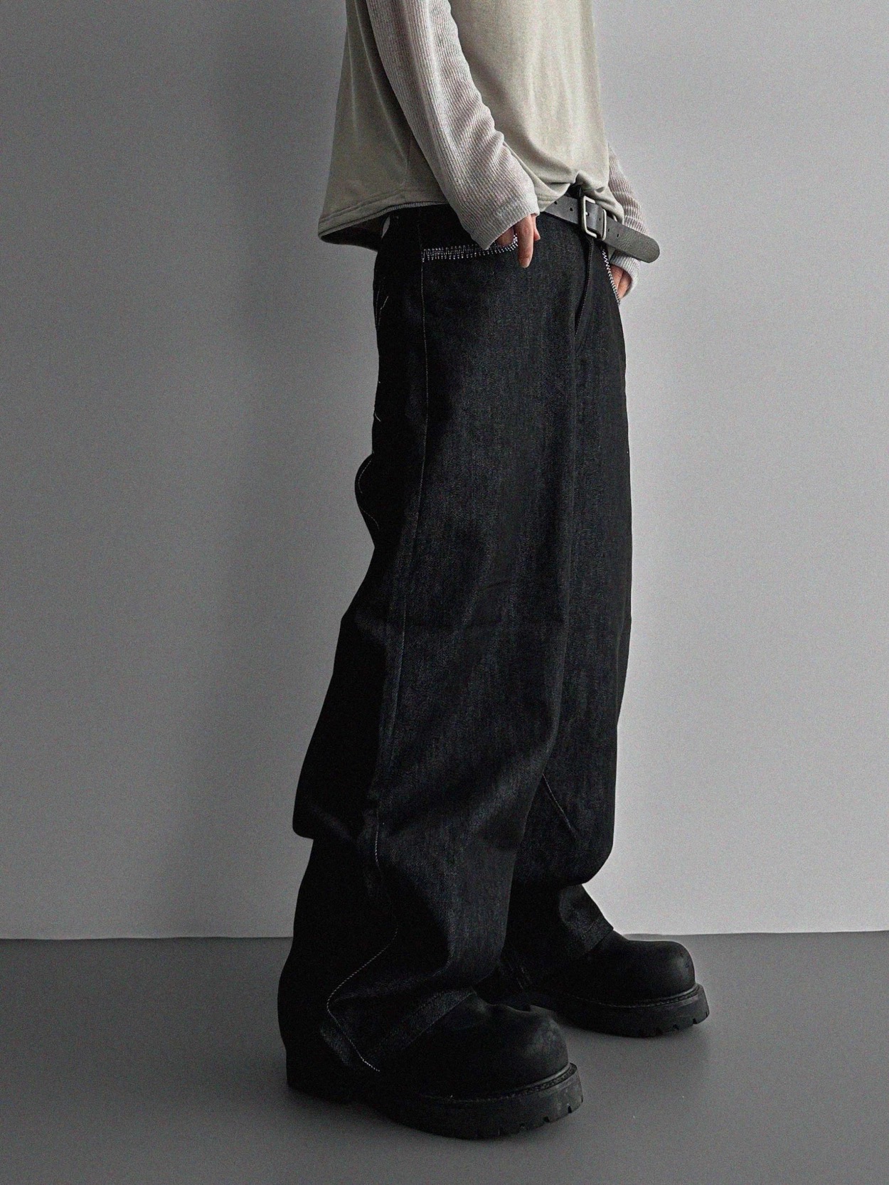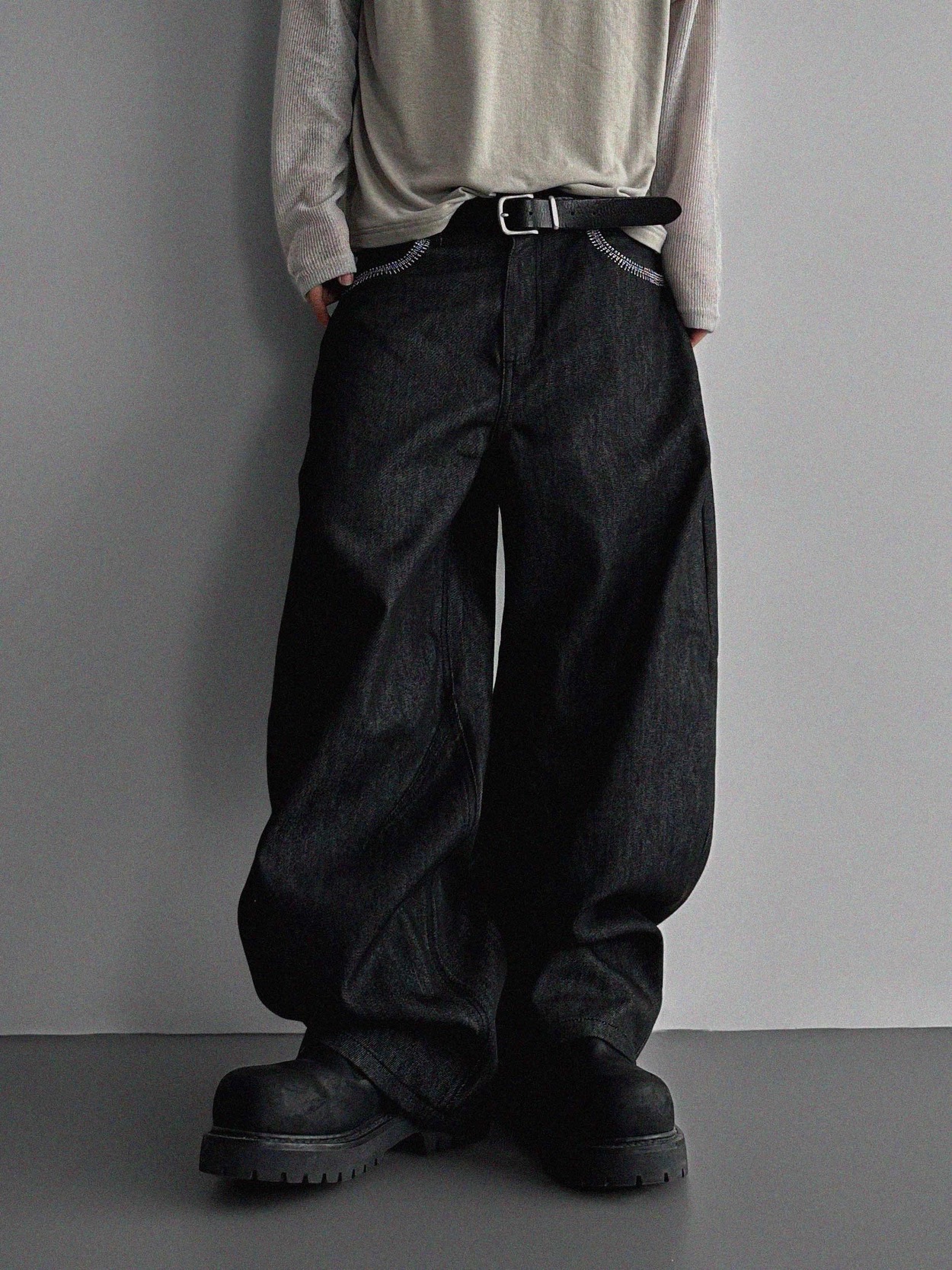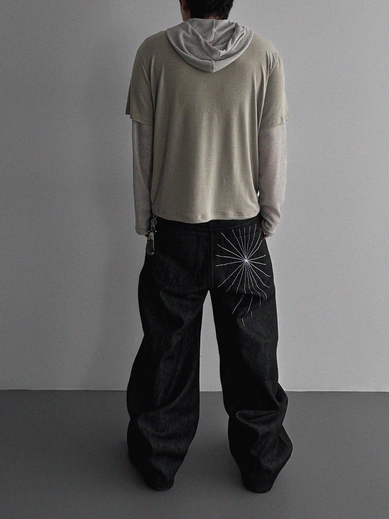 韓國 蜘蛛 刺繡 重磅 丹寧 寬版 牛仔褲 (2color)