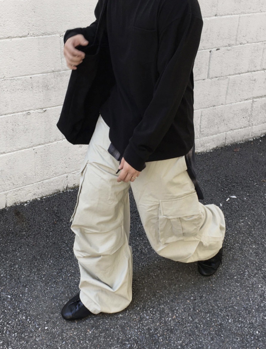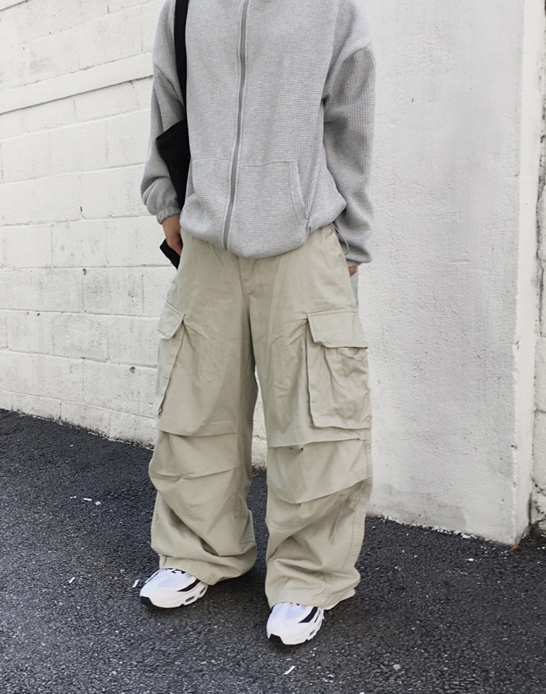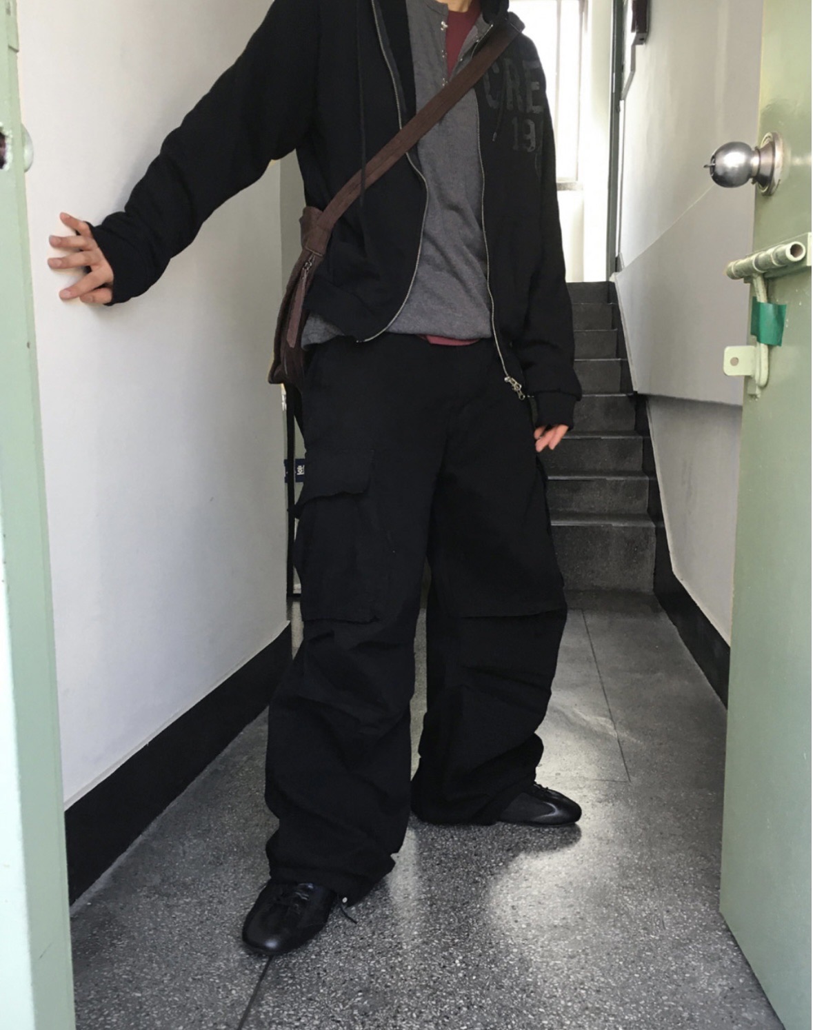 HOLY IN CODE 層次感 打摺 大口袋 重磅 水洗 寬版 工作褲 (3color)