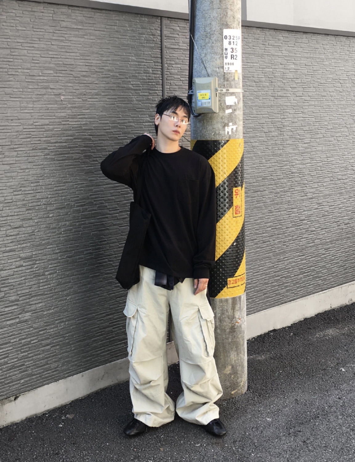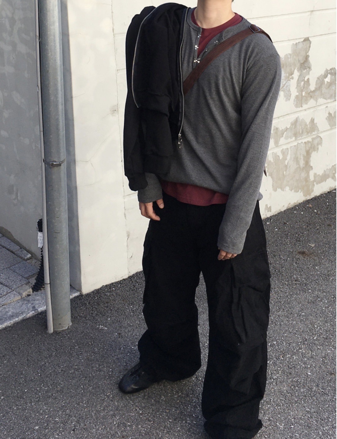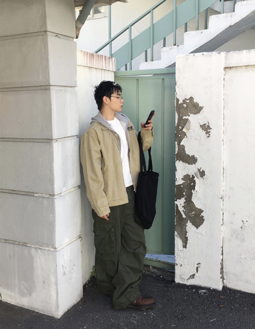 HOLY IN CODE 層次感 打摺 大口袋 重磅 水洗 寬版 工作褲 (3color)