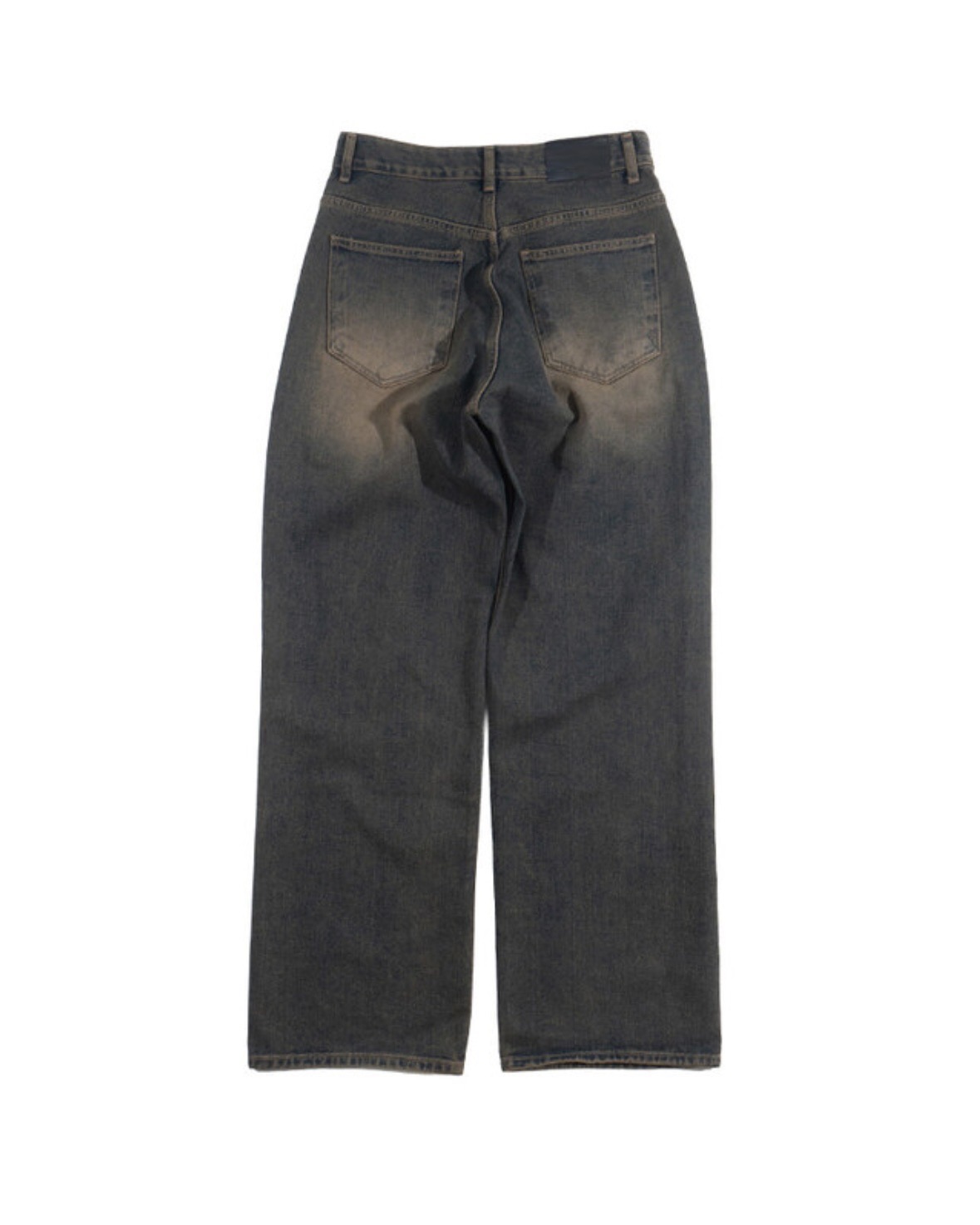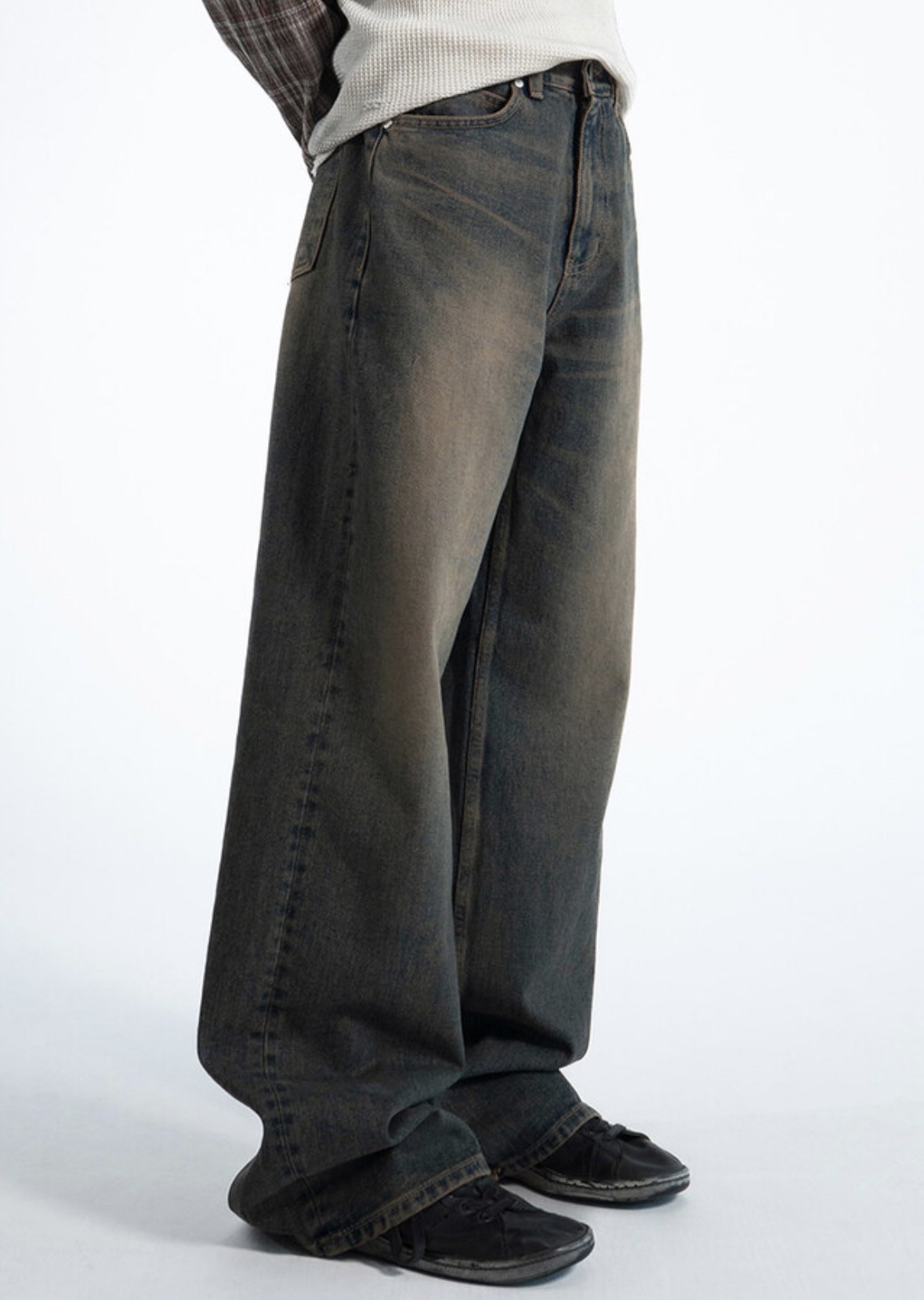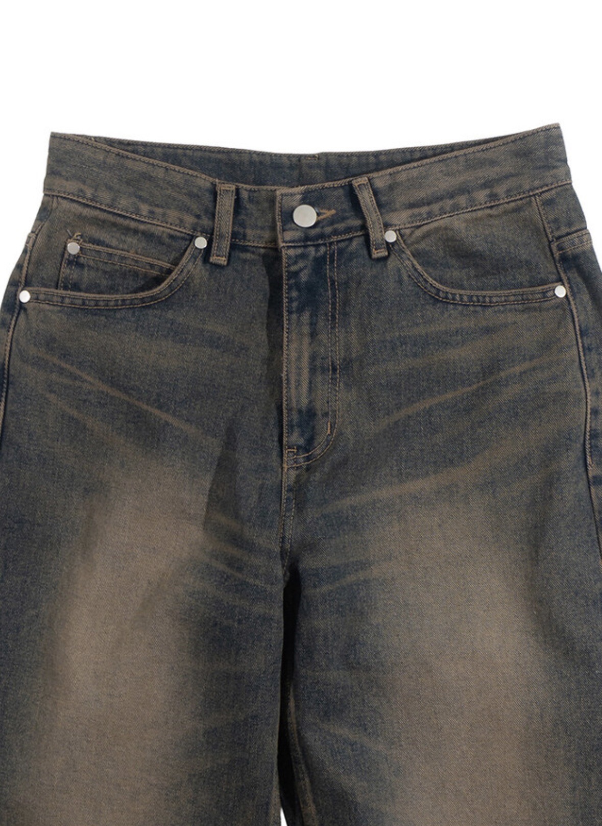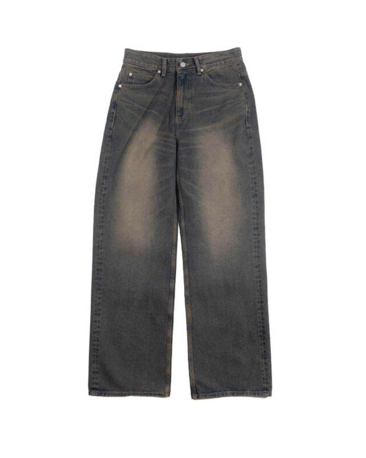 韓國 亞馬遜 沼澤 泥汙 做舊感 水洗 寬版 牛仔褲