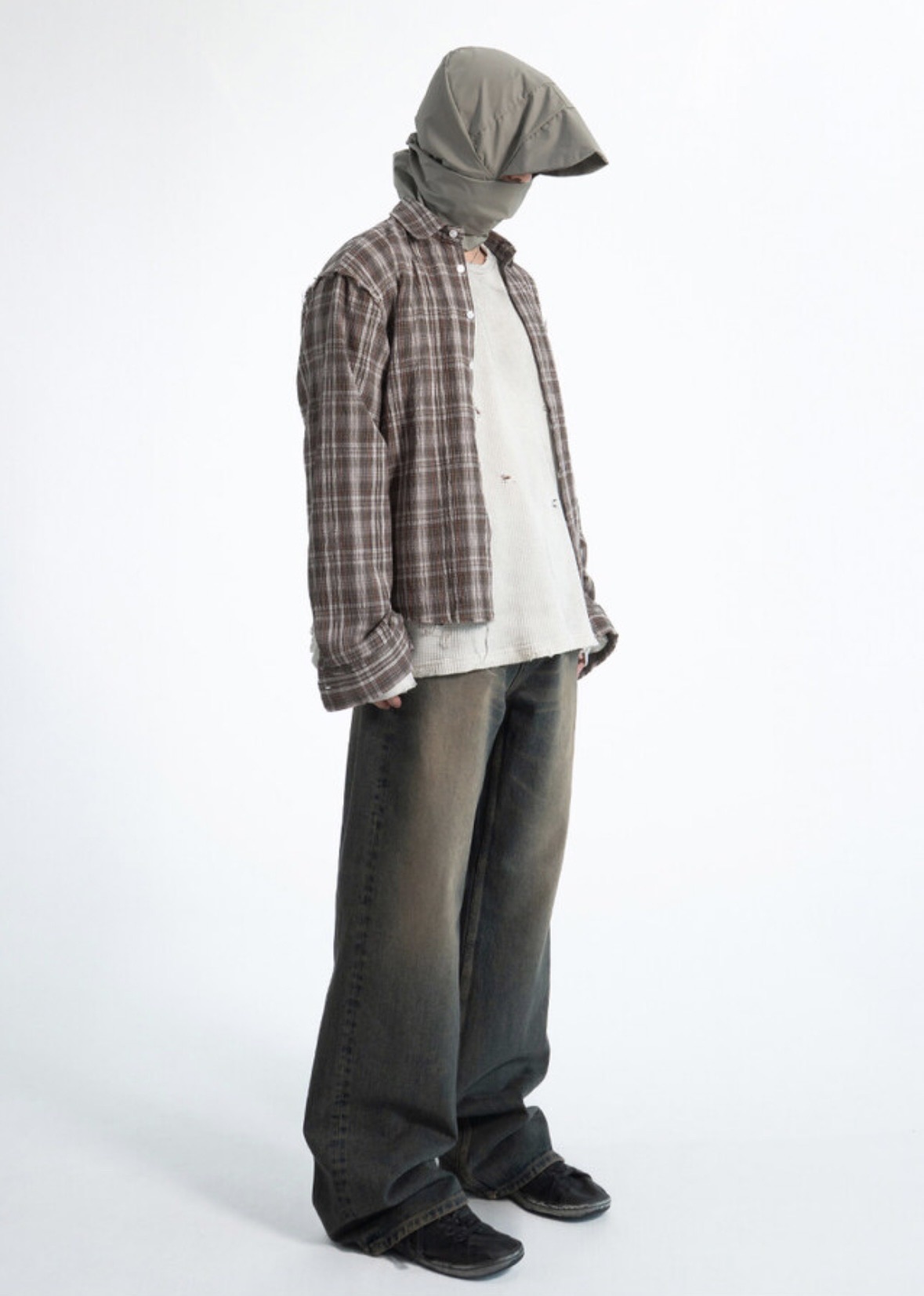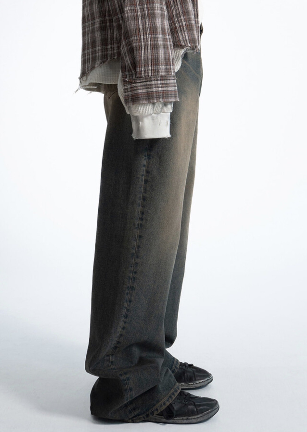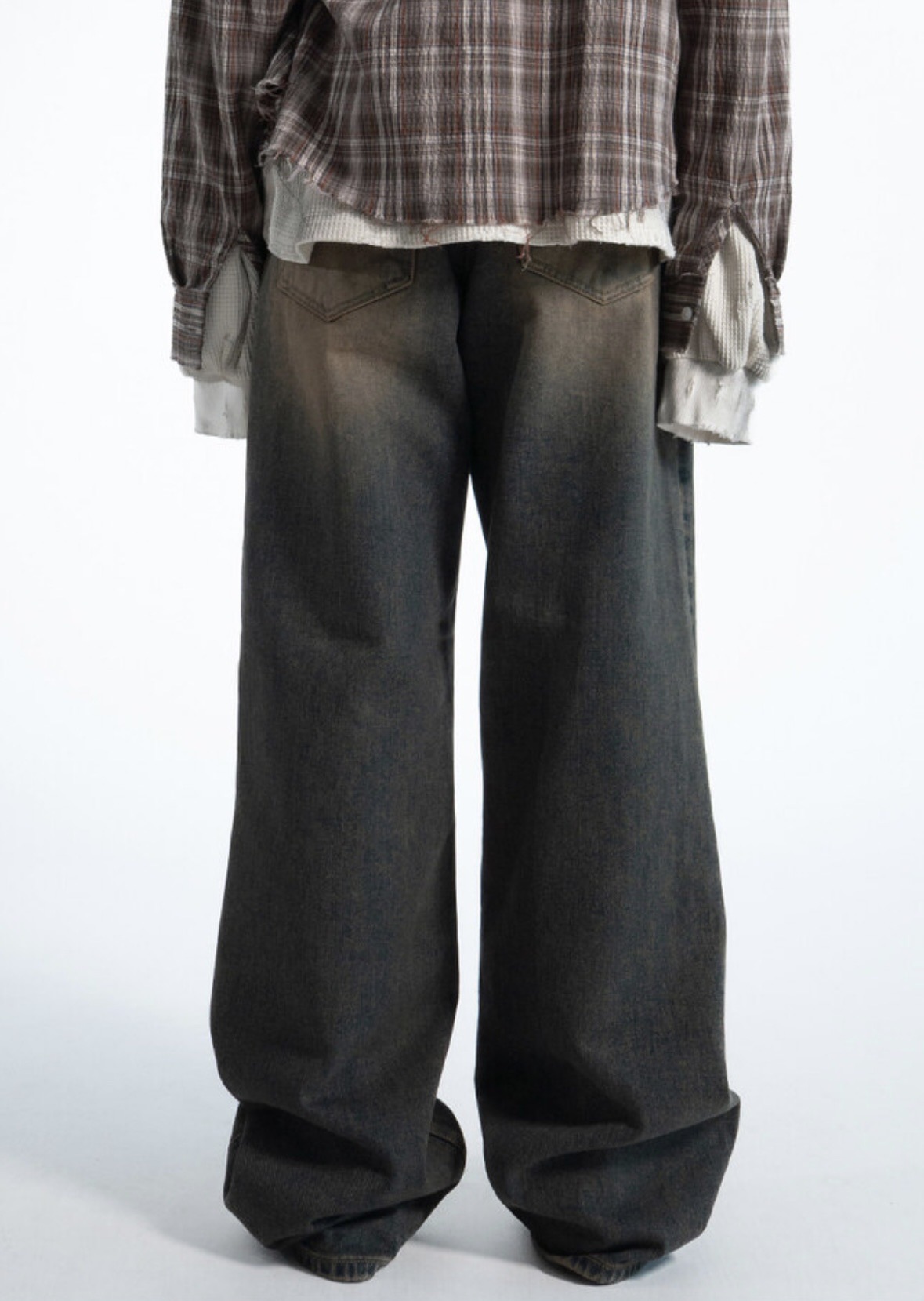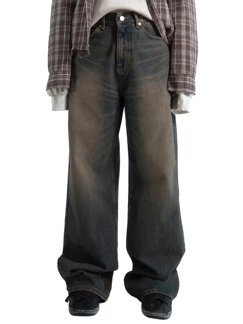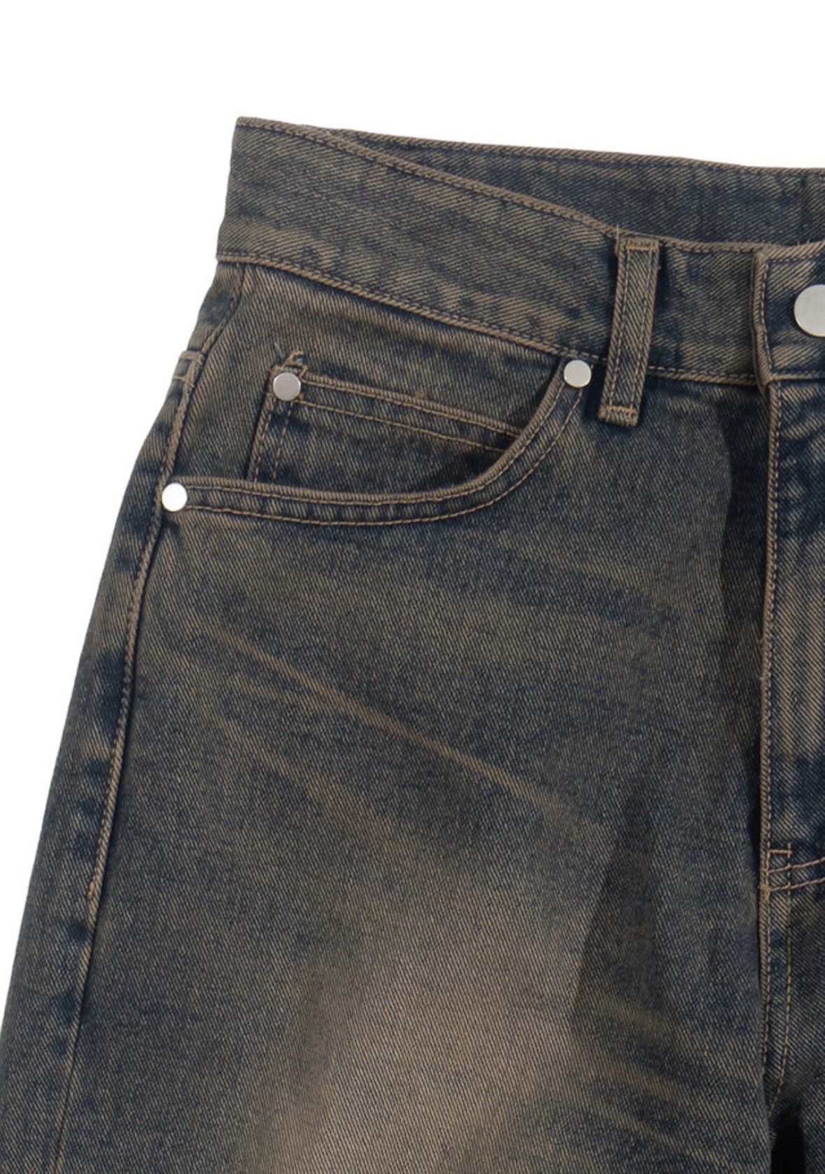 韓國 亞馬遜 沼澤 泥汙 做舊感 水洗 寬版 牛仔褲