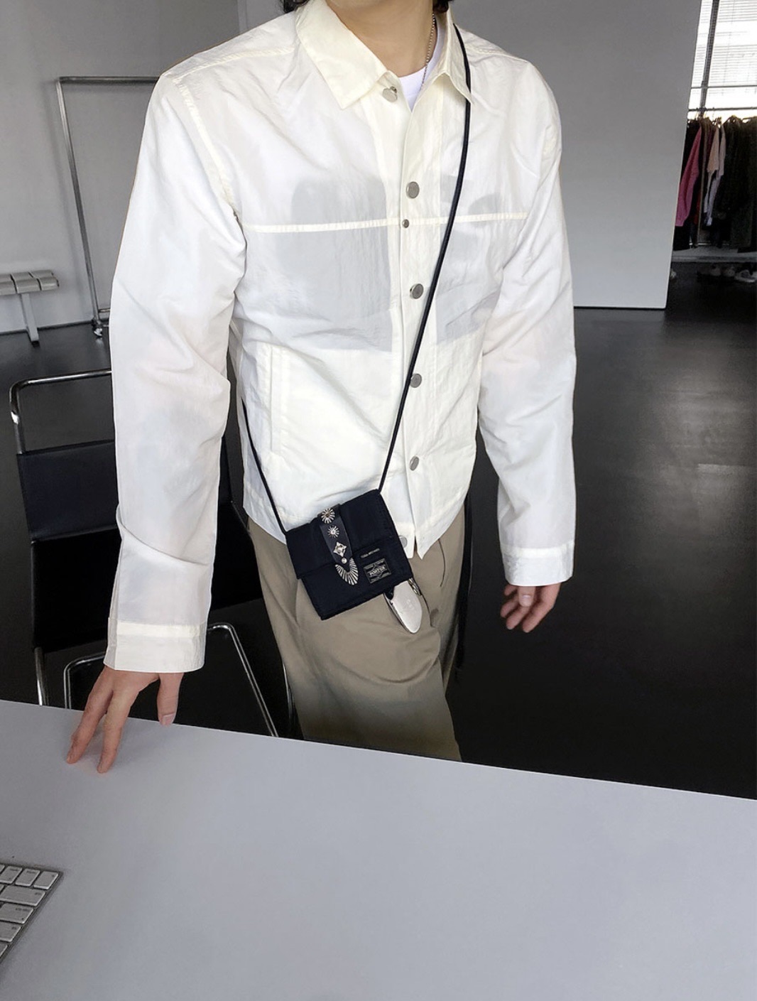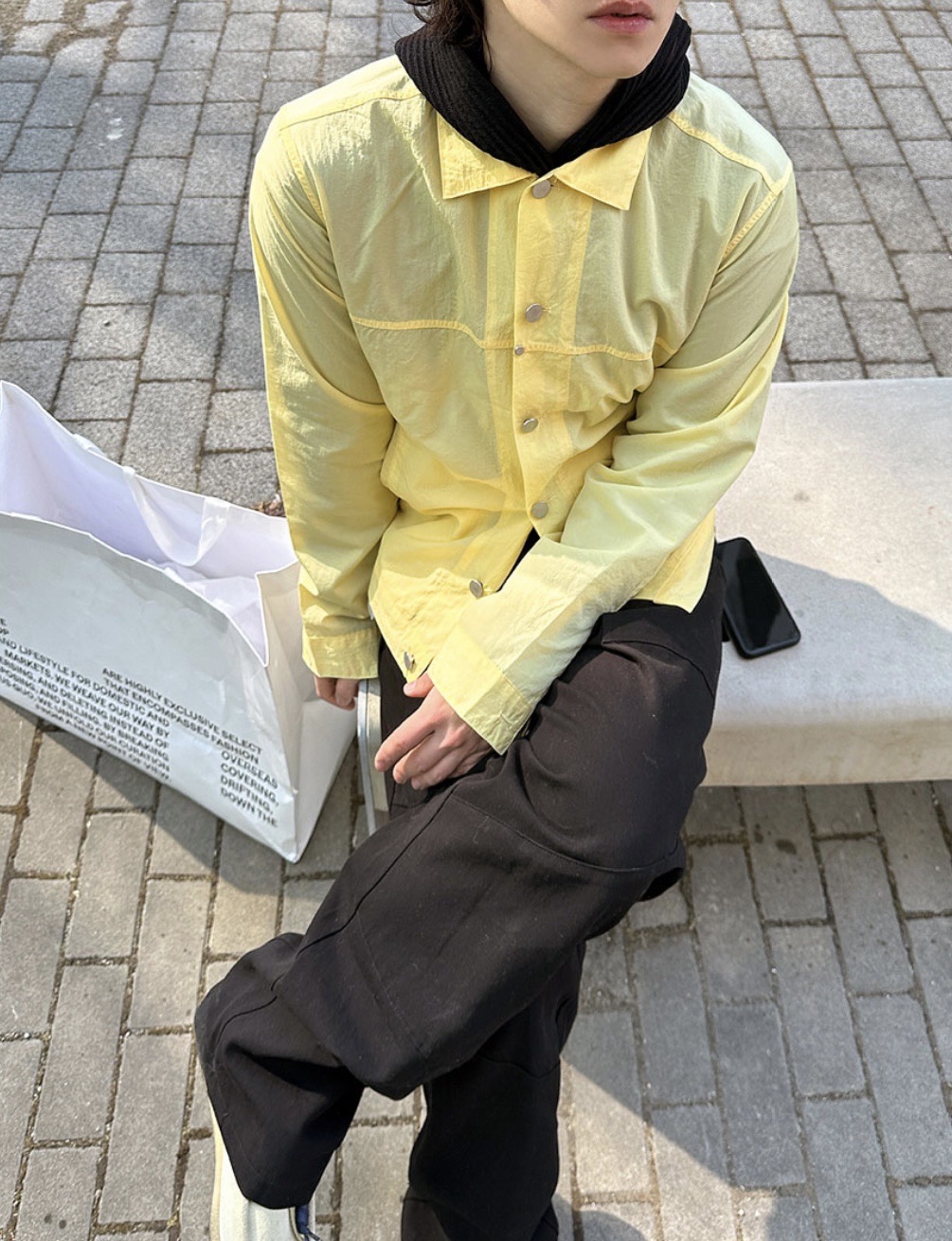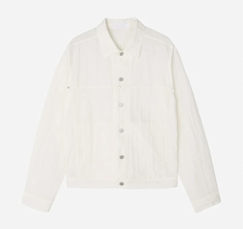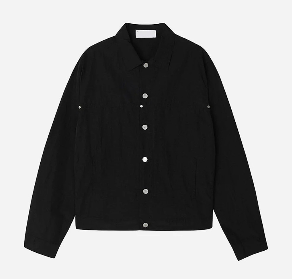 (NCT Mark著用) HOLY IN CODE 裁線 光澤 設計感 尼龍 短版 鈕扣 外套 (3color)