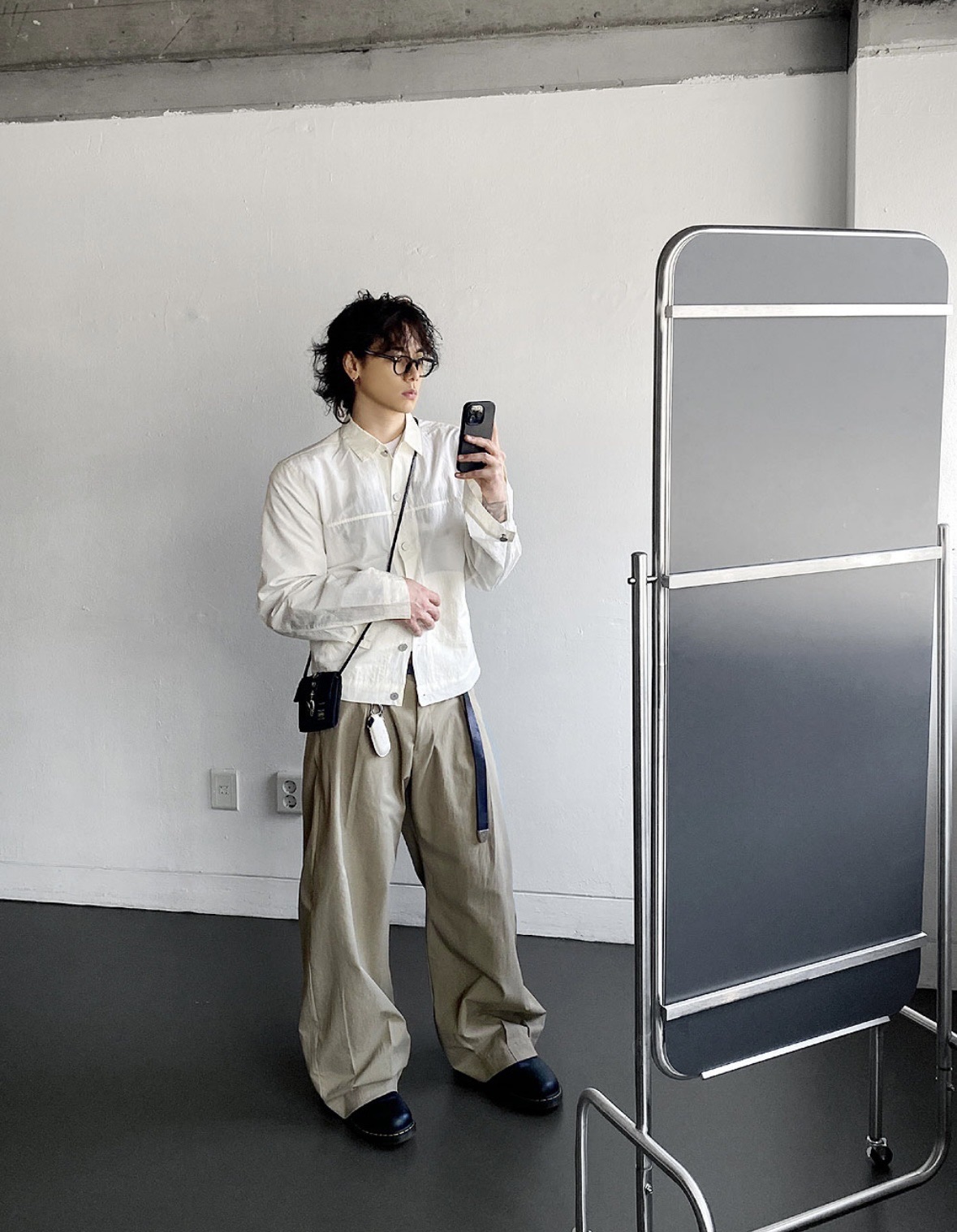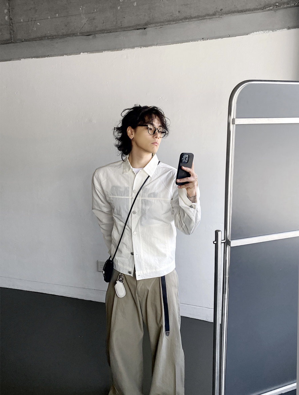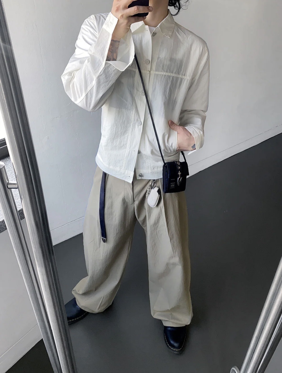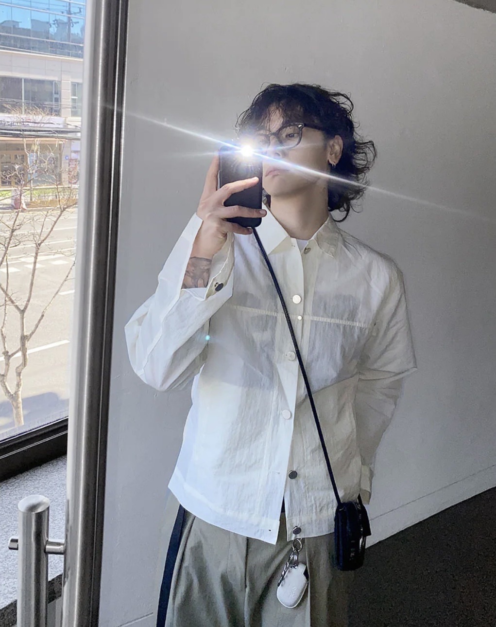 (NCT Mark著用) HOLY IN CODE 裁線 光澤 設計感 尼龍 短版 鈕扣 外套 (3color)