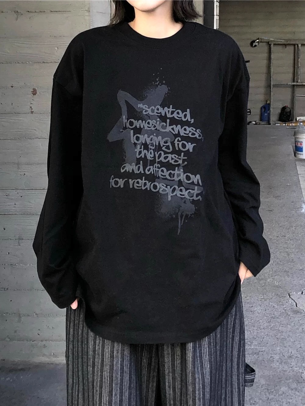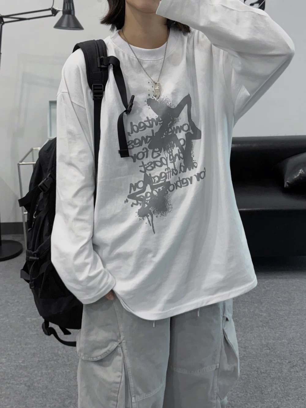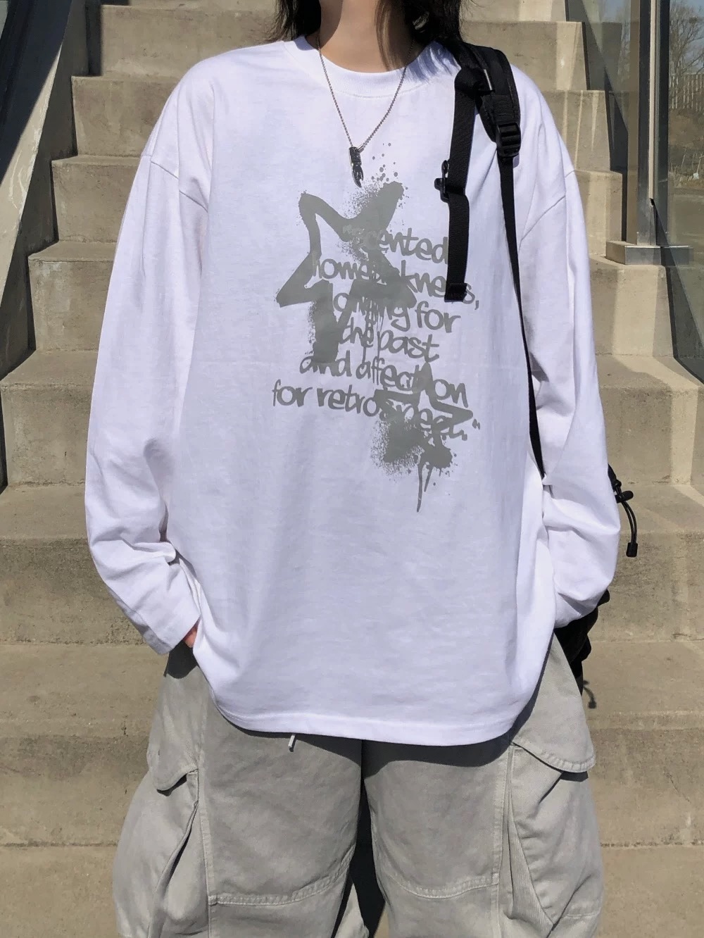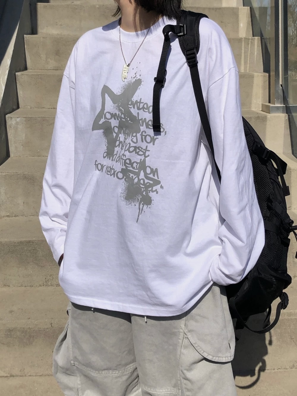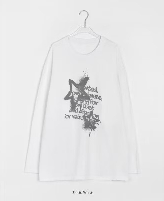 韓國 STAR 星星 文字 噴漆 塗鴉 薄長袖 長T (2color)