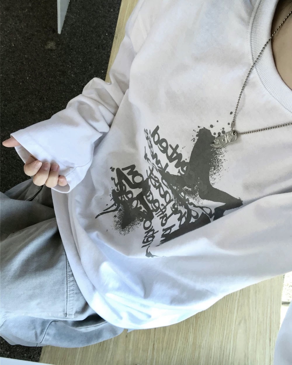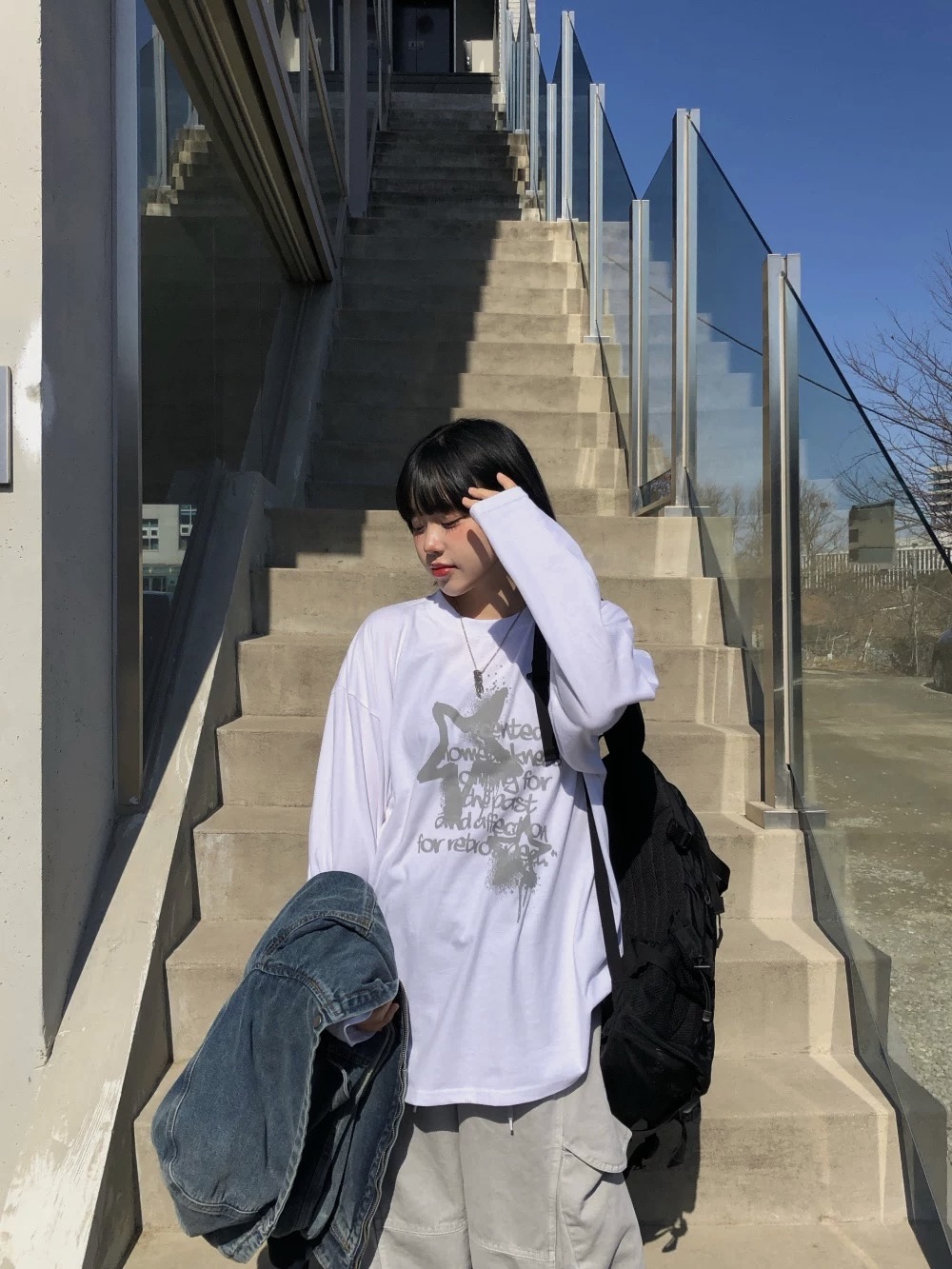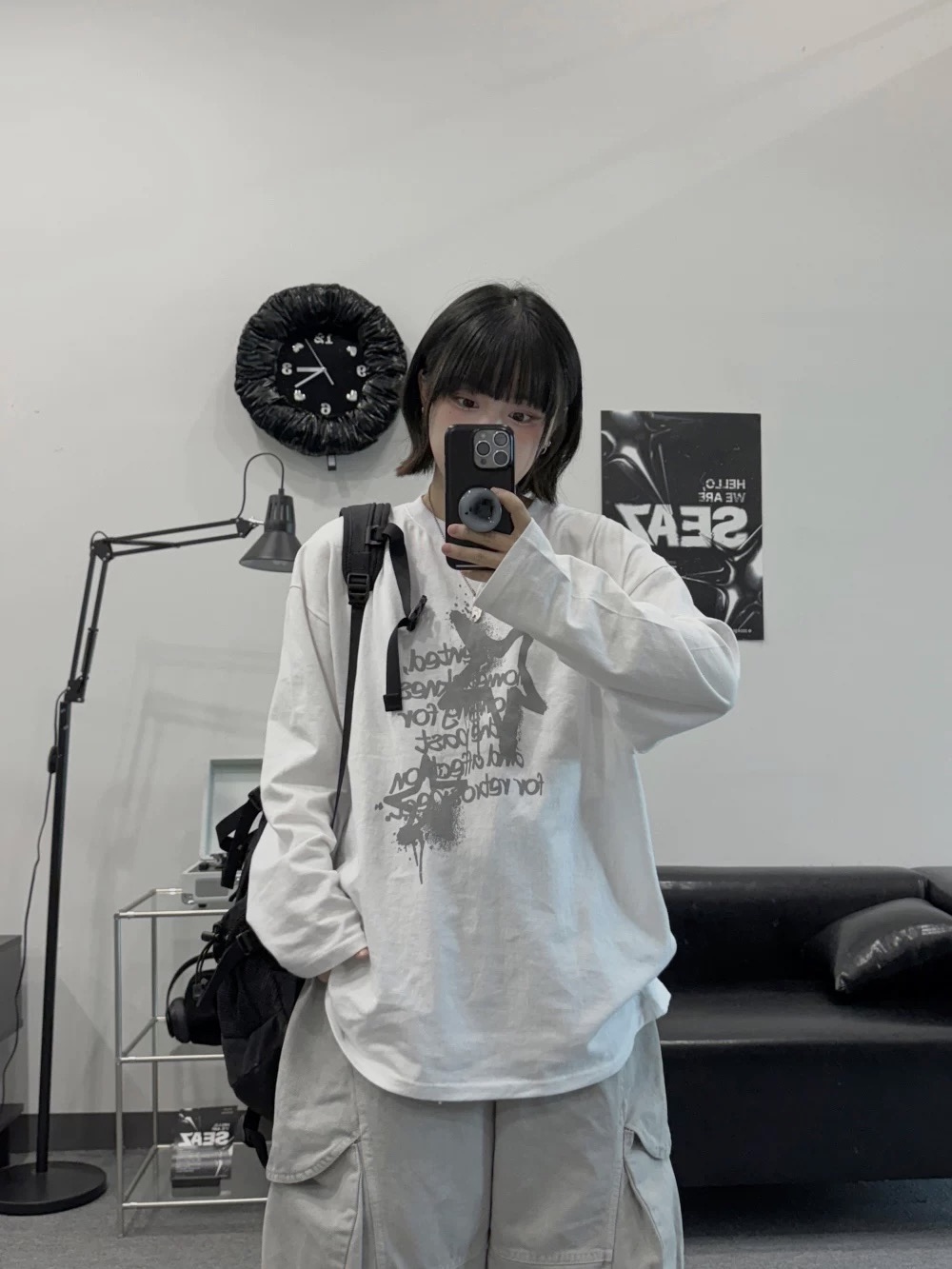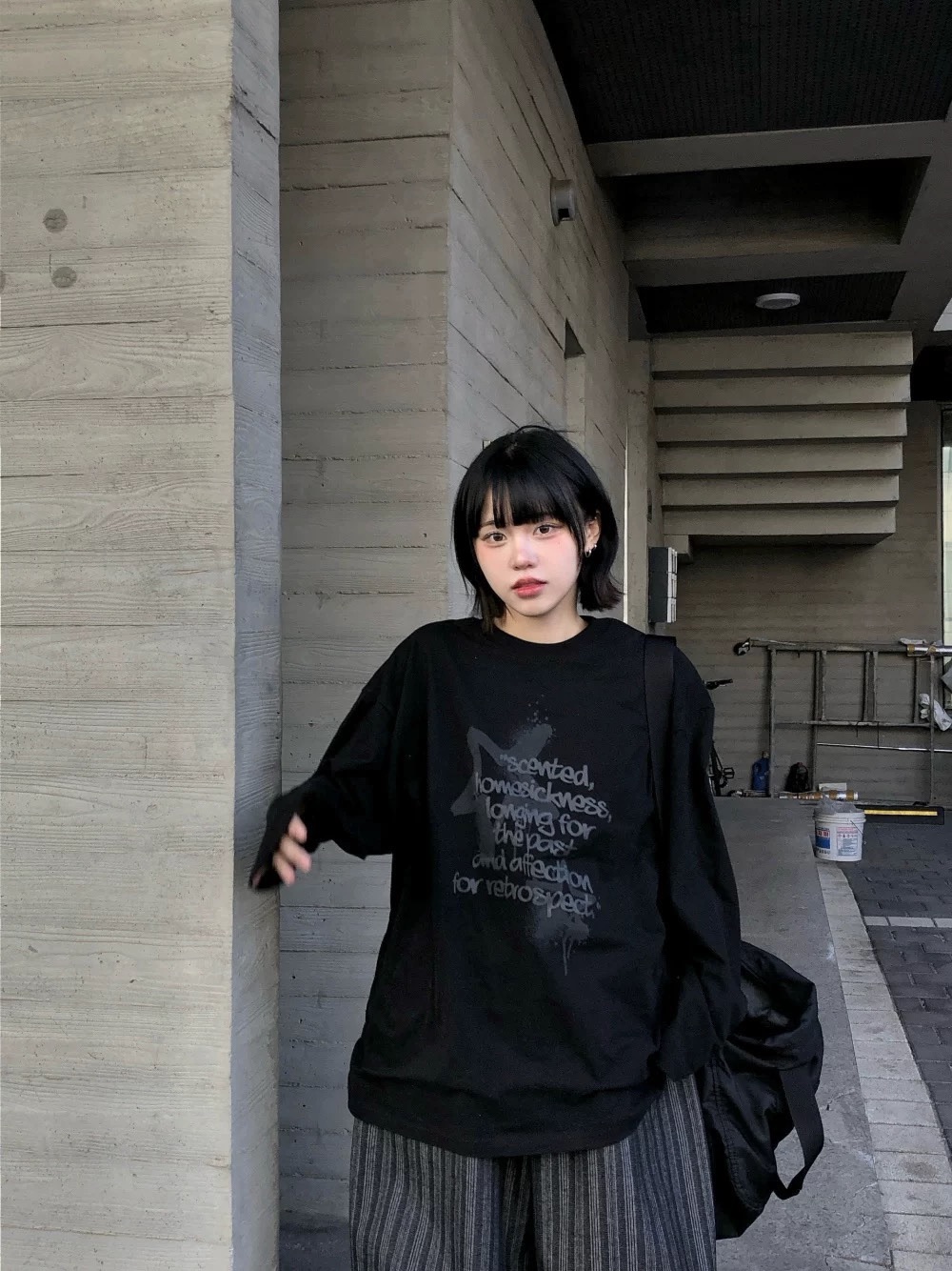 韓國 STAR 星星 文字 噴漆 塗鴉 薄長袖 長T (2color)
