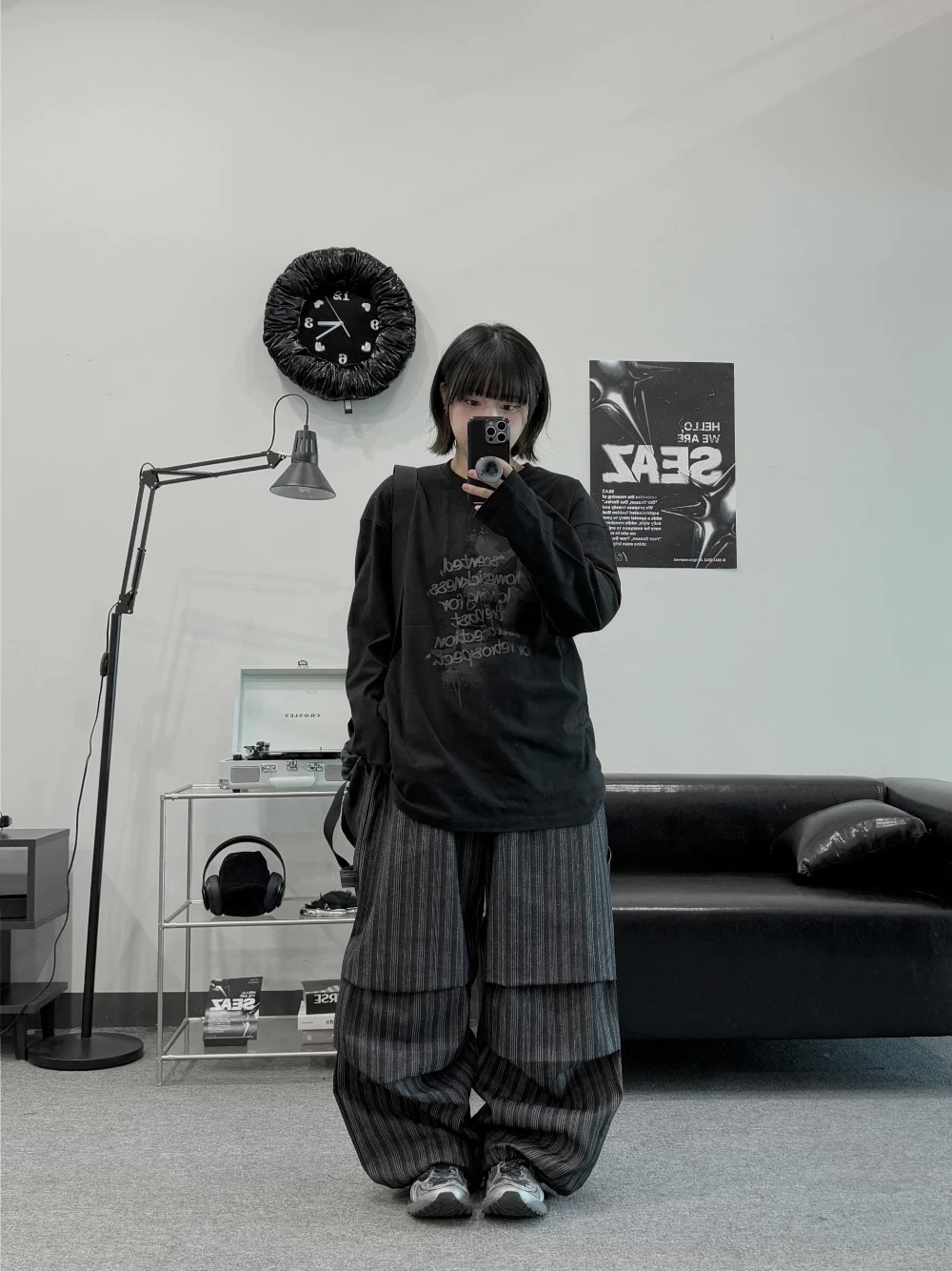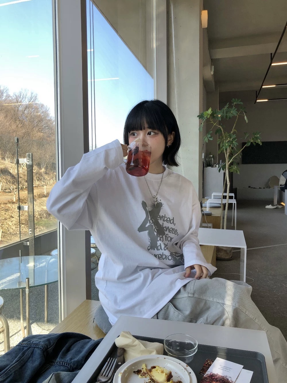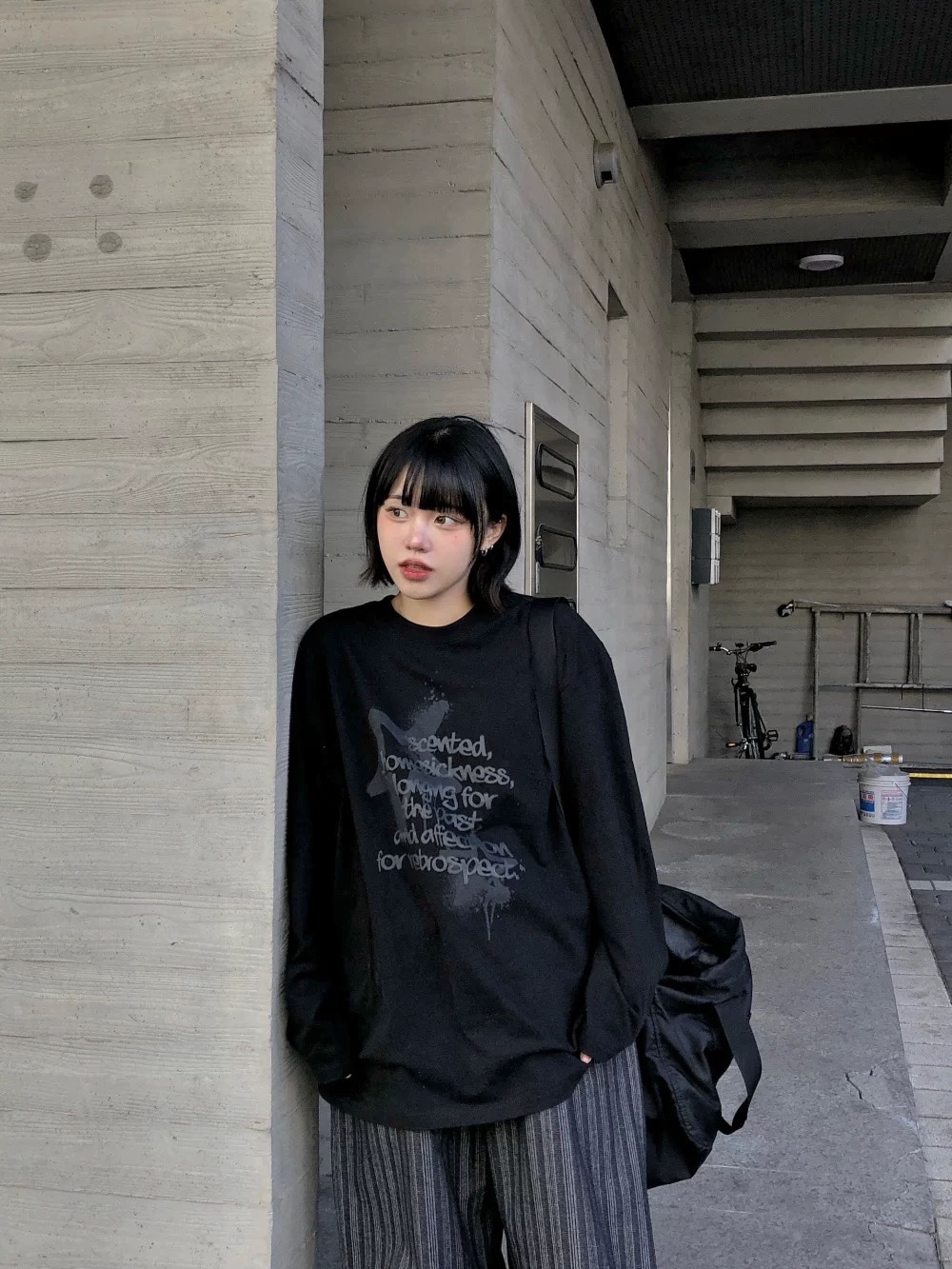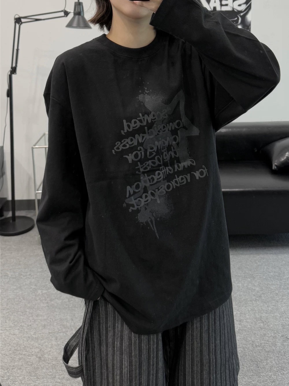韓國 STAR 星星 文字 噴漆 塗鴉 薄長袖 長T (2color)