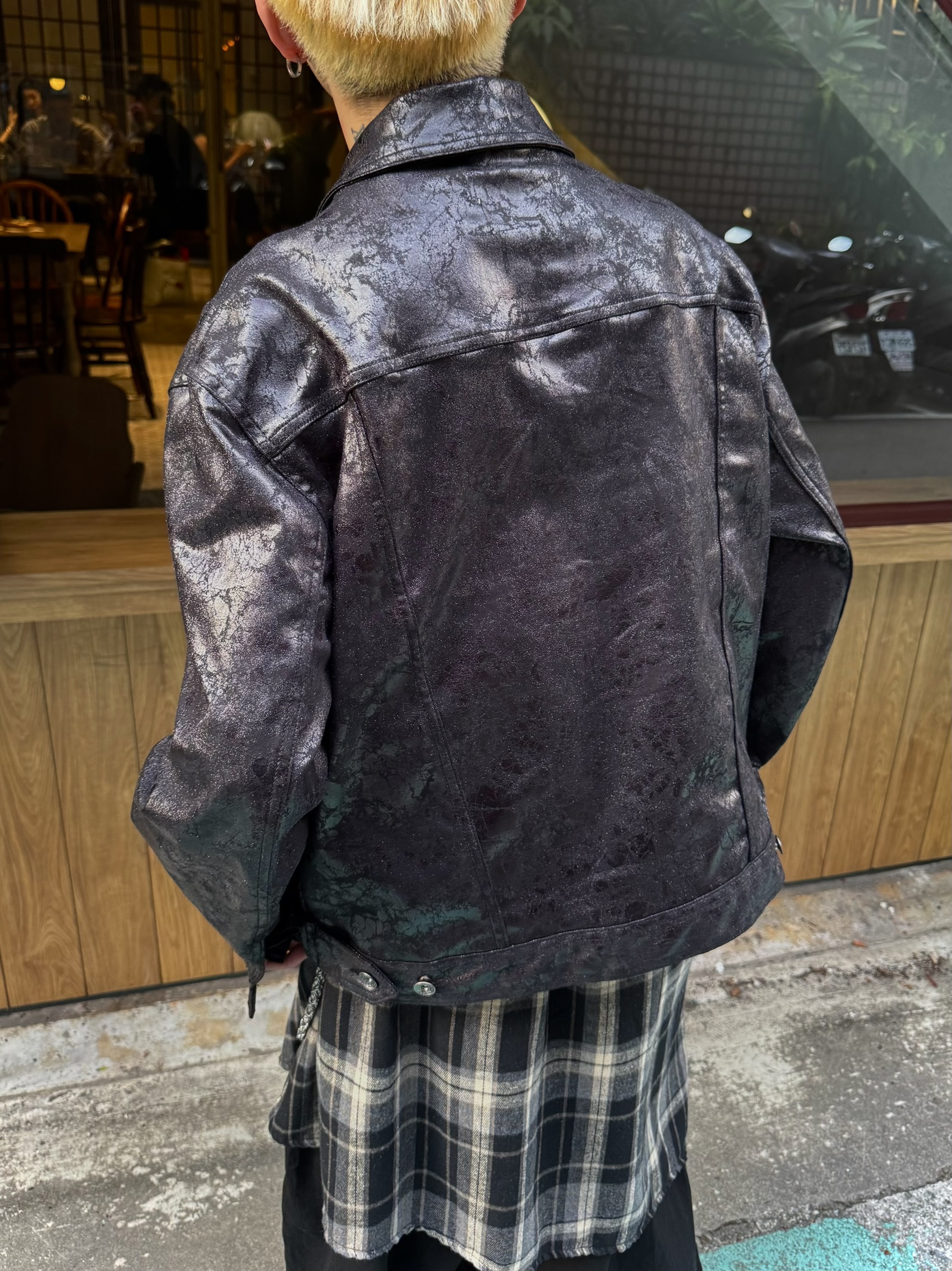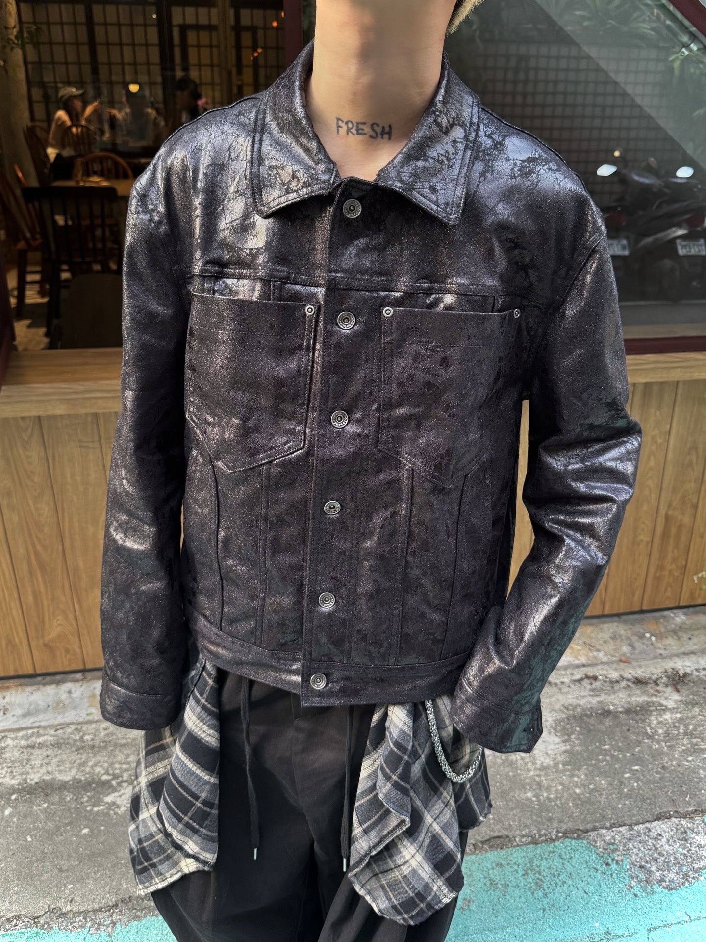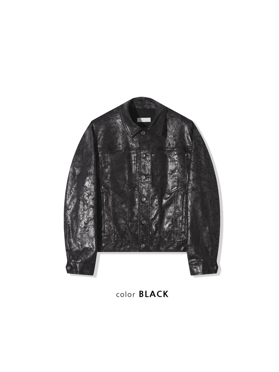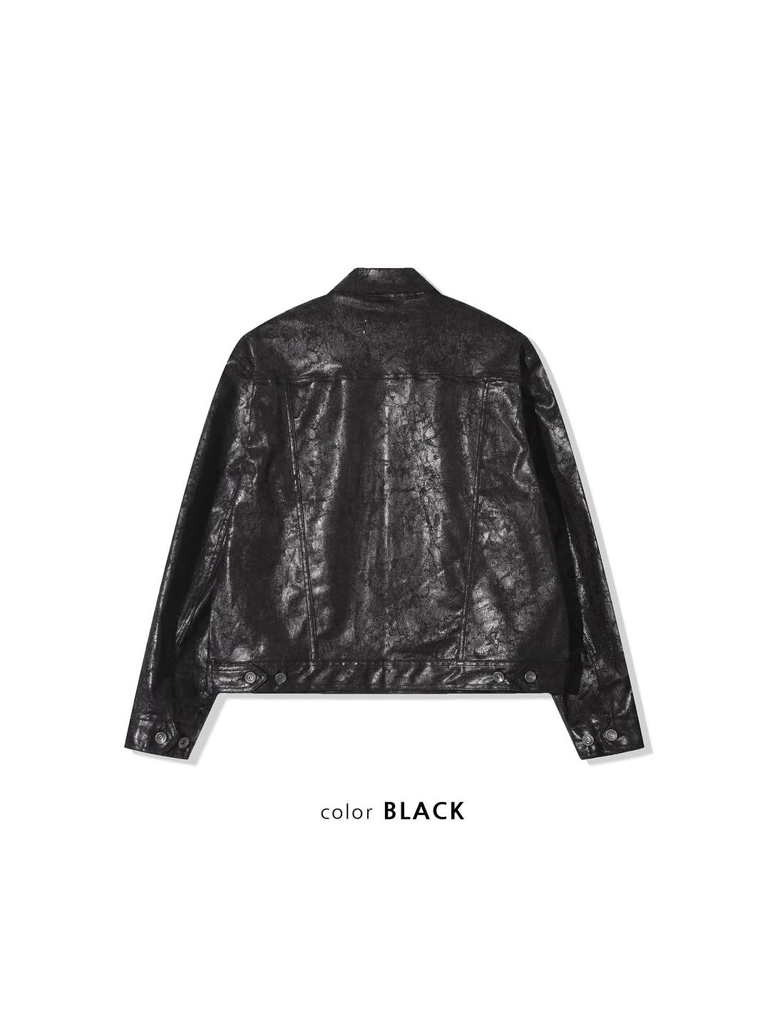 韓國 裂紋 上蠟 鉚釘 設計感 立體 硬挺 皮夾克 外套