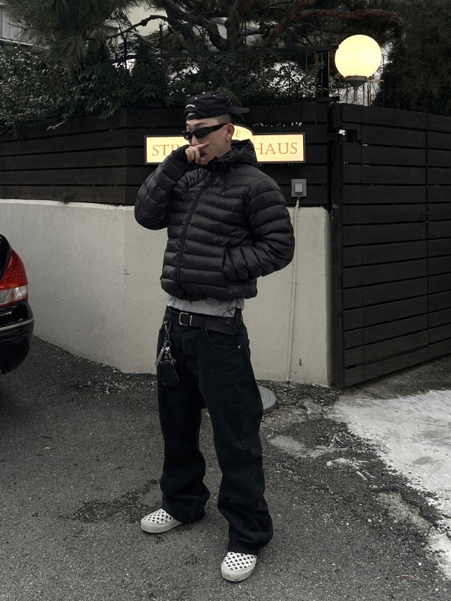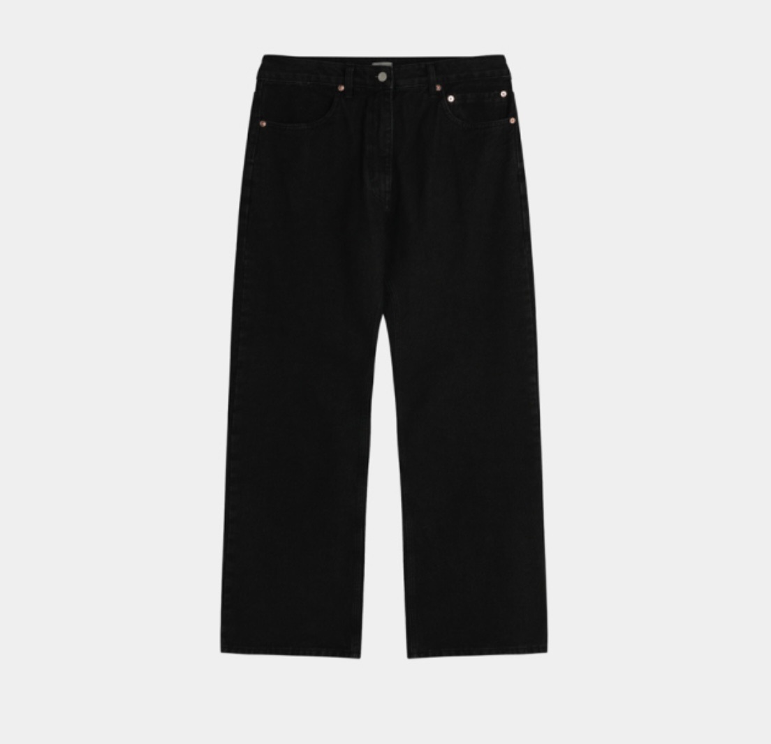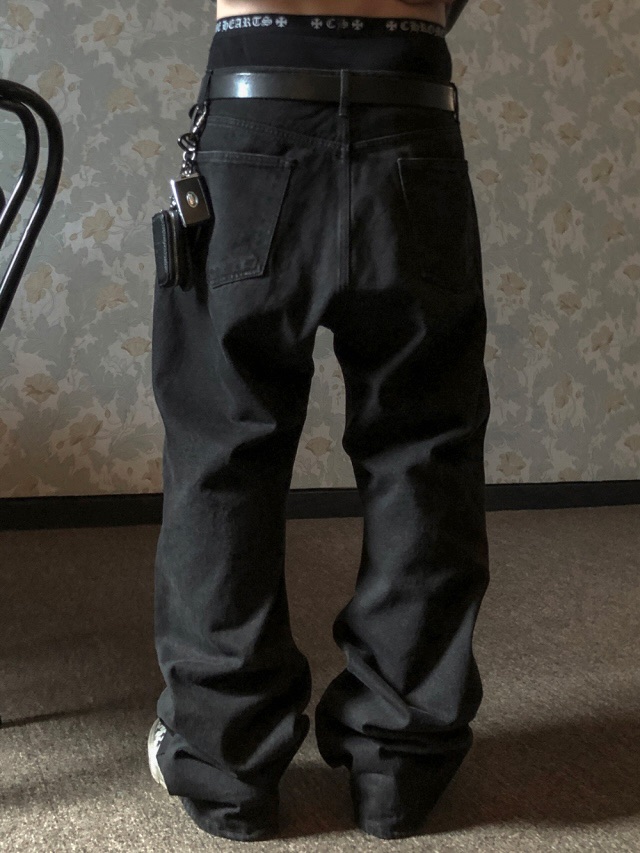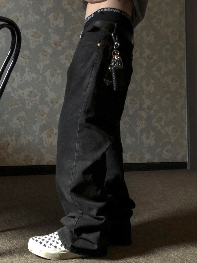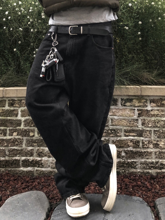 ESSU 完美版型 堆積感 街頭 水洗 寬版 黑牛仔褲