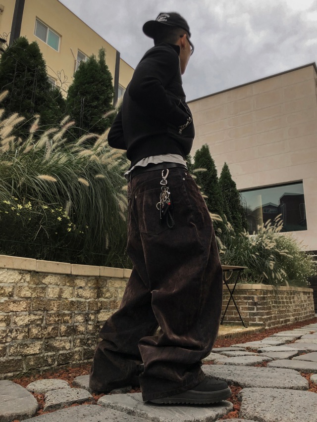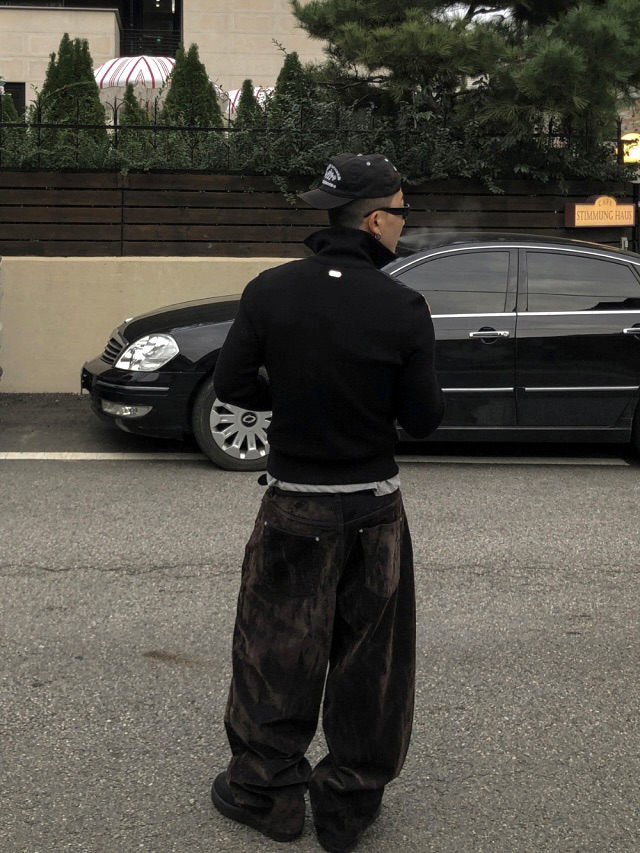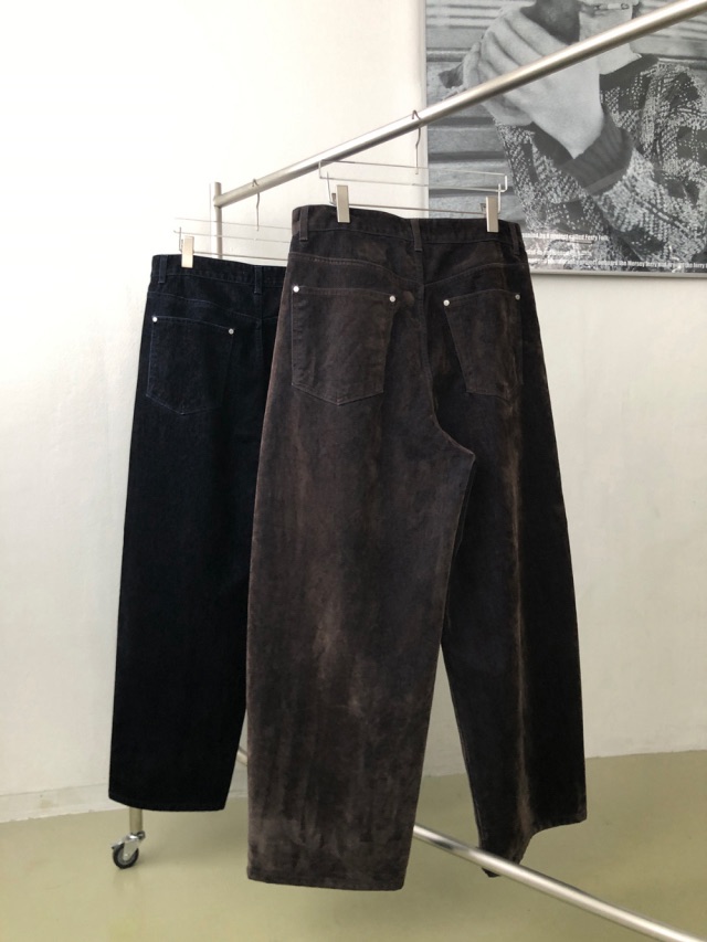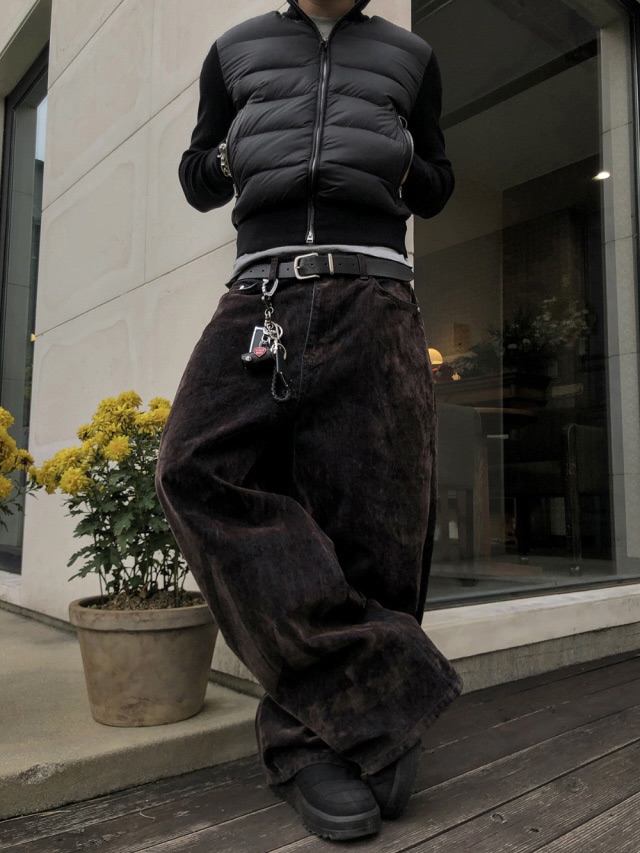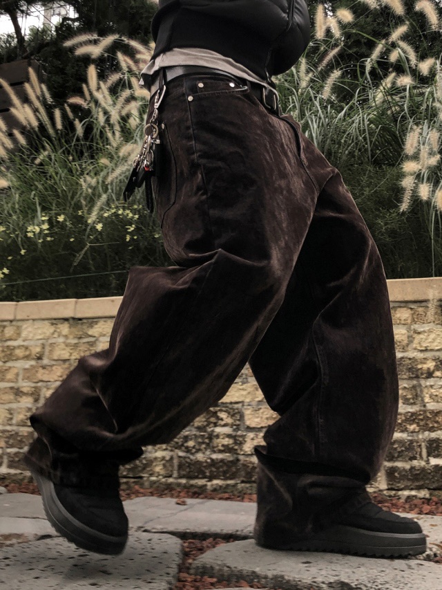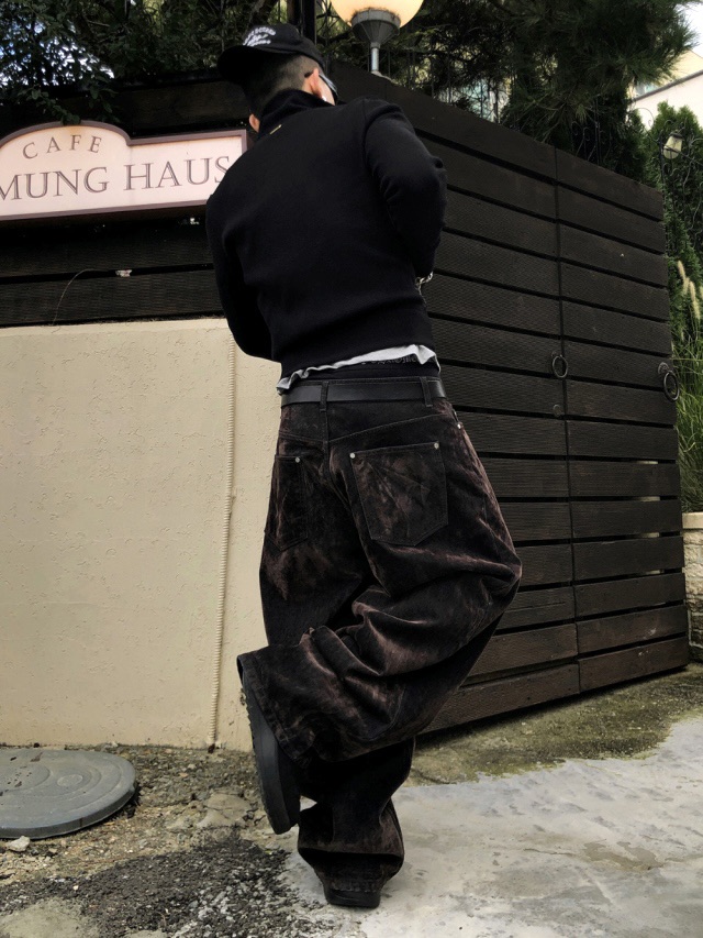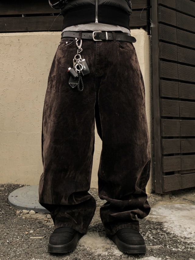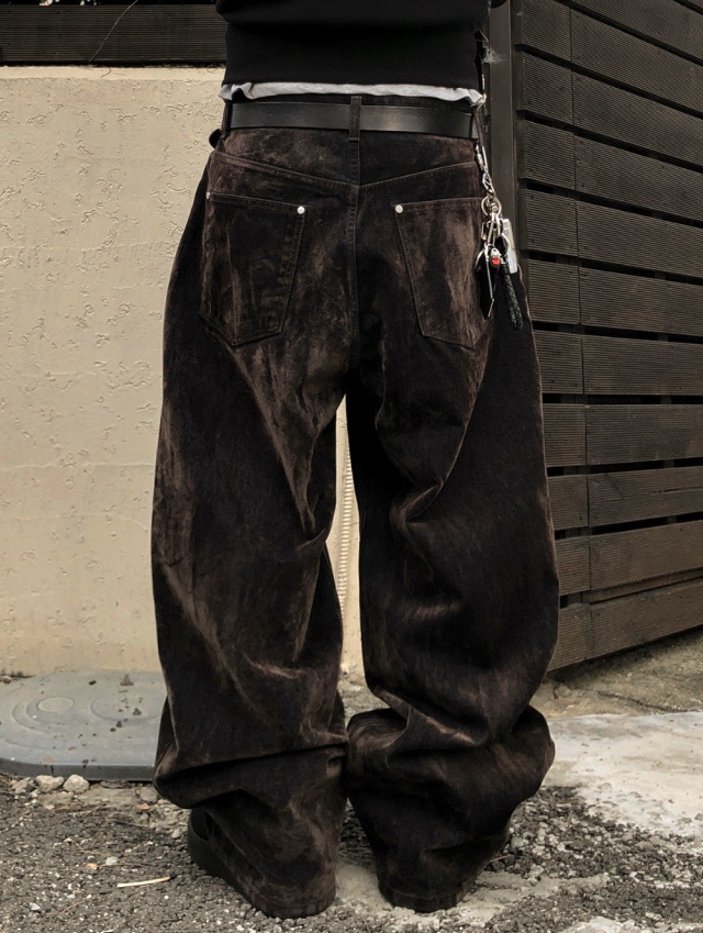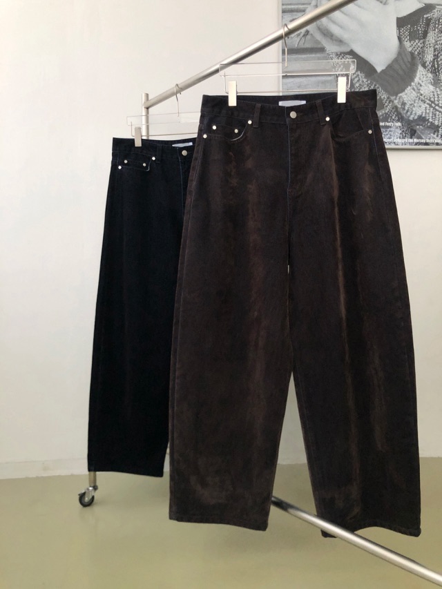 ESSU 絲絨感 油墨 做舊 褪色 水洗 寬版 長褲 (2color)