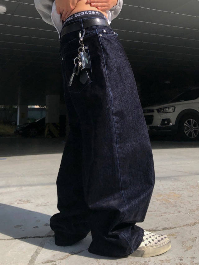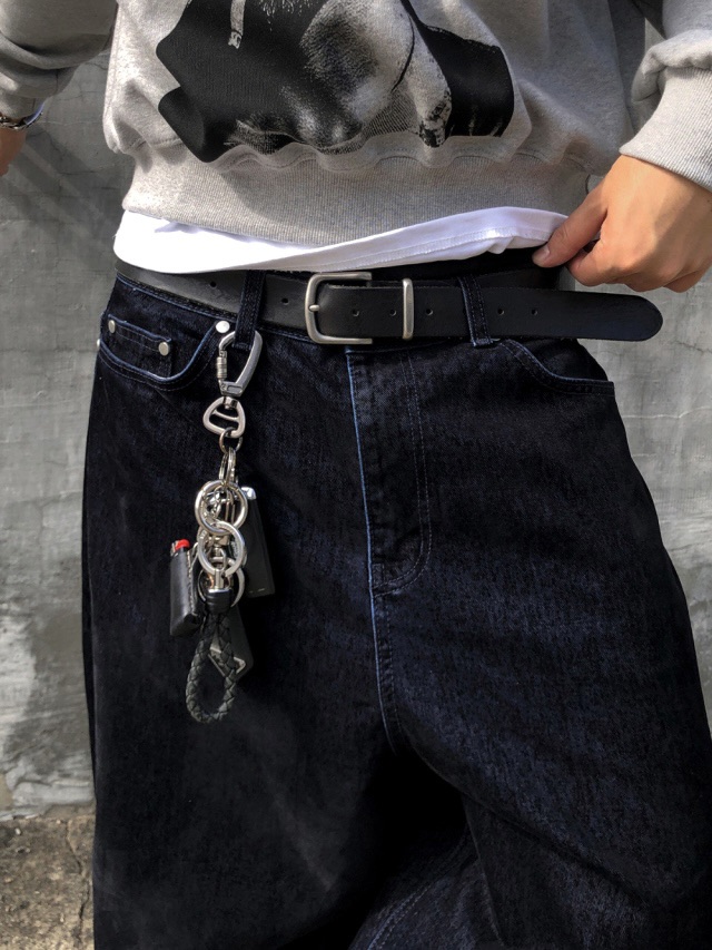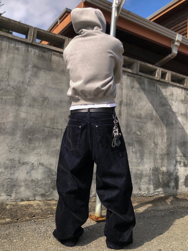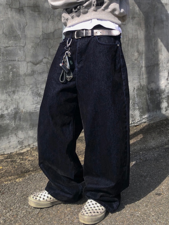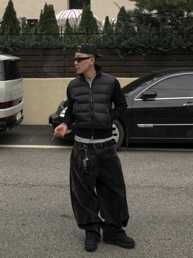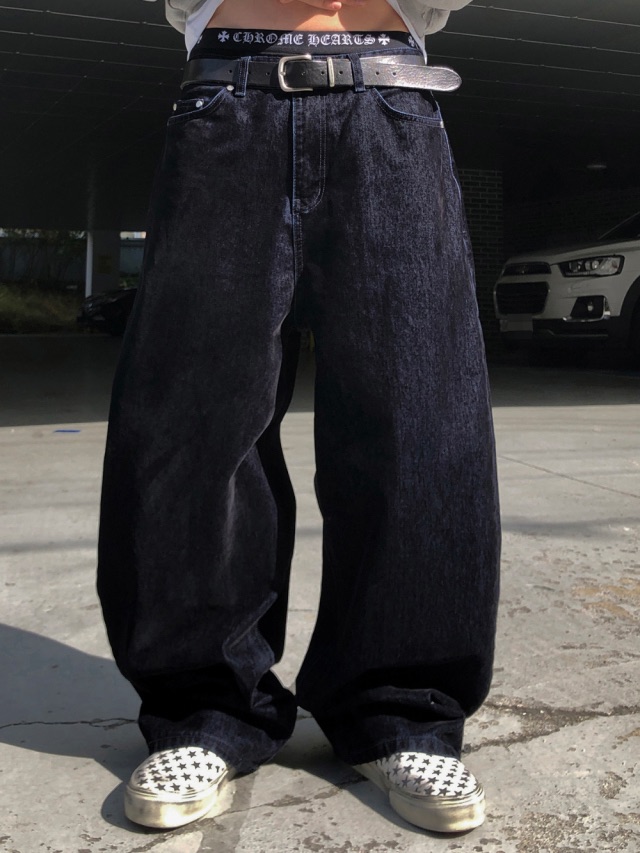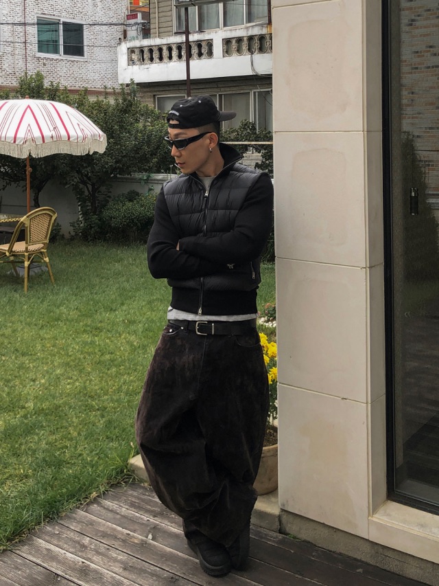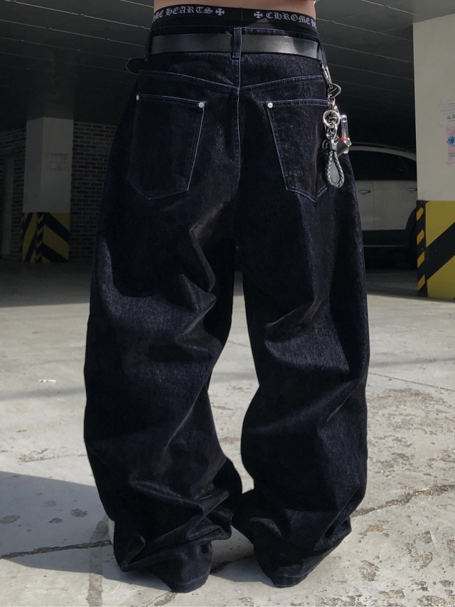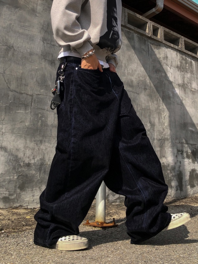 ESSU 絲絨感 油墨 做舊 褪色 水洗 寬版 長褲 (2color)