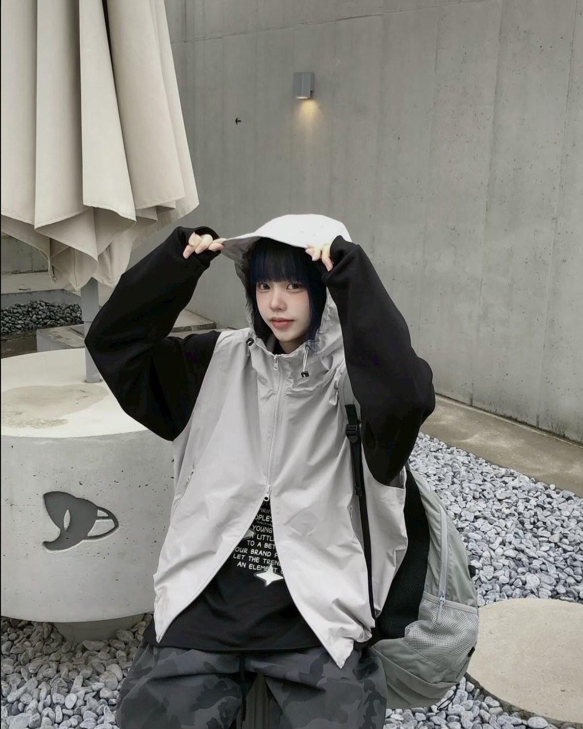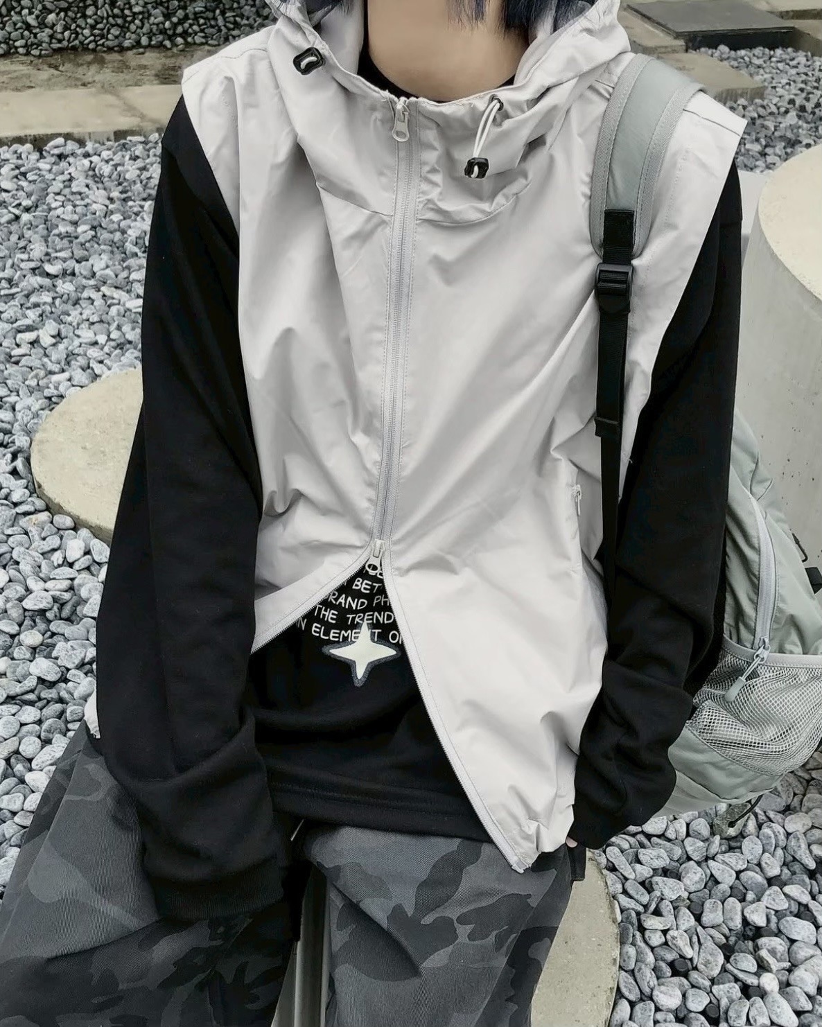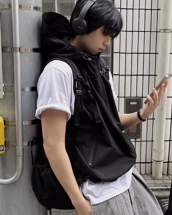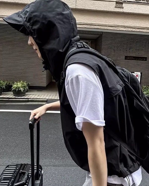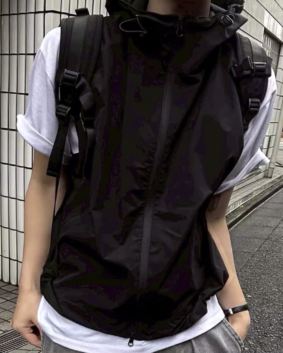 韓國 BOXY 機能感 防水 立體帽簷 短版 連帽 拉鍊背心 (2color)