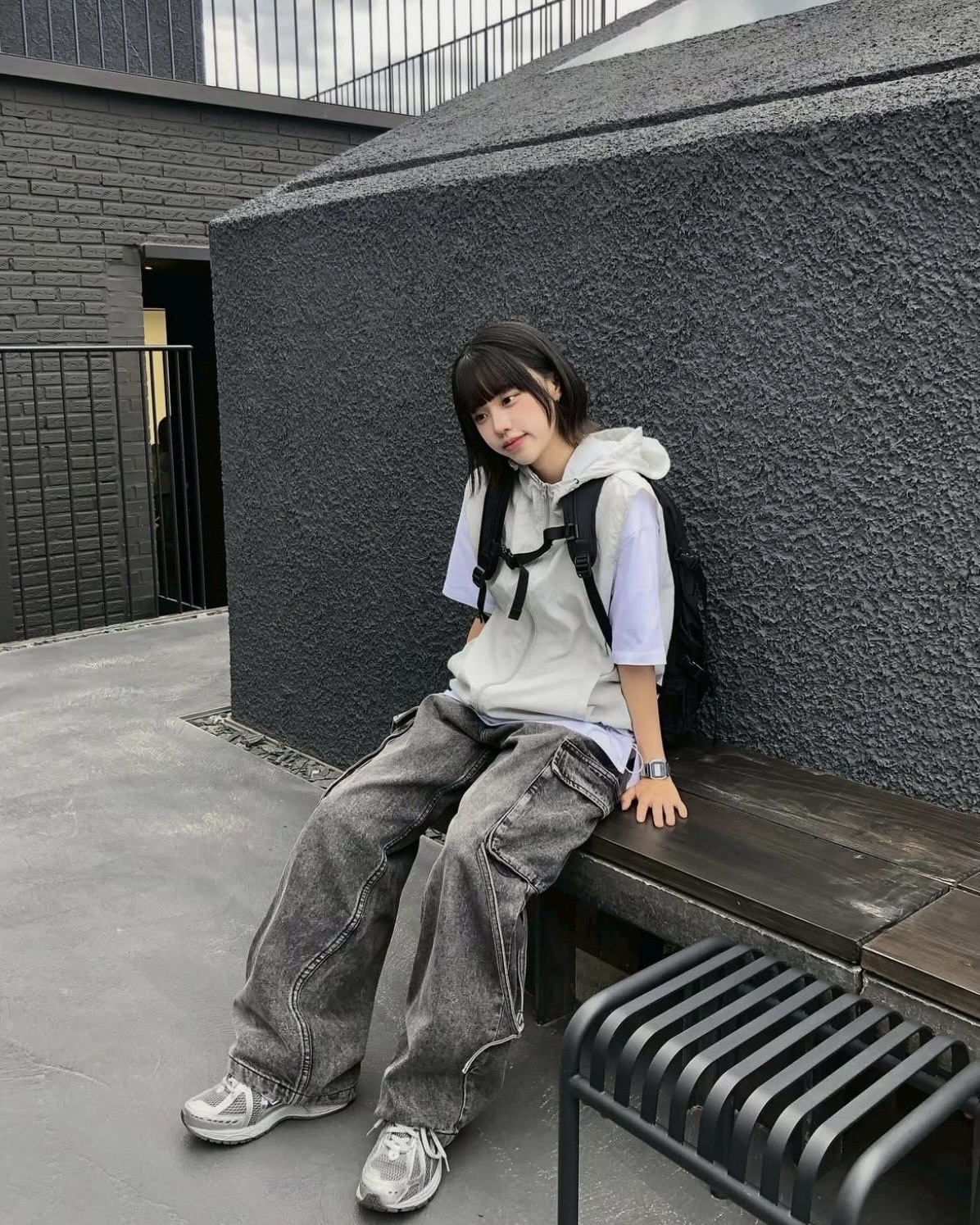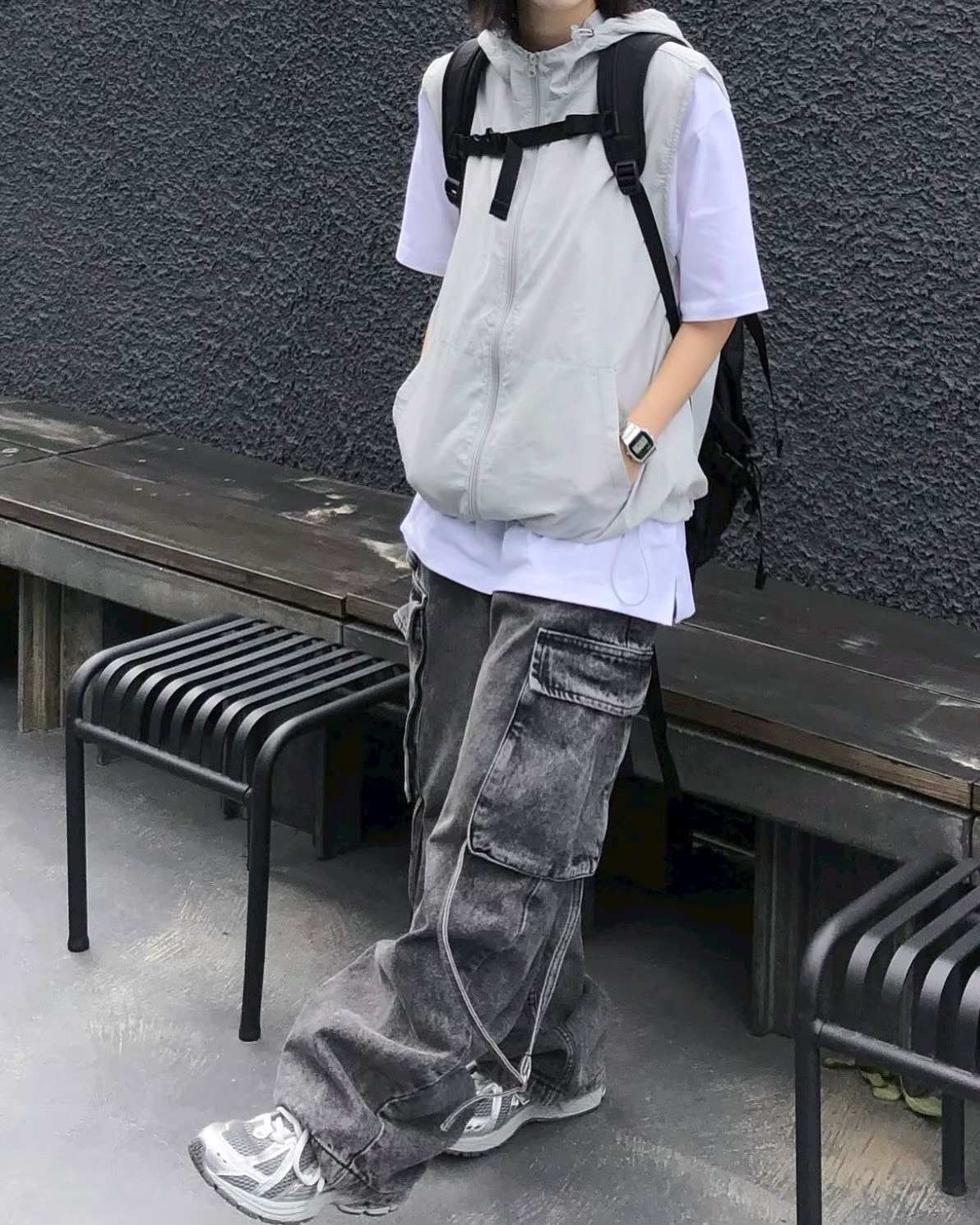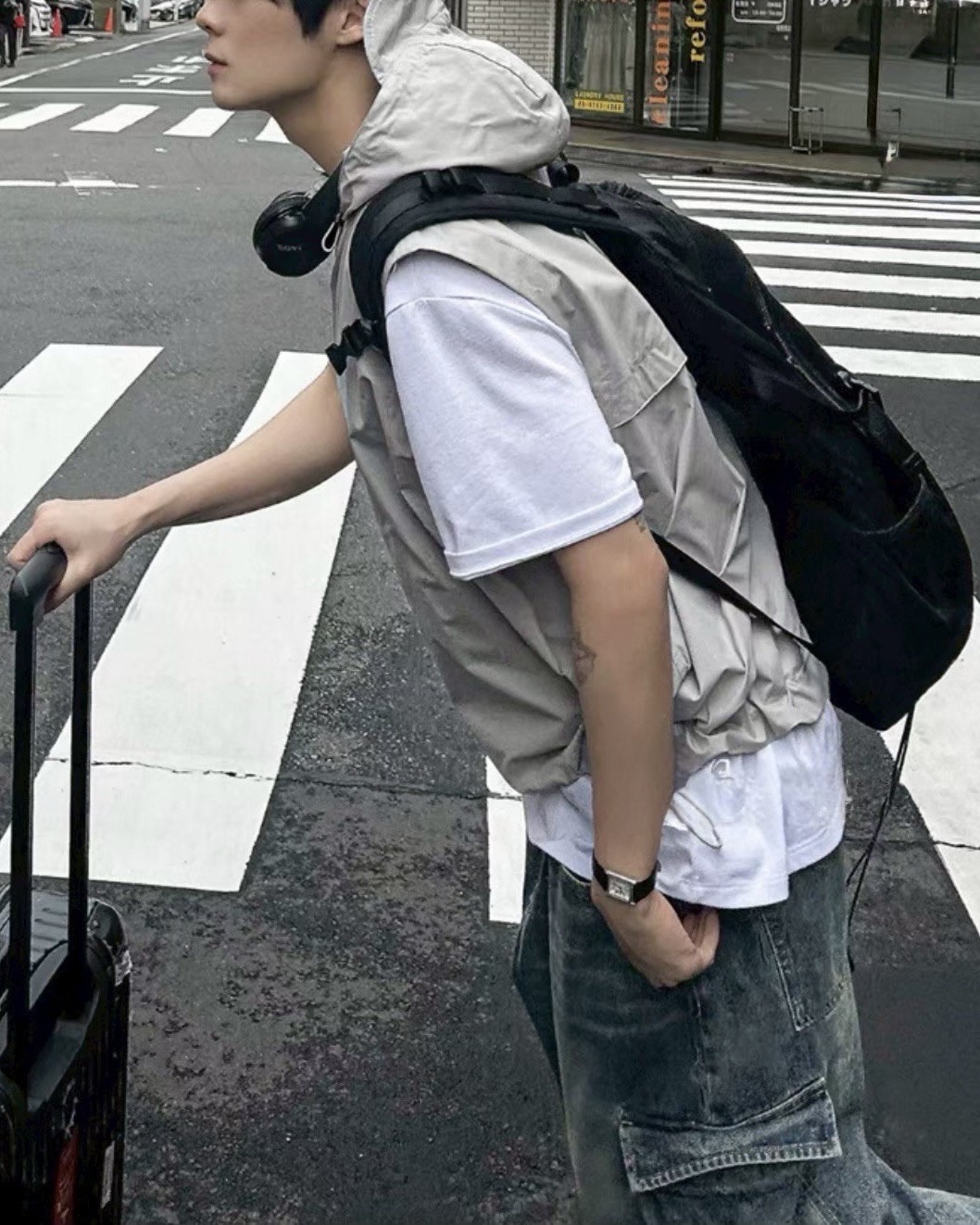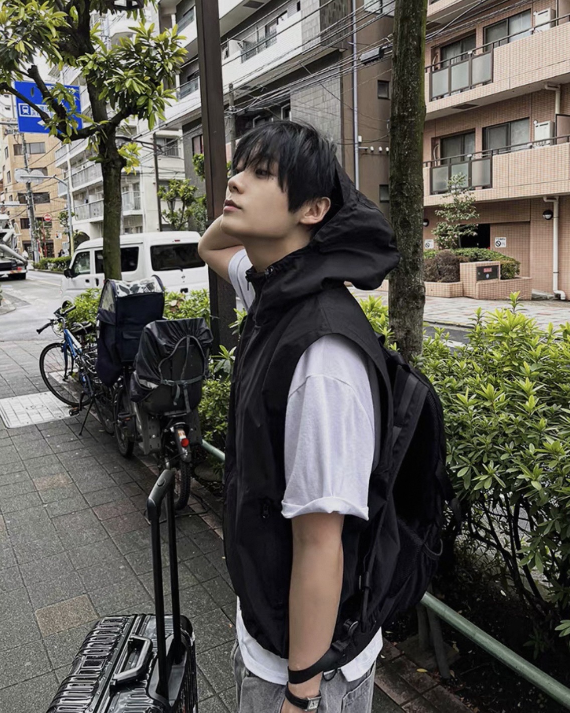 韓國 BOXY 機能感 防水 立體帽簷 短版 連帽 拉鍊背心 (2color)