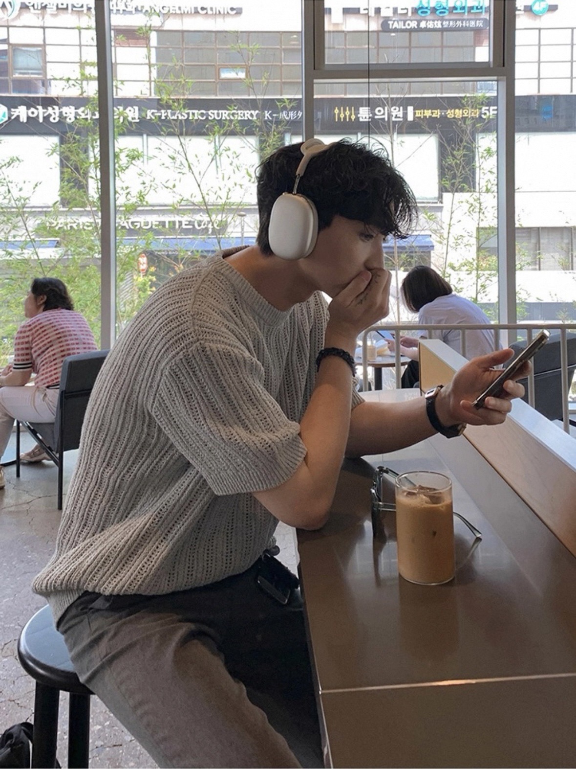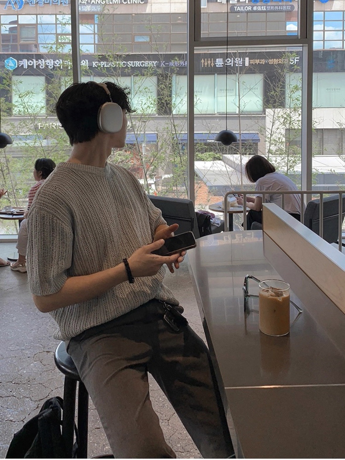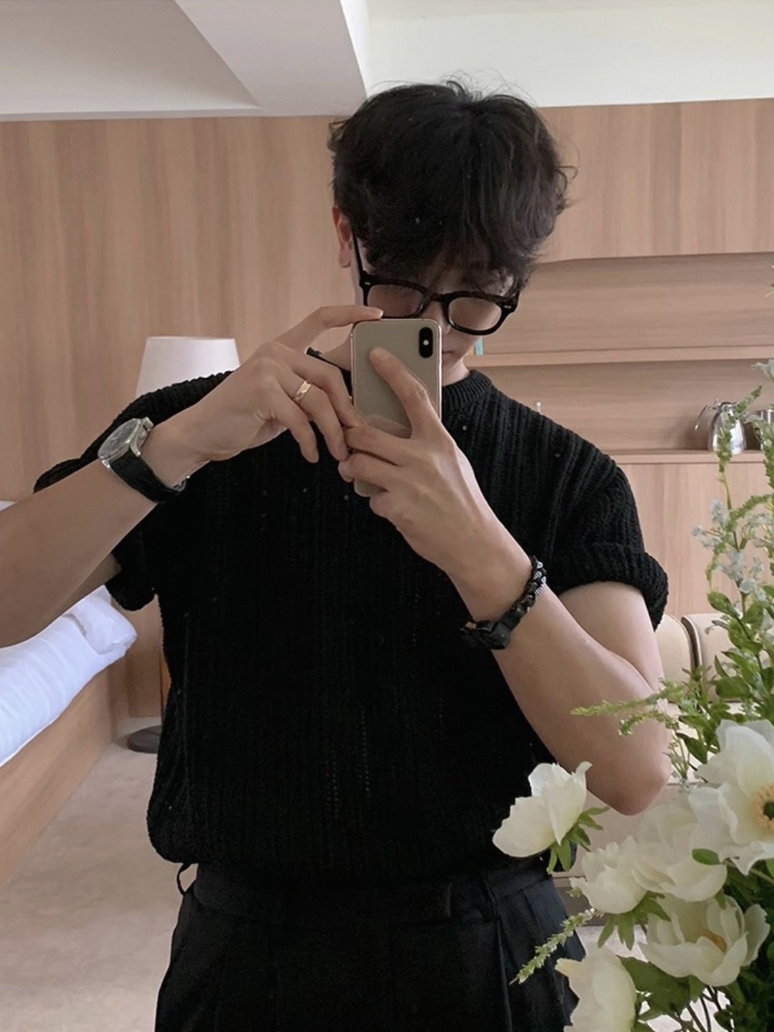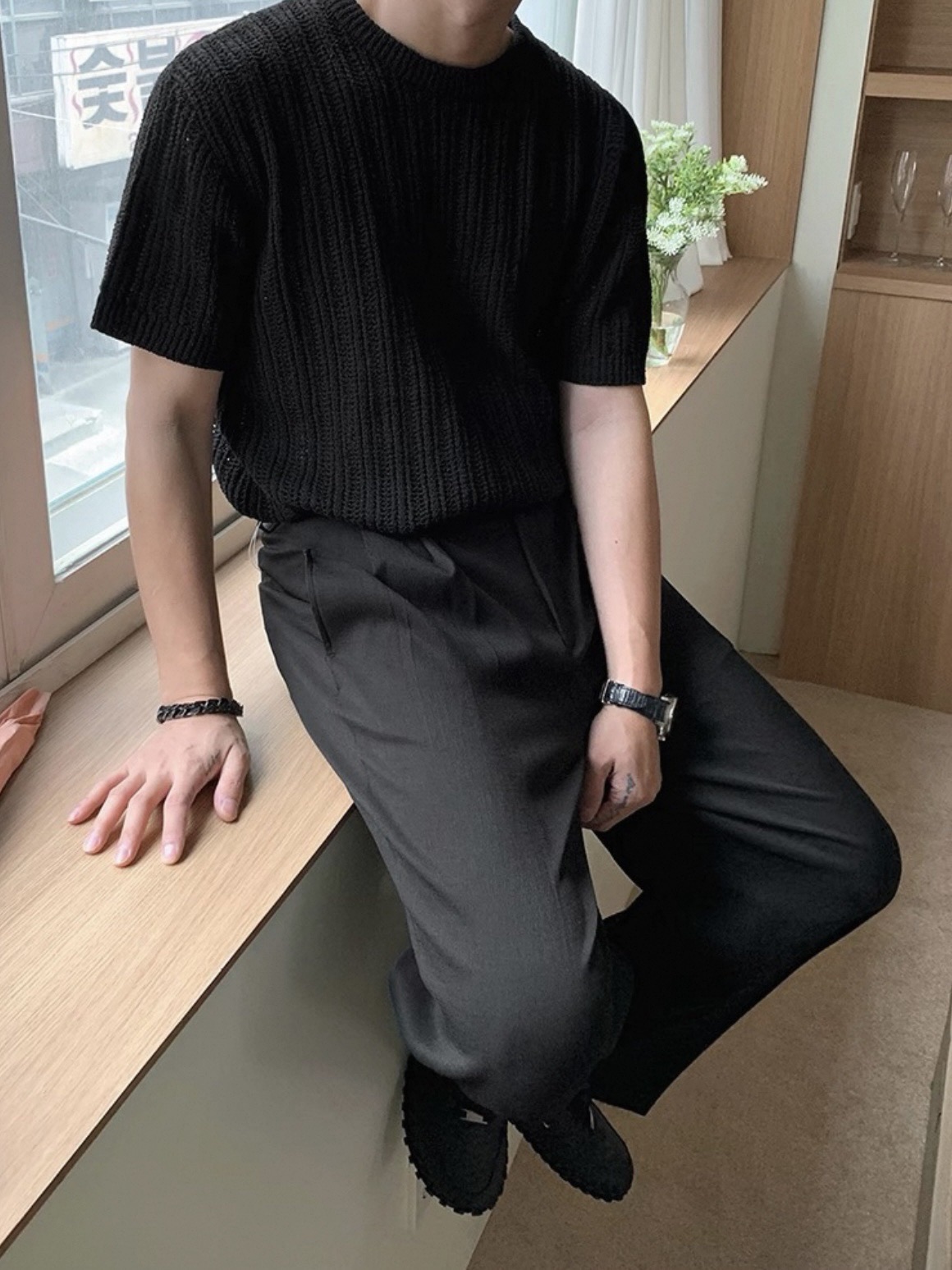 韓國 冰絲 鏤空 設計感 針織 短袖 上衣 (2color)