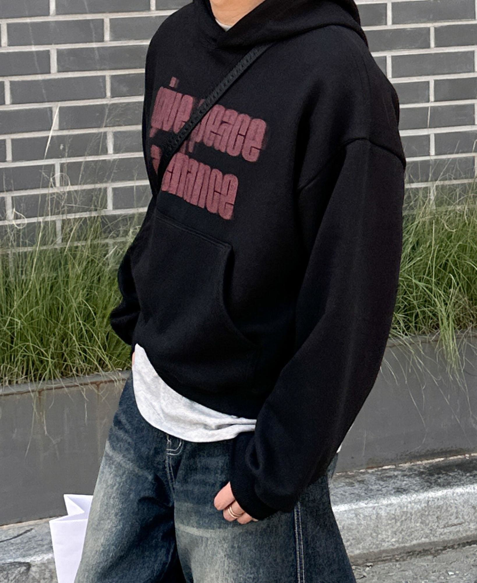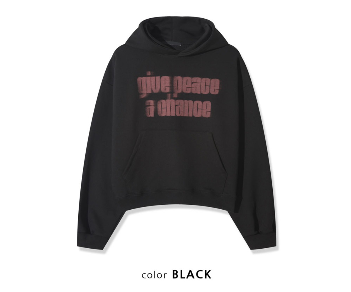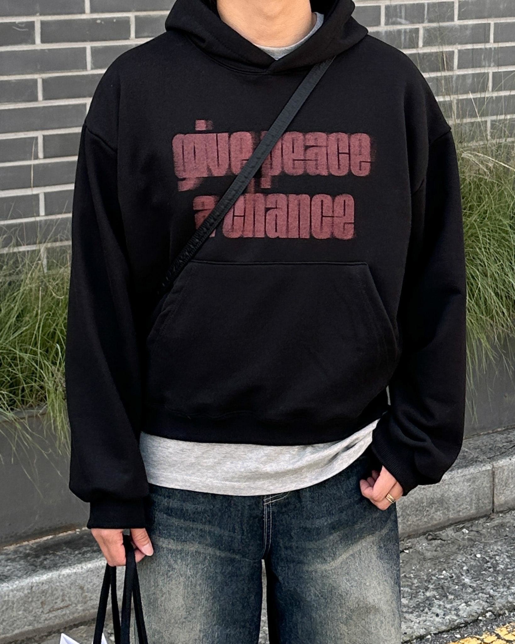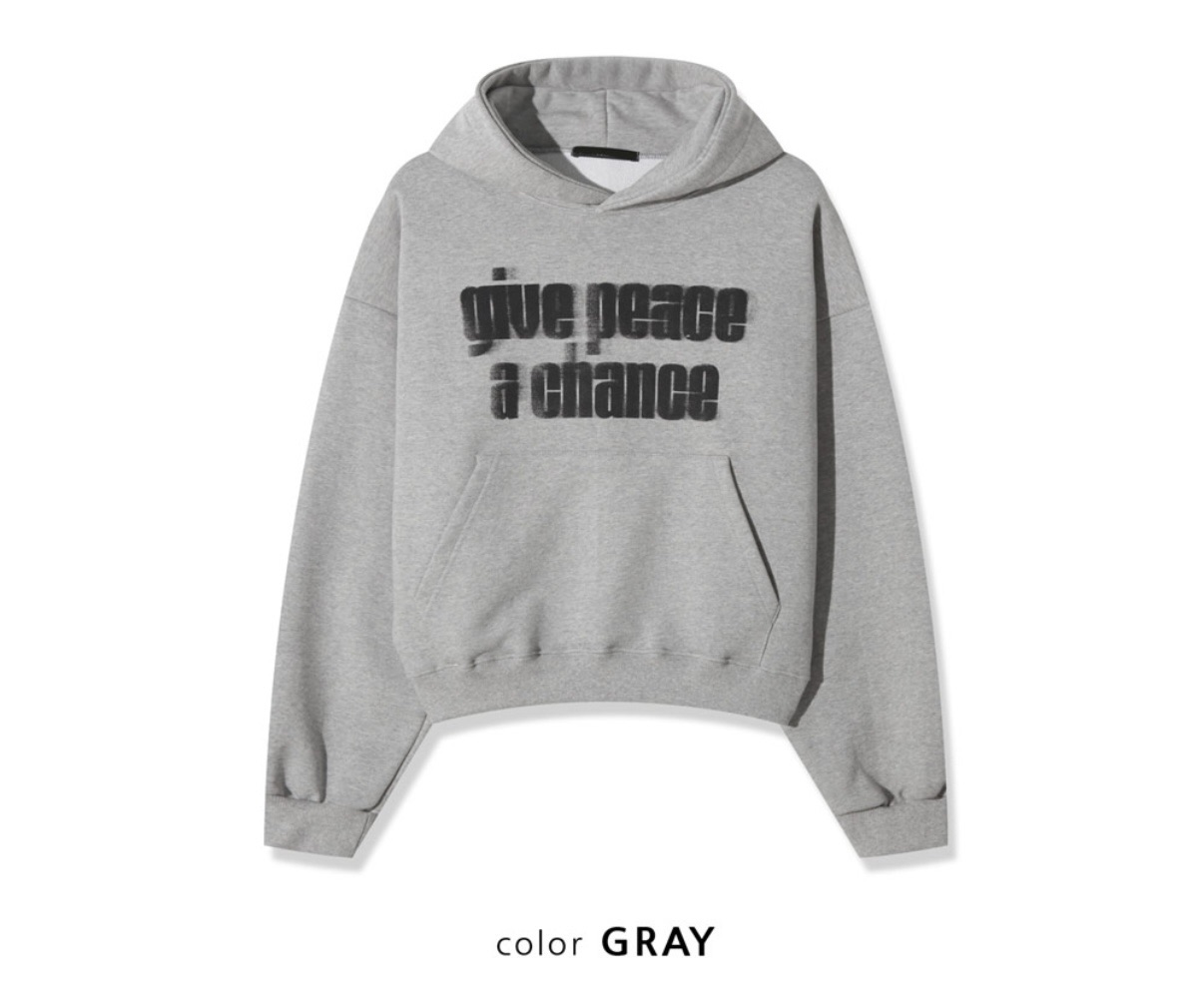 韓國 GIVE PEACE A CHANCE 幻影 文字 短版 帽T (2color)