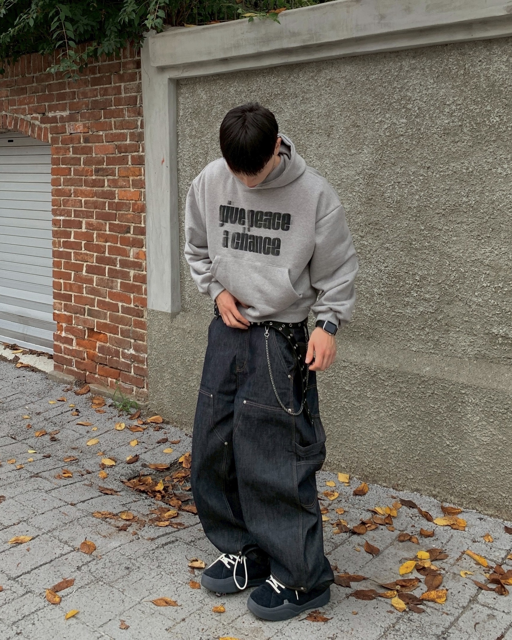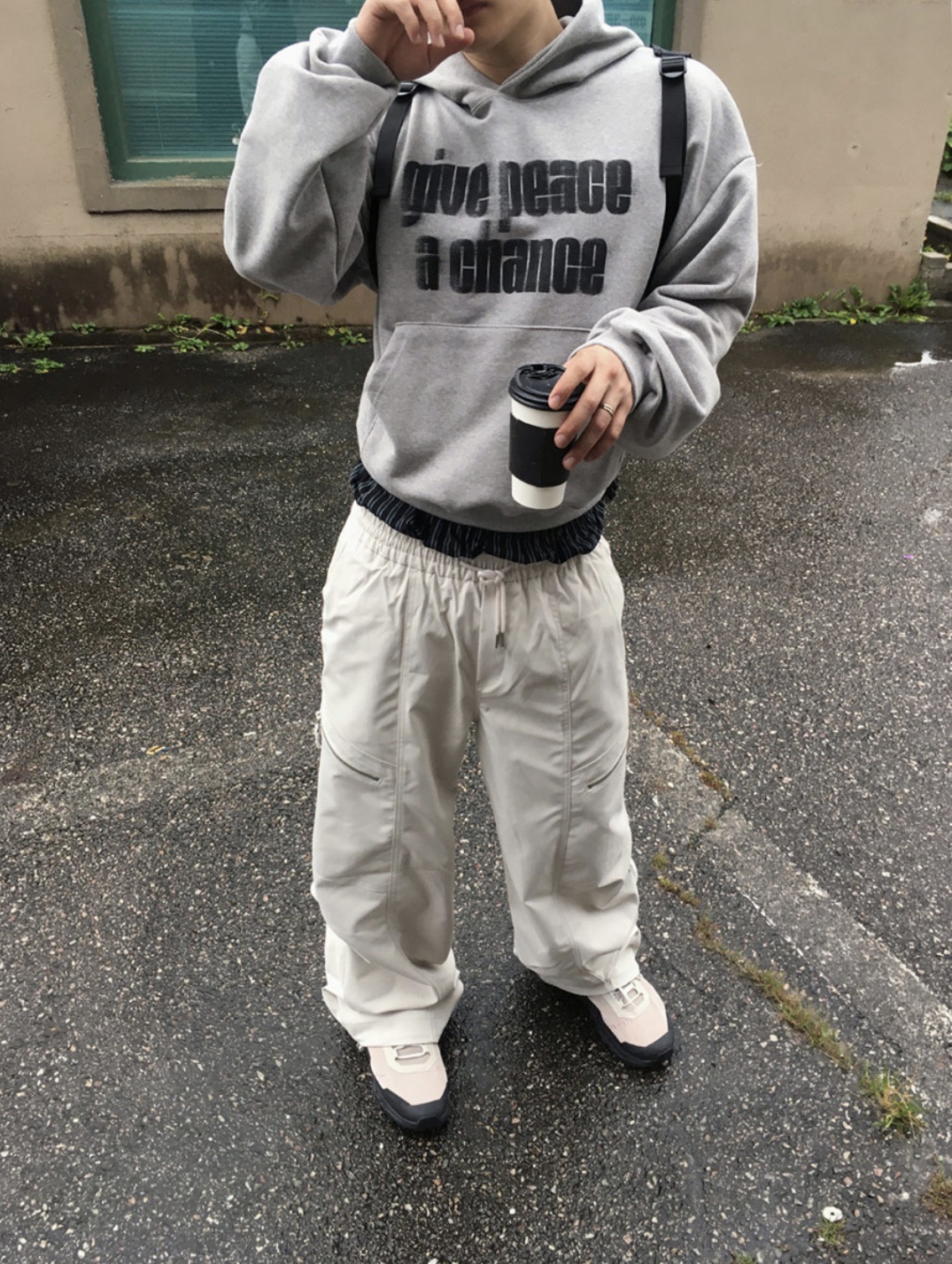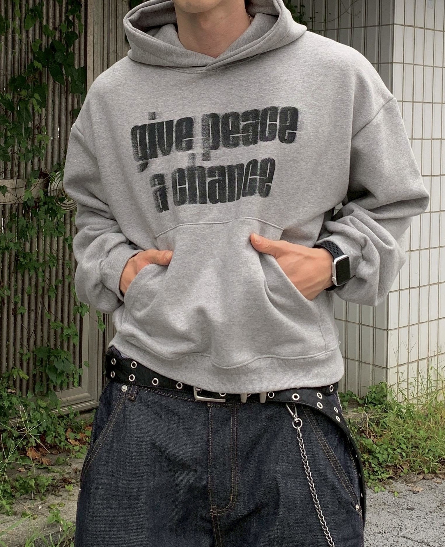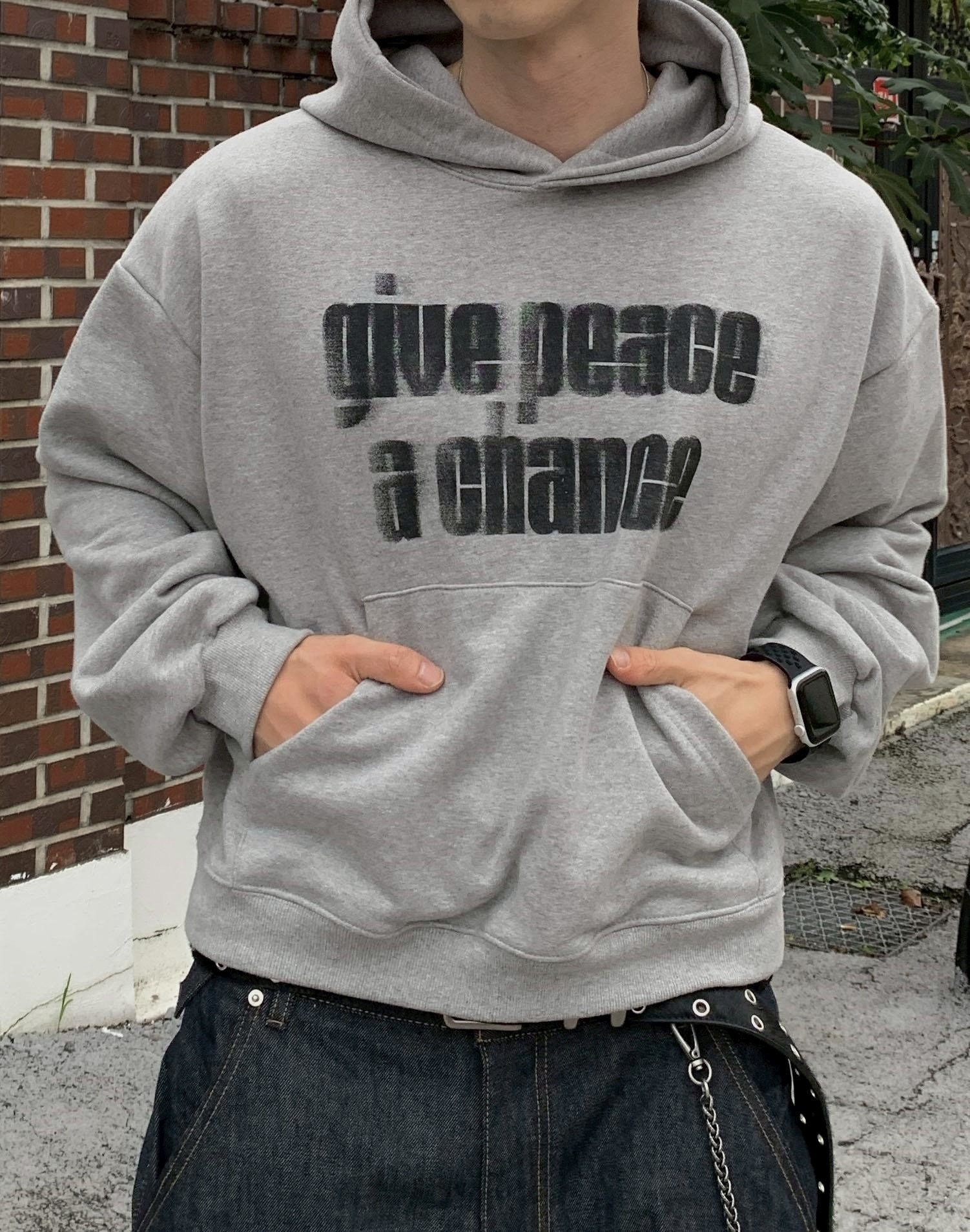韓國 GIVE PEACE A CHANCE 幻影 文字 短版 帽T (2color)
