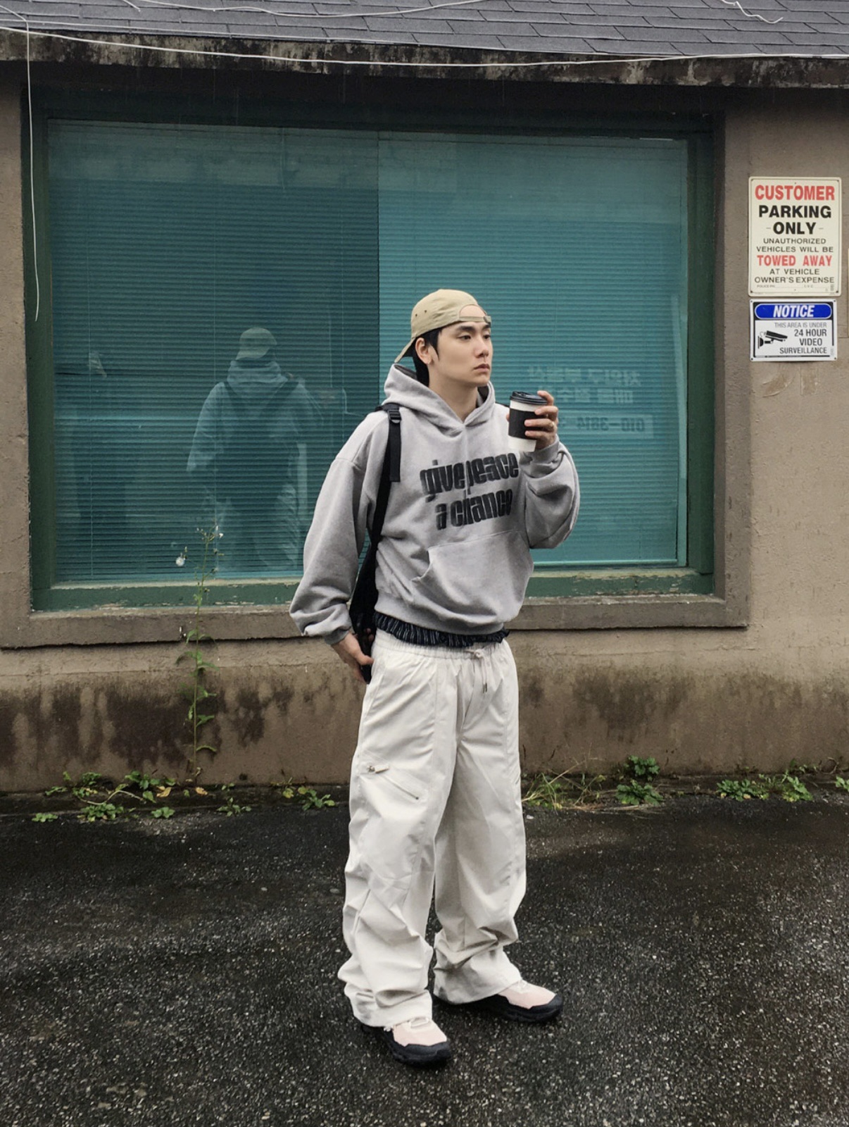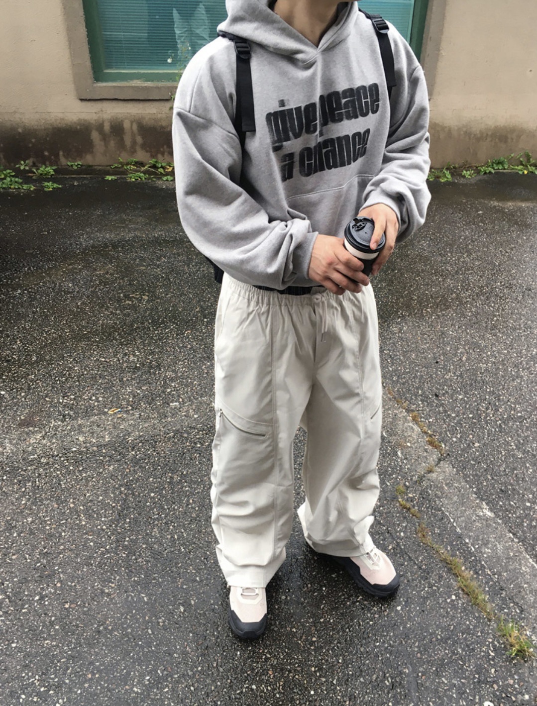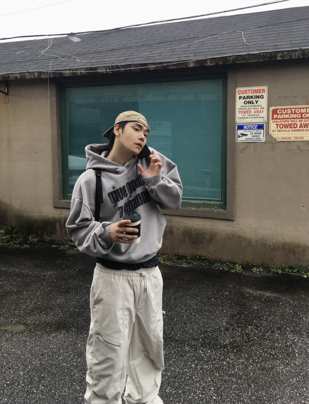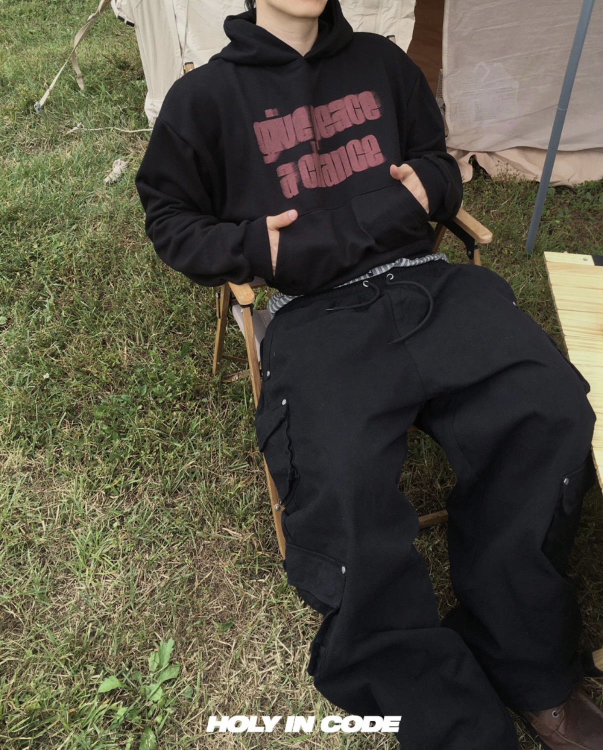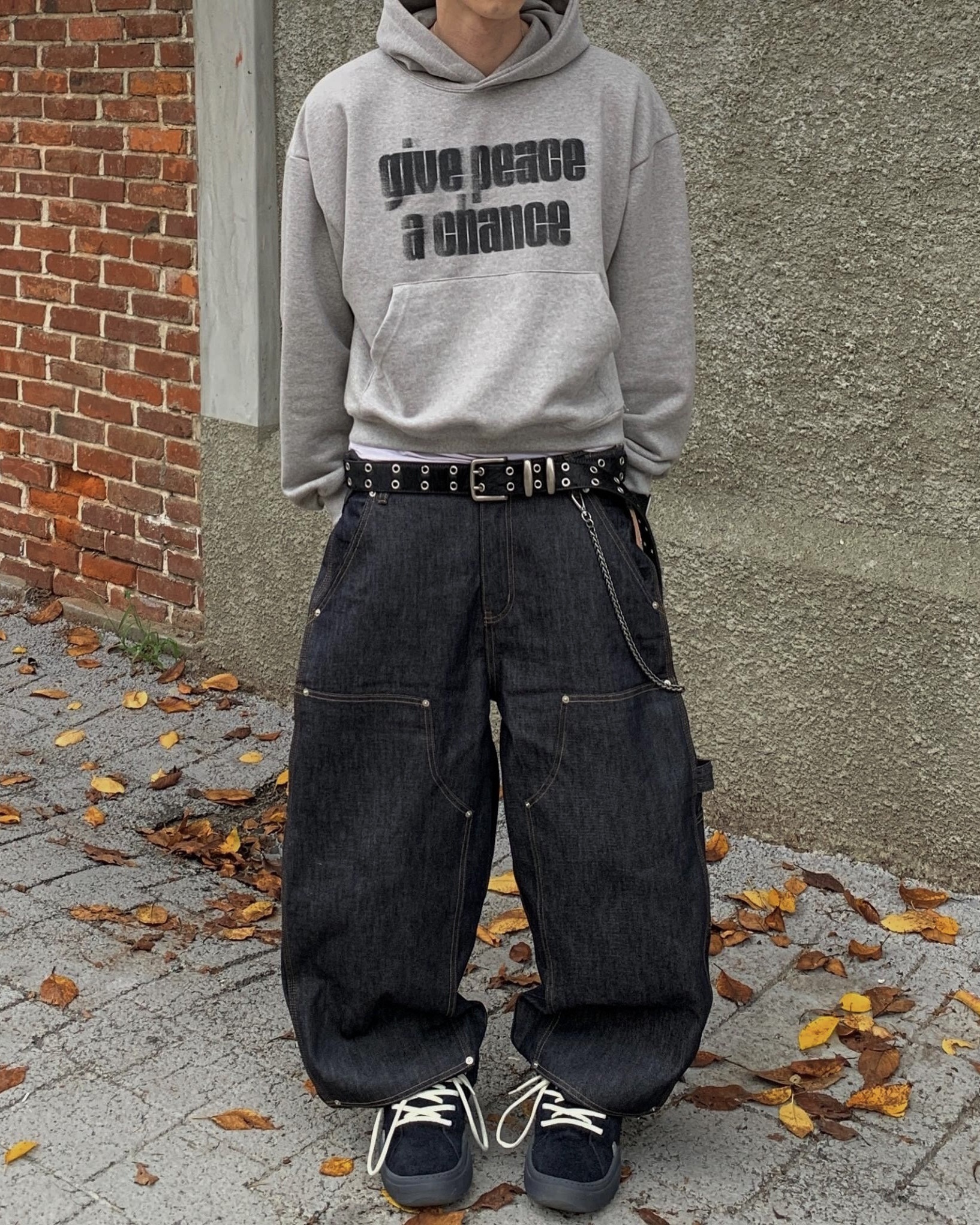 韓國 GIVE PEACE A CHANCE 幻影 文字 短版 帽T (2color)