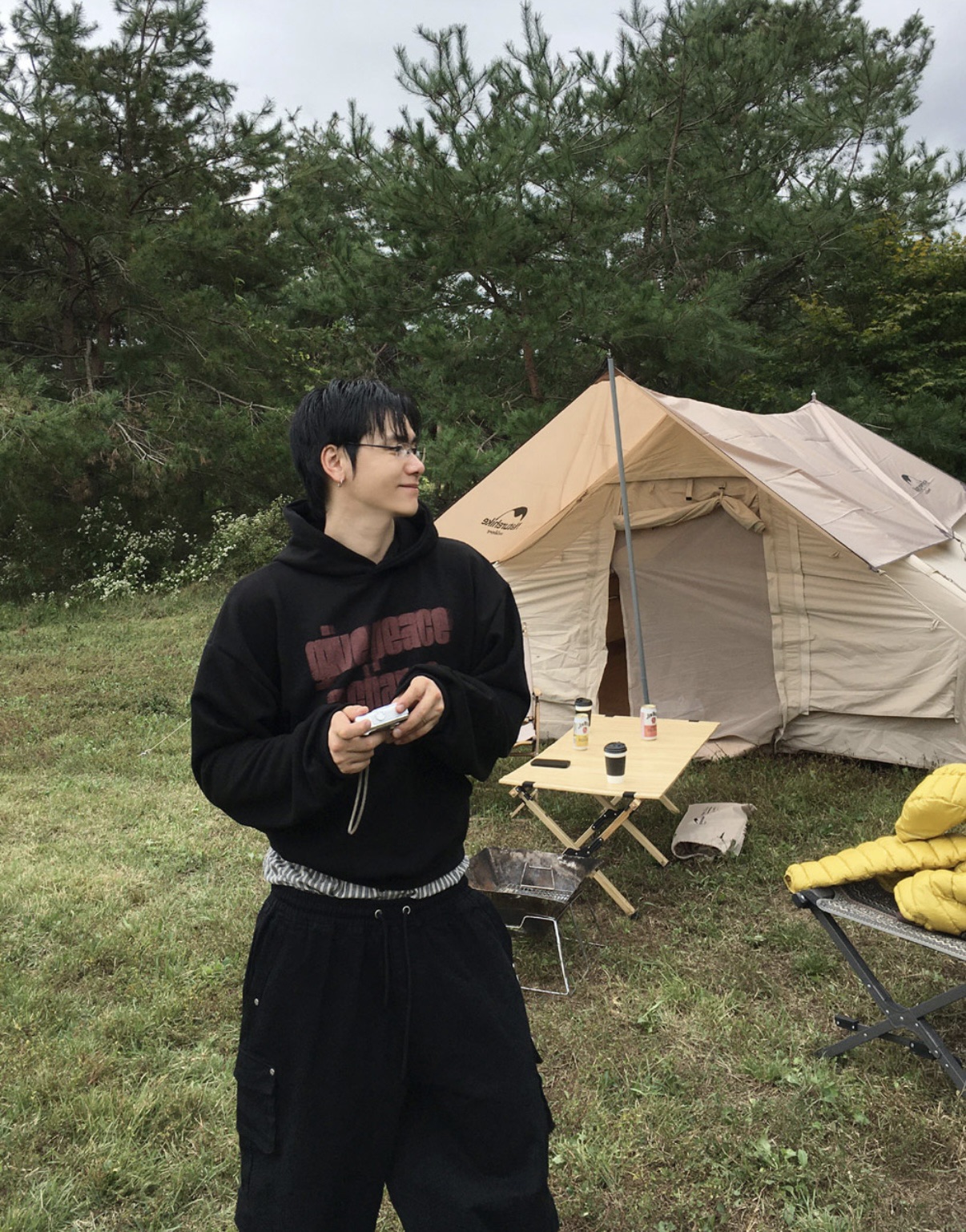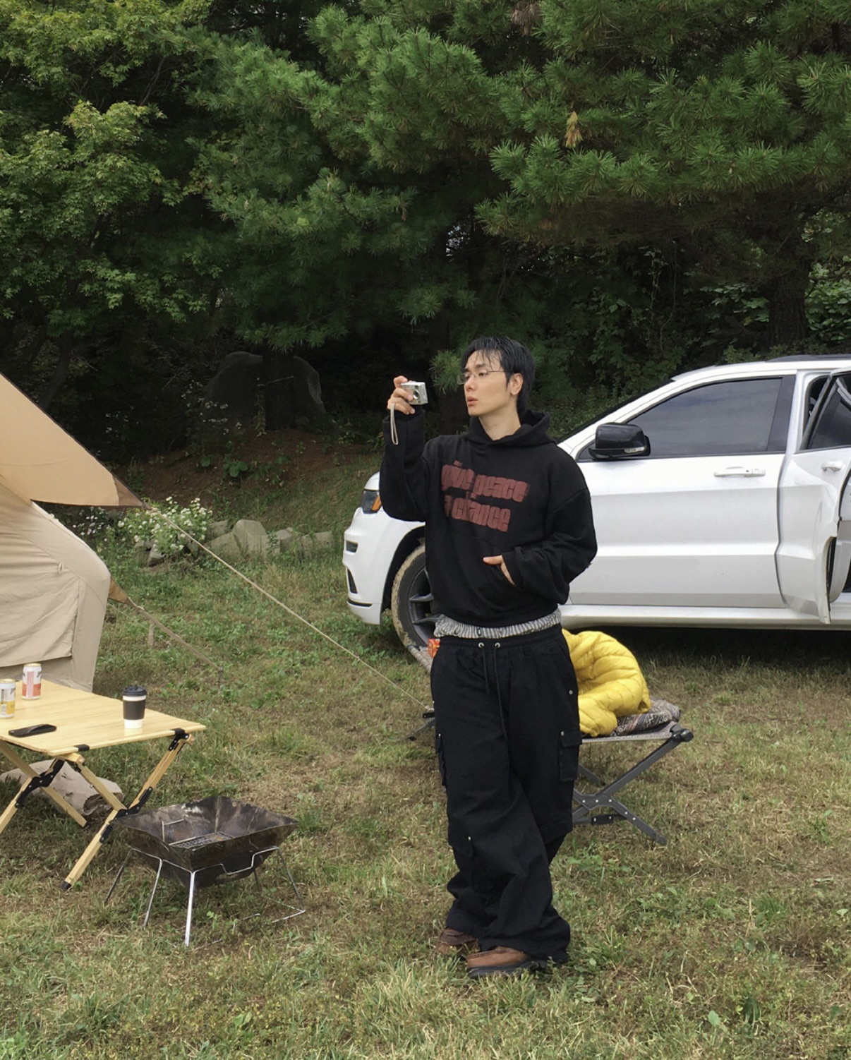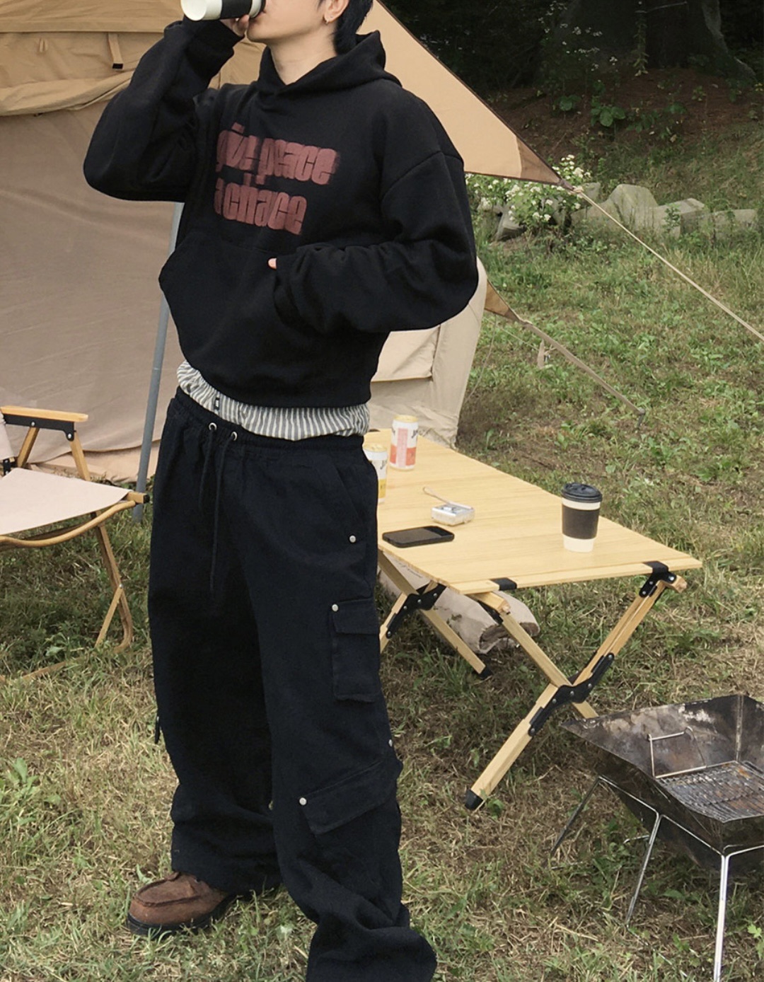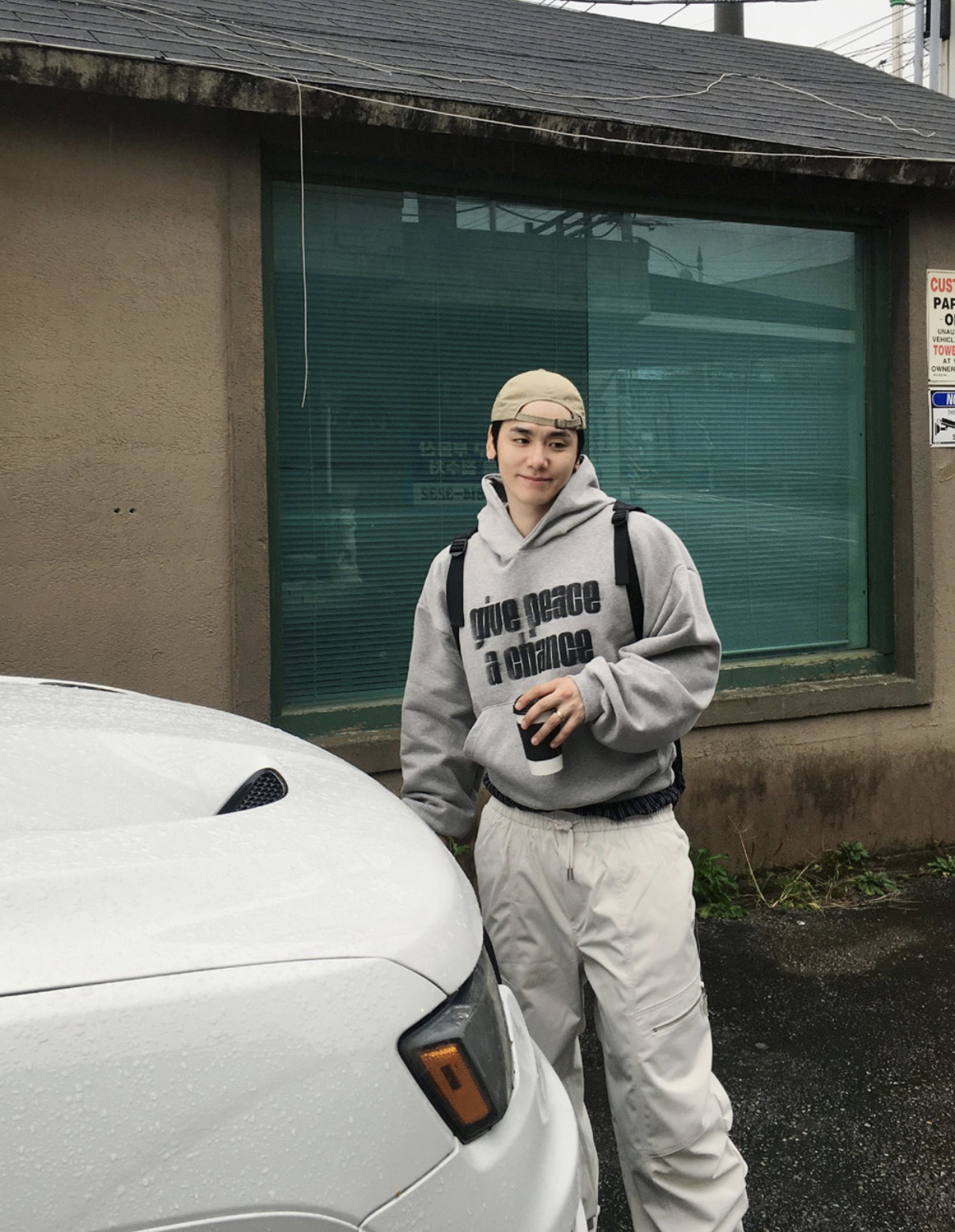 韓國 GIVE PEACE A CHANCE 幻影 文字 短版 帽T (2color)