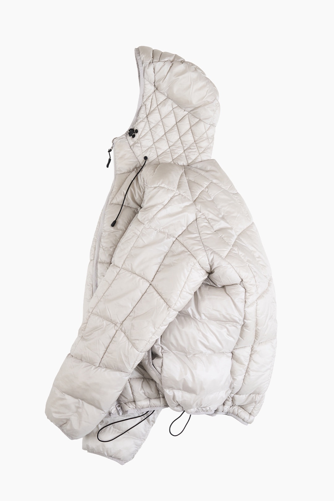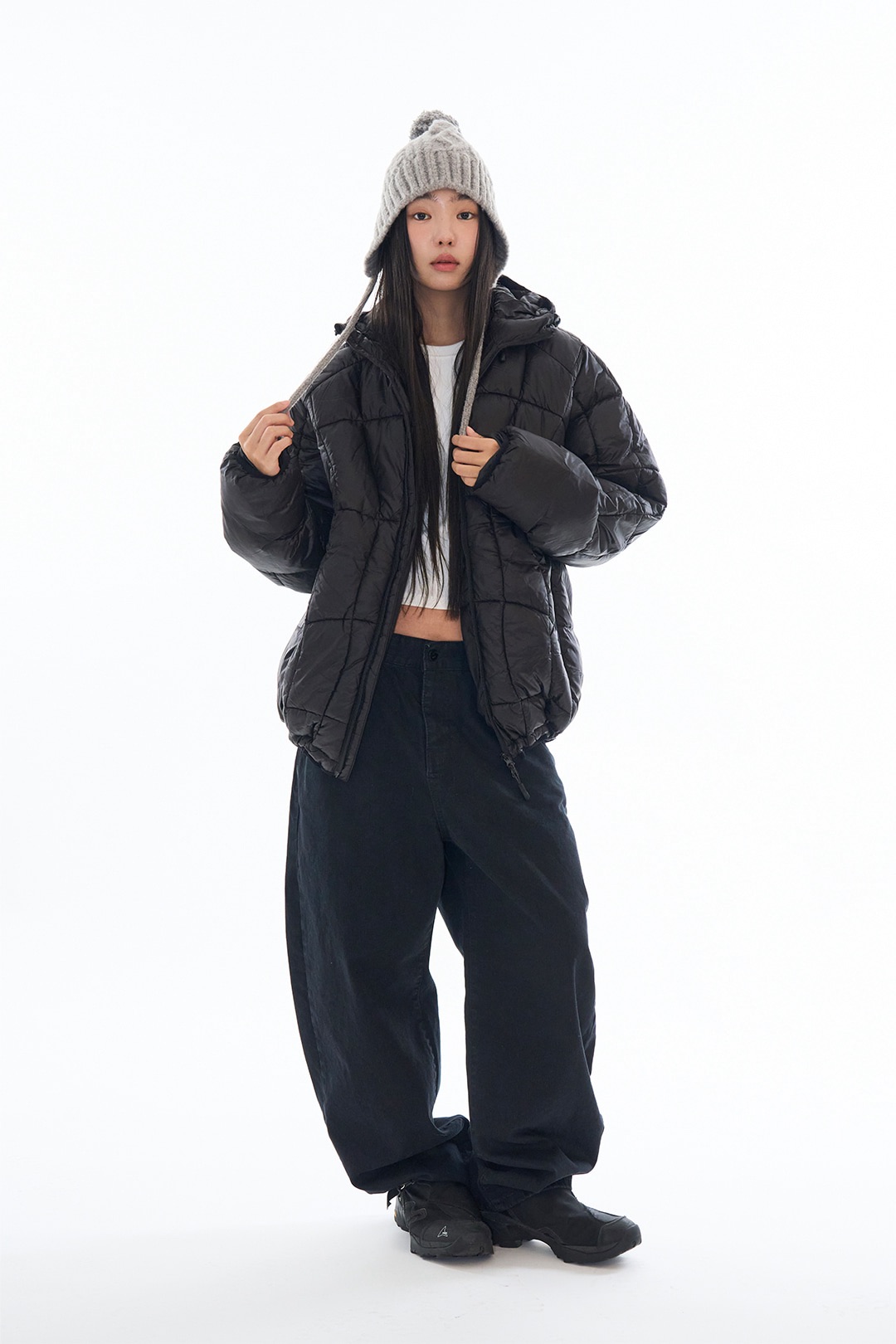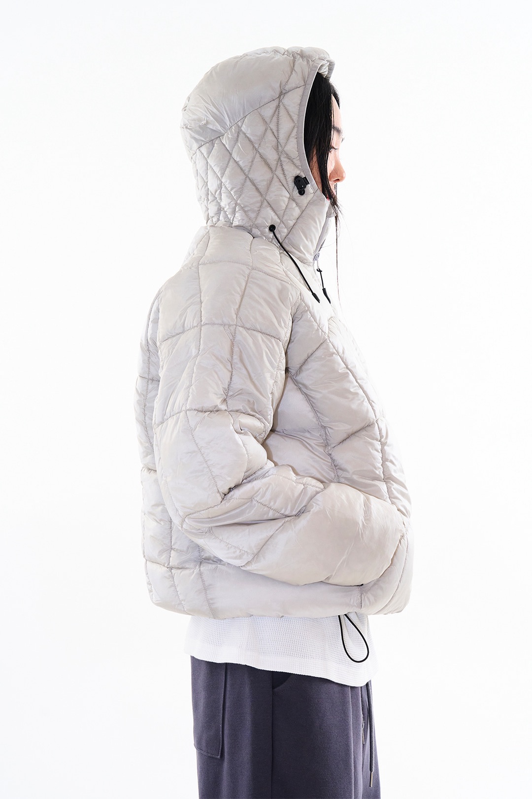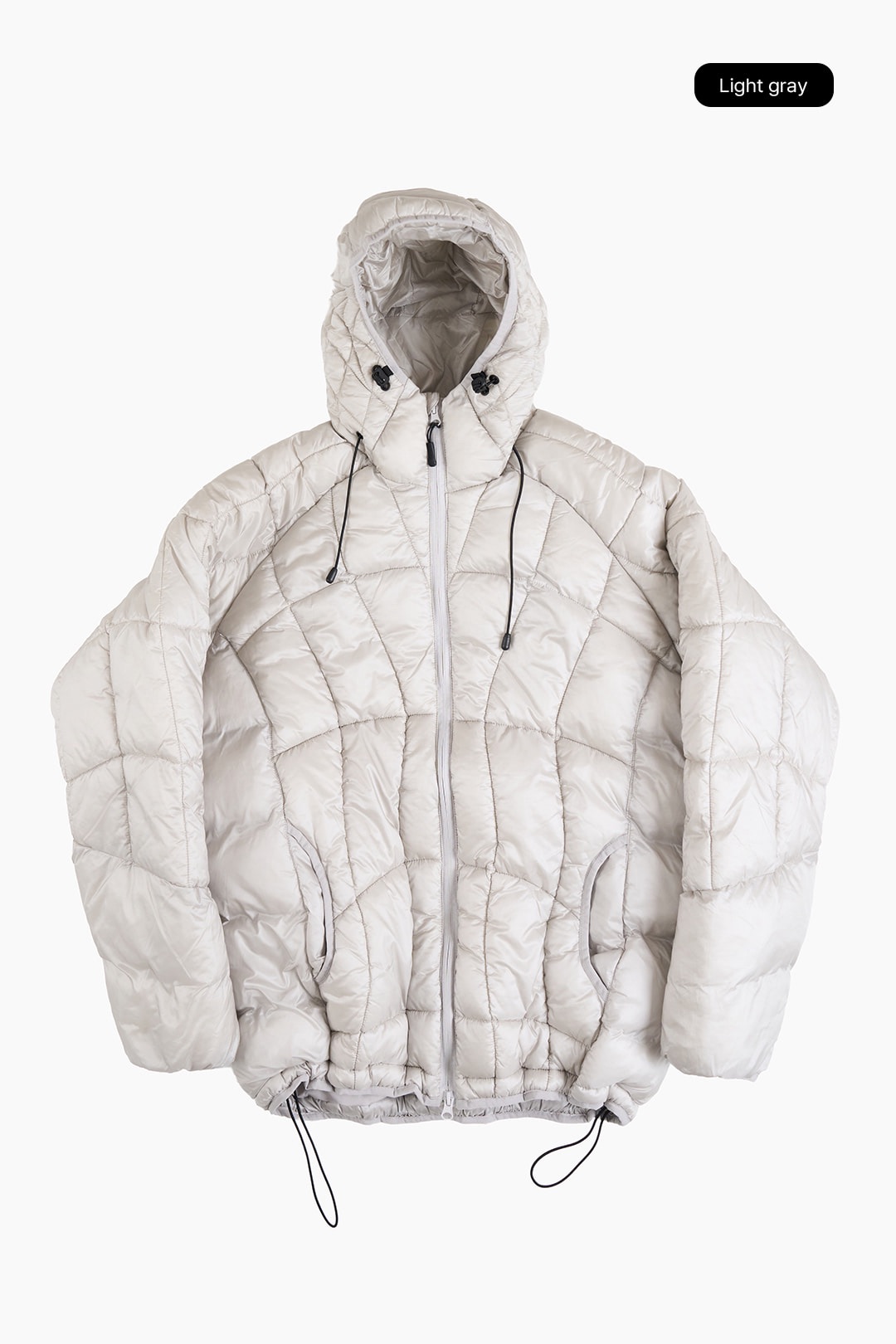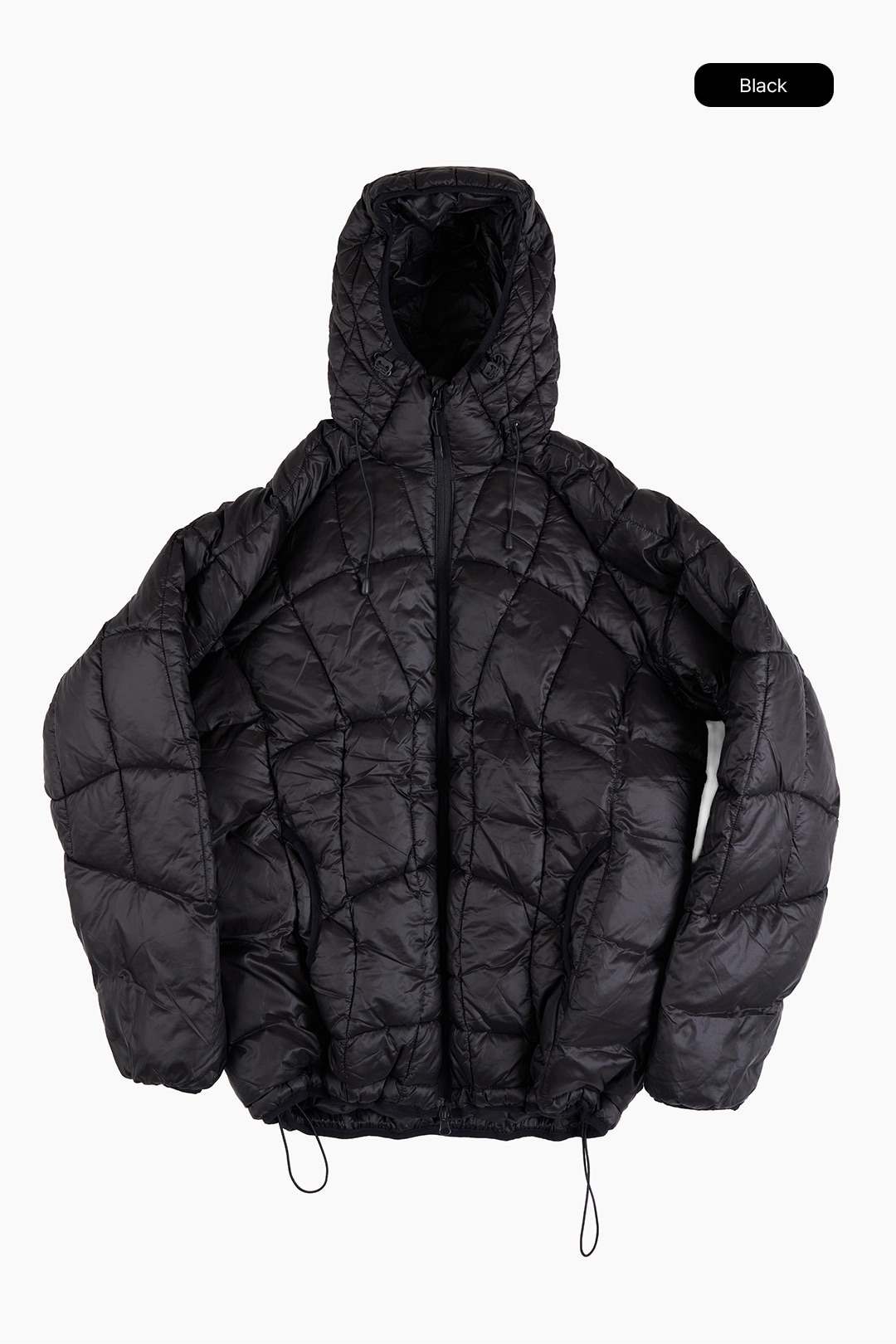 Rauco house 不規則 拼接 曲線 造型感 連帽 拉鍊 羽絨外套 (2color)