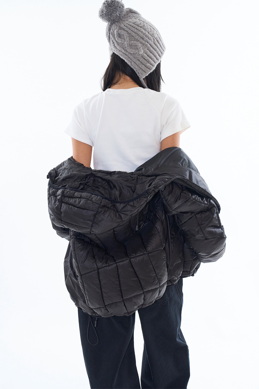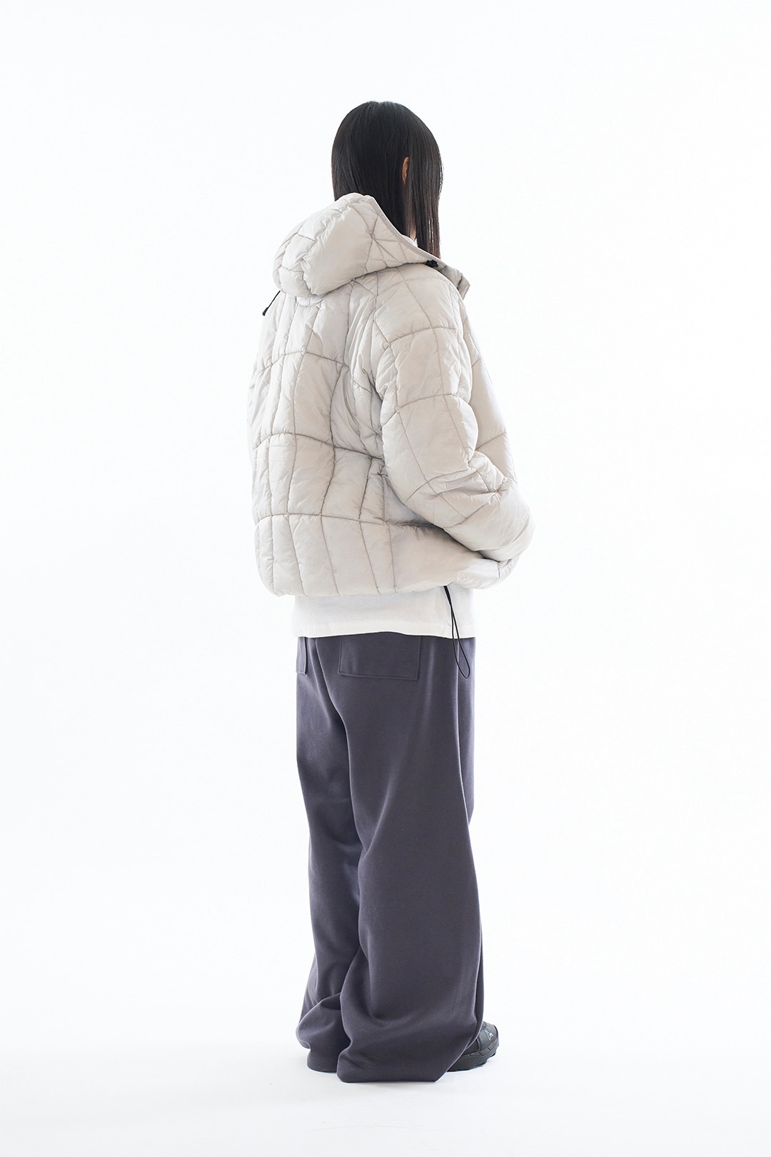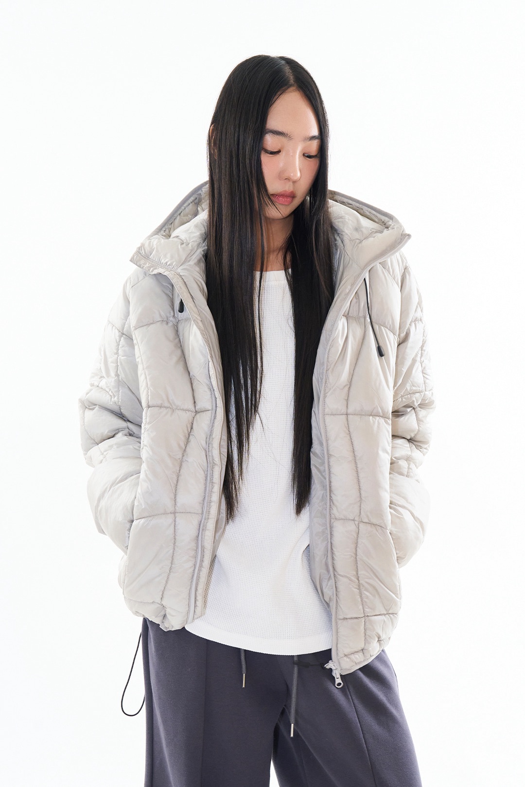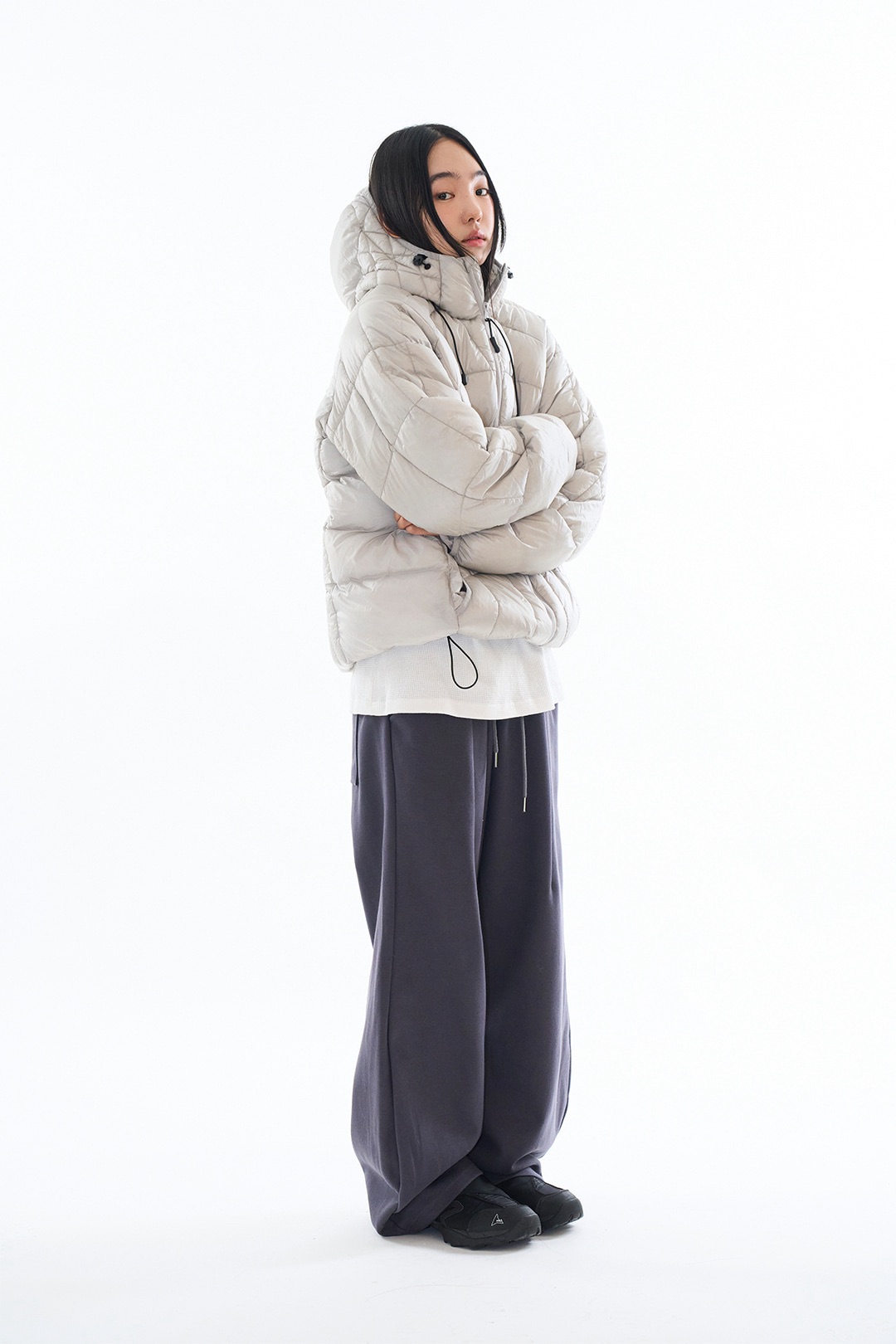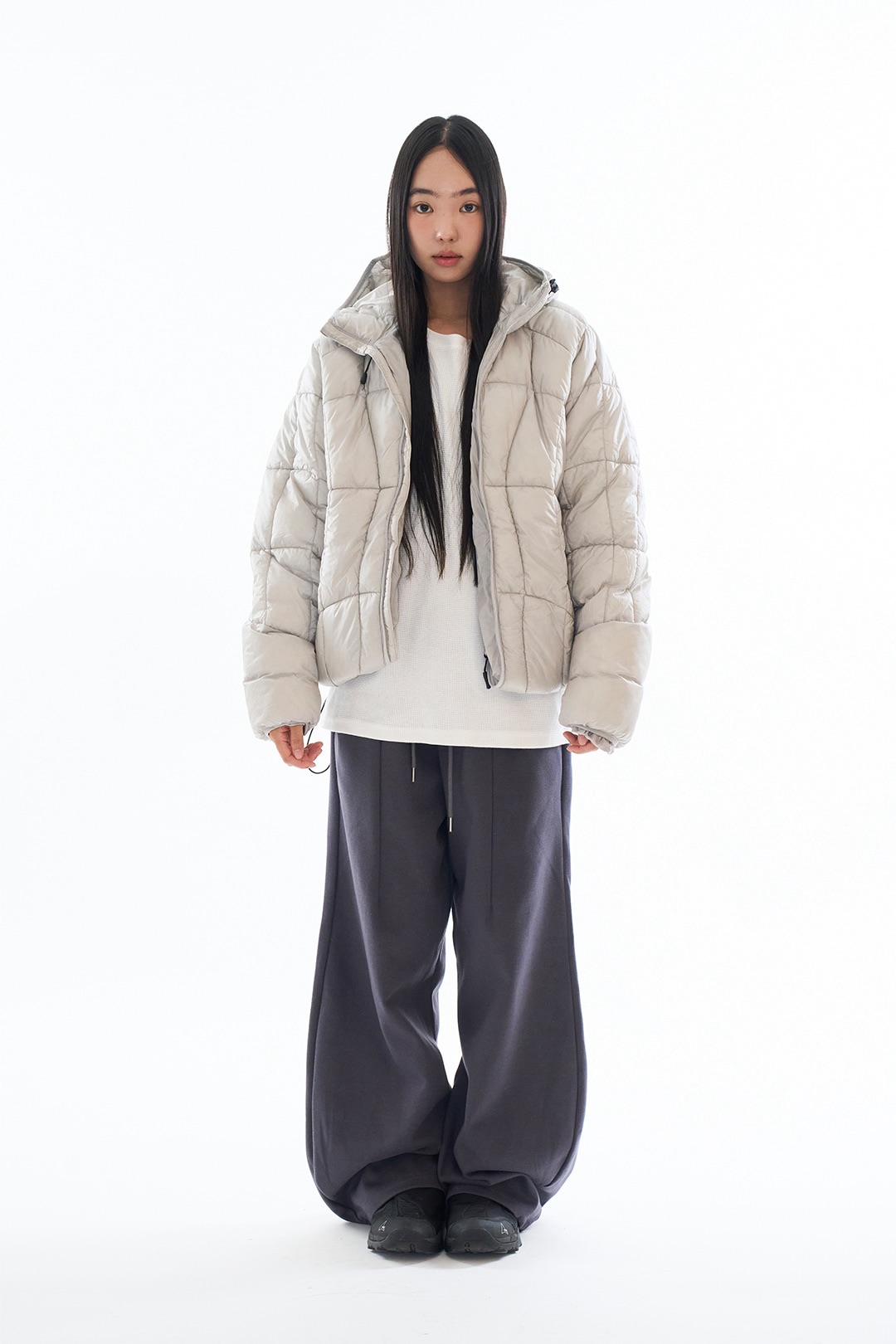 Rauco house 不規則 拼接 曲線 造型感 連帽 拉鍊 羽絨外套 (2color)