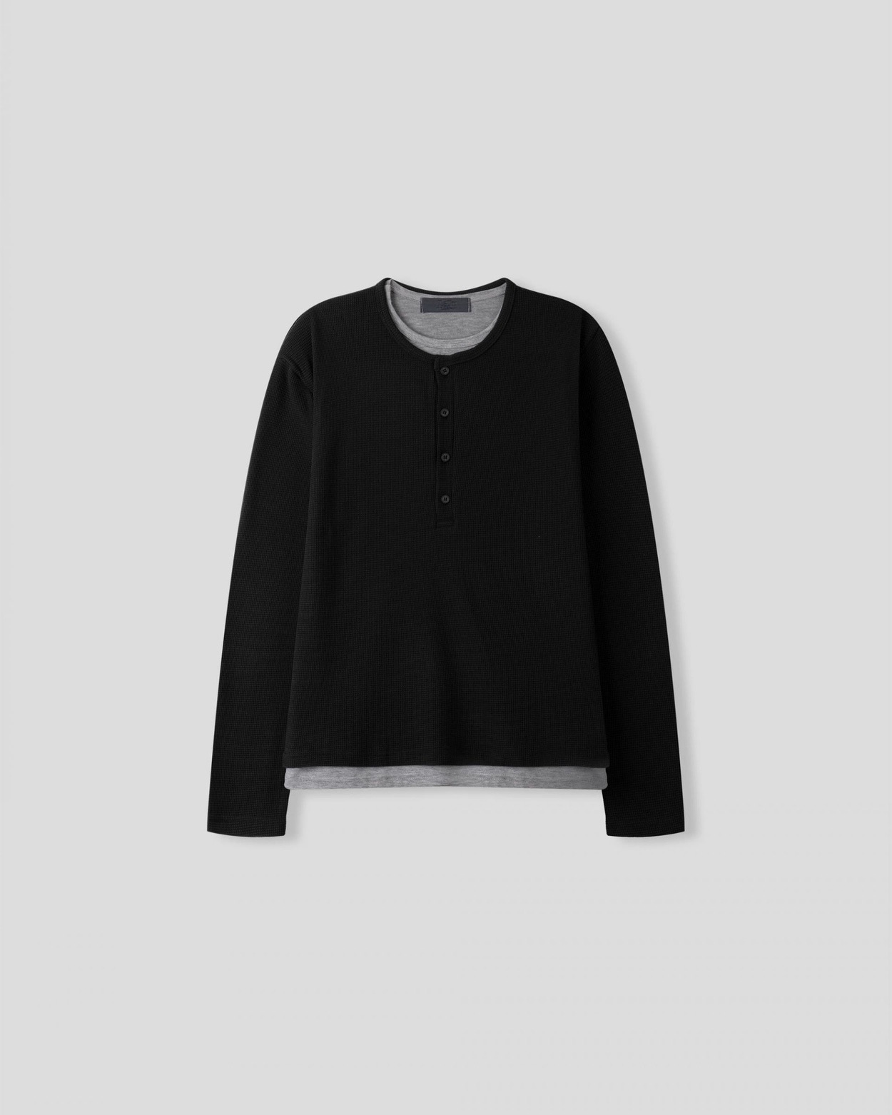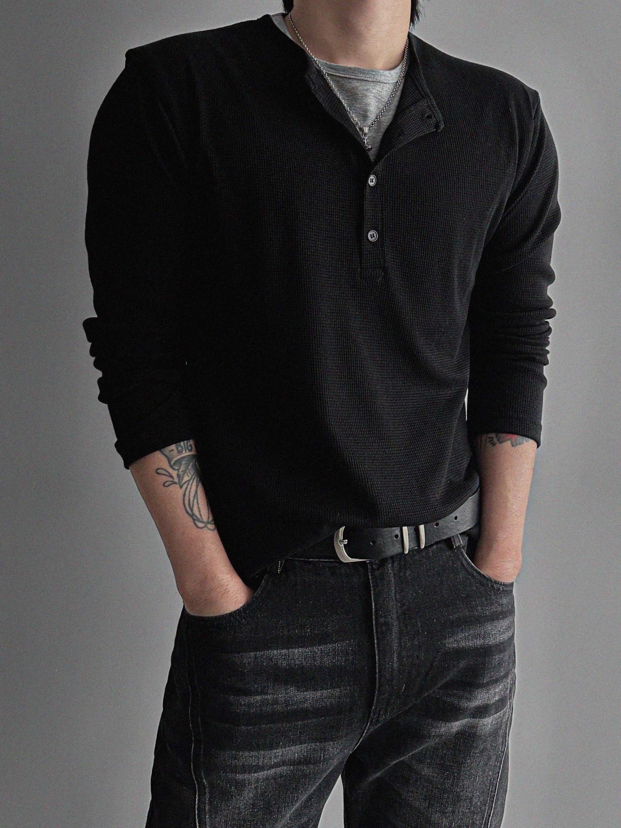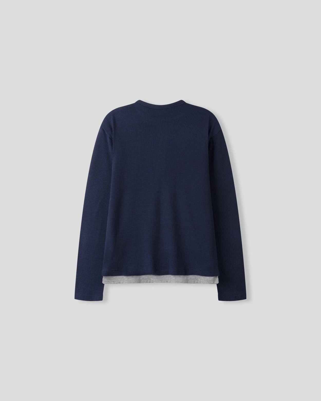 韓國 華夫格 假兩件式 設計感 針織 長袖 上衣 (4color)