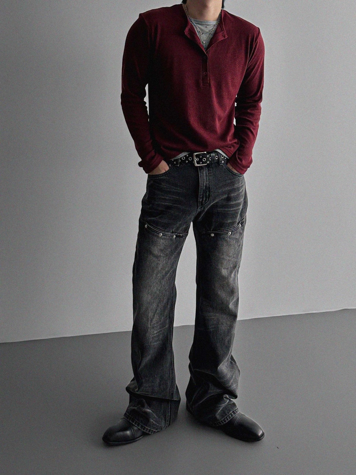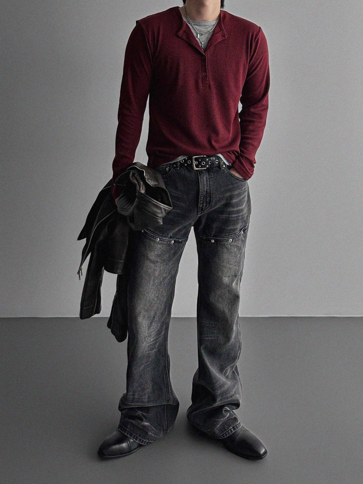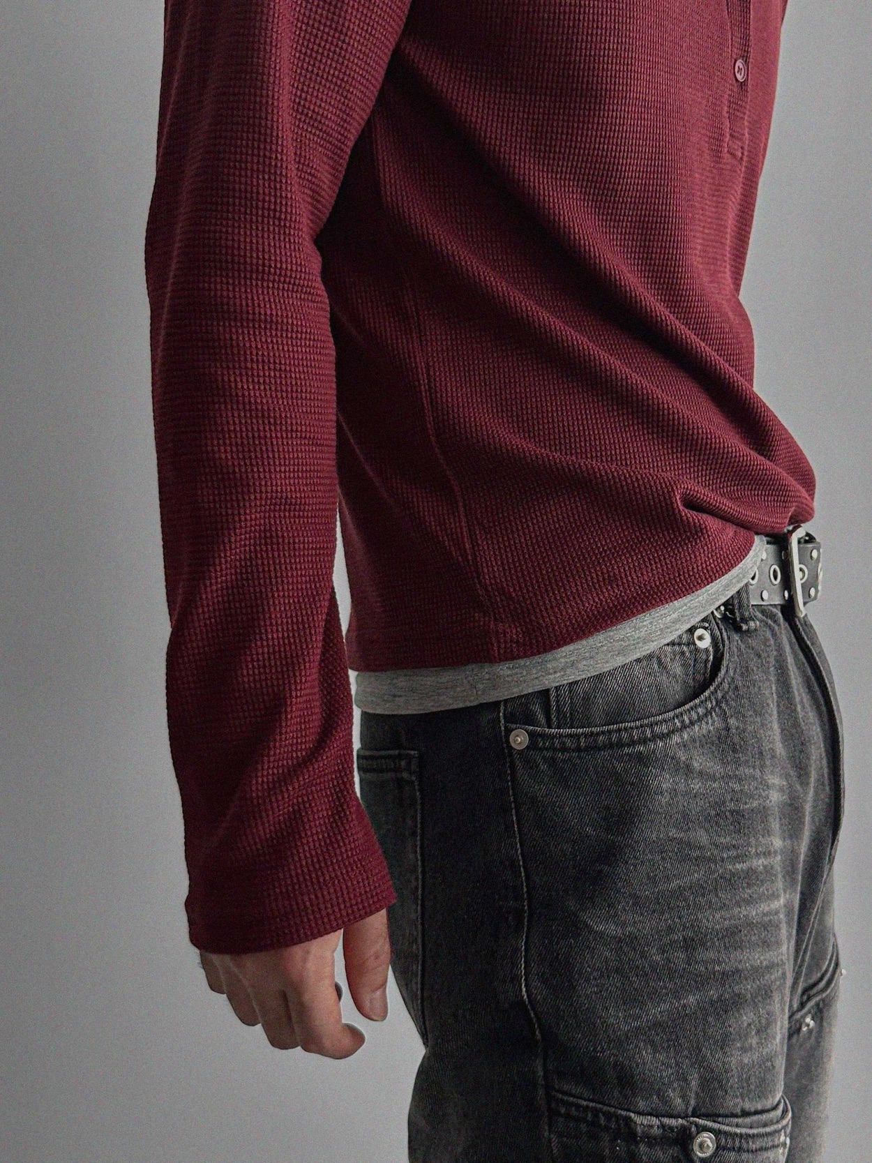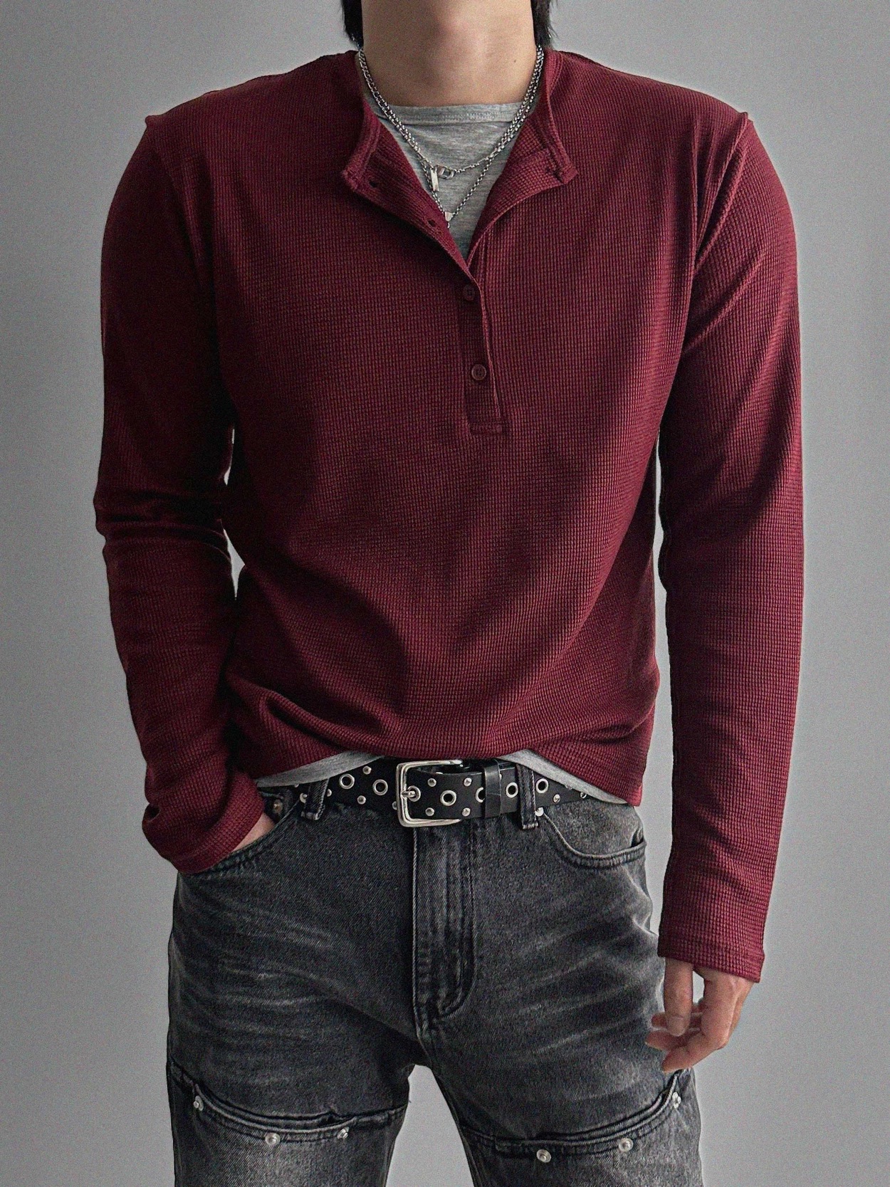 韓國 華夫格 假兩件式 設計感 針織 長袖 上衣 (4color)