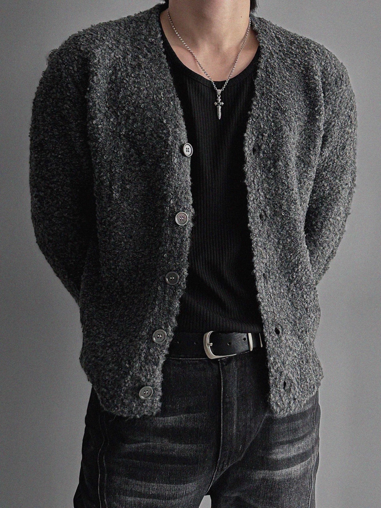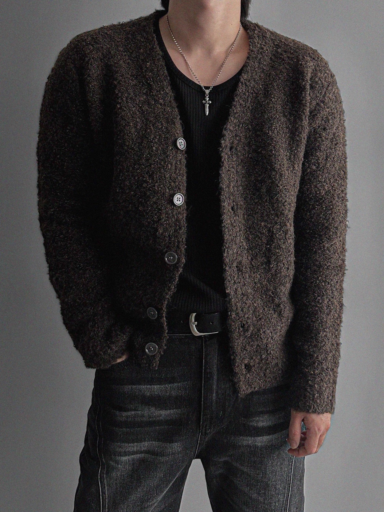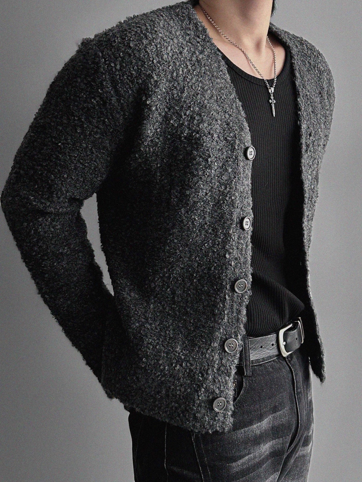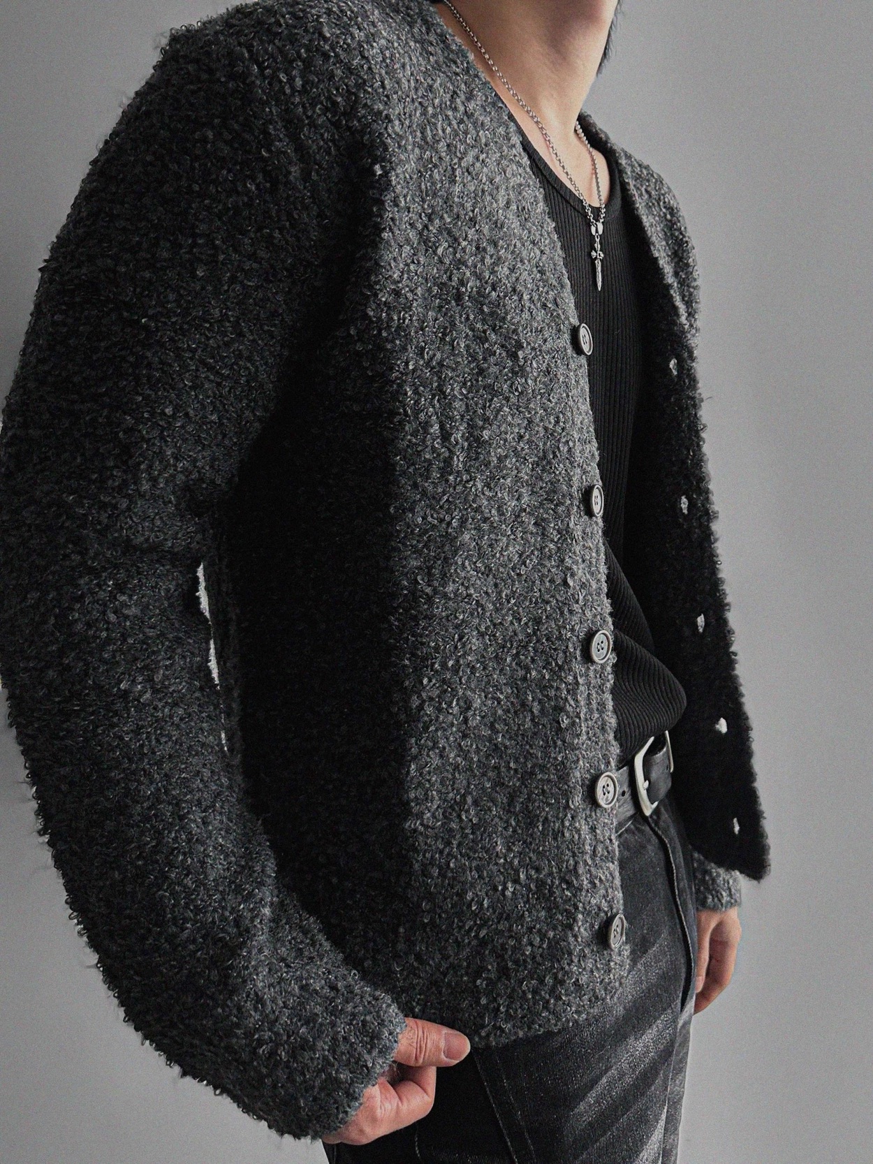 韓國 小香風 高級感 毛呢 混紡 短版 針織 開襟外套 (2color)