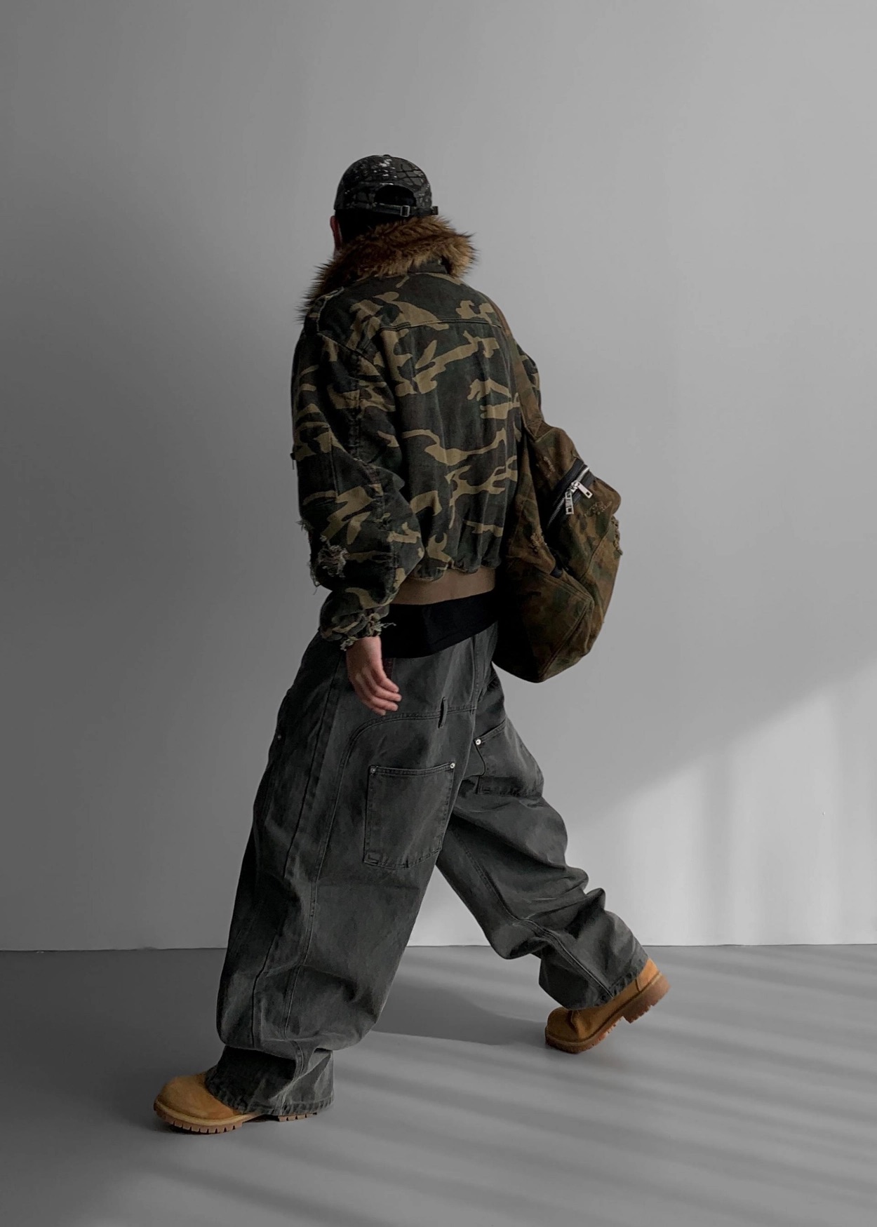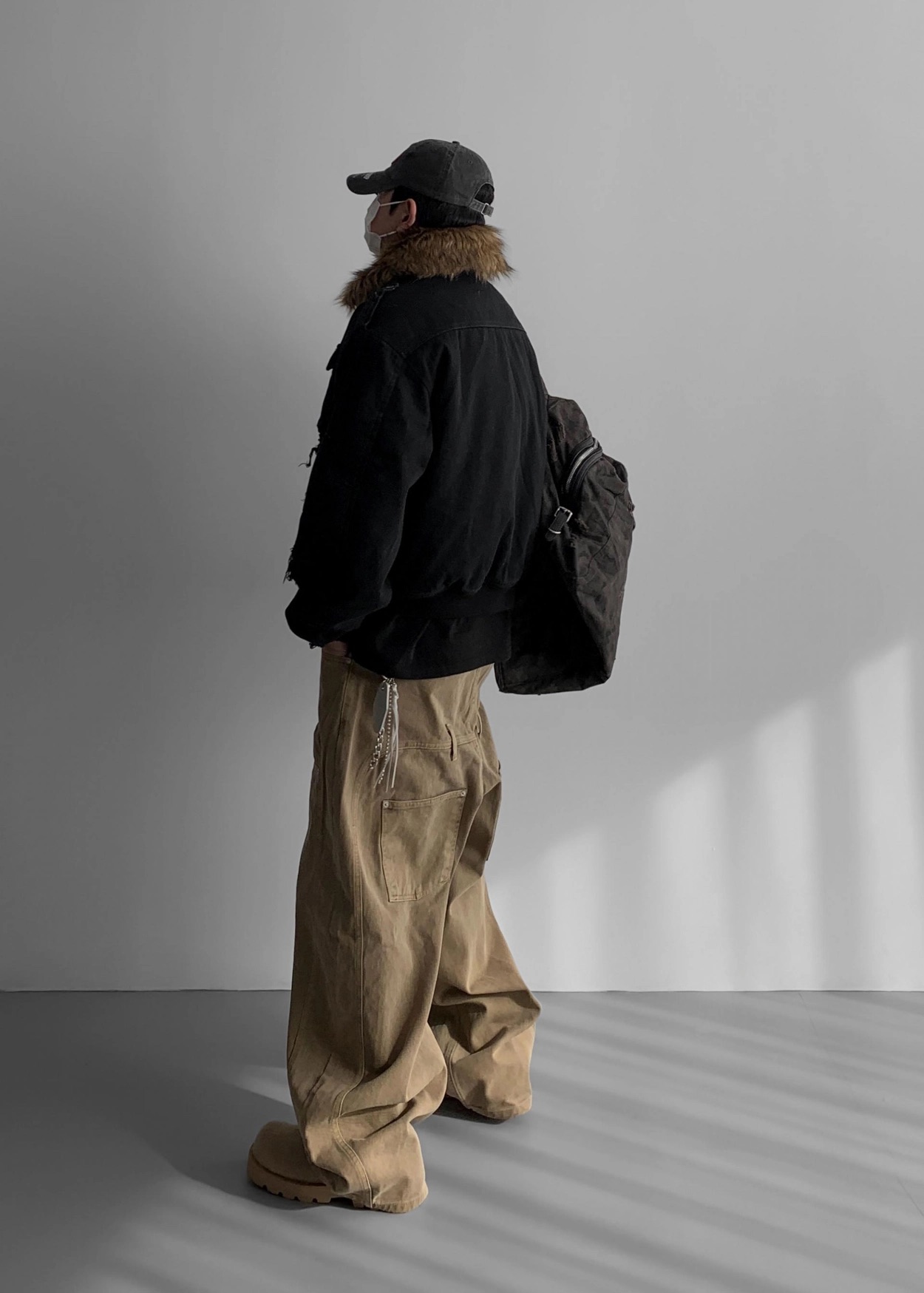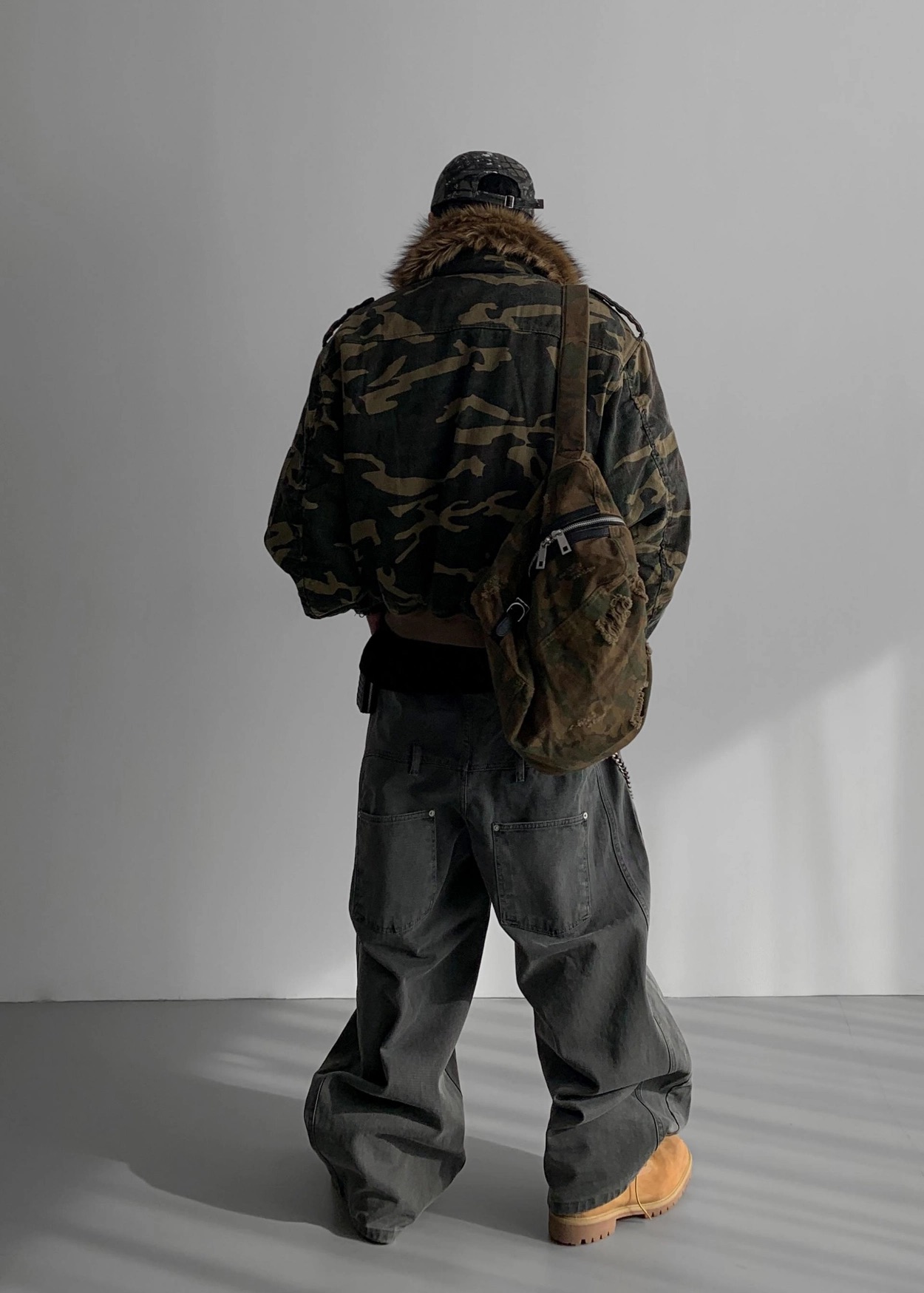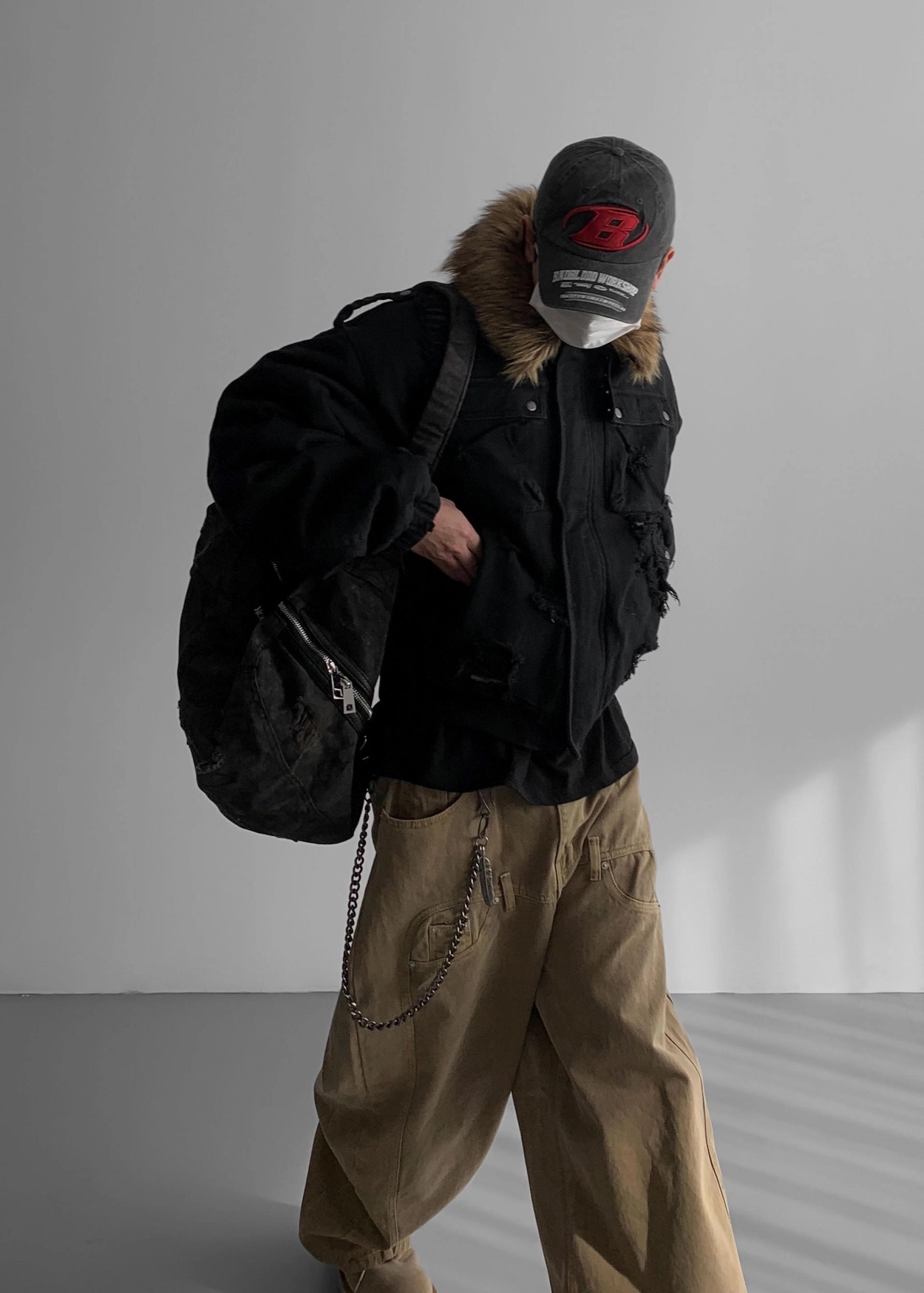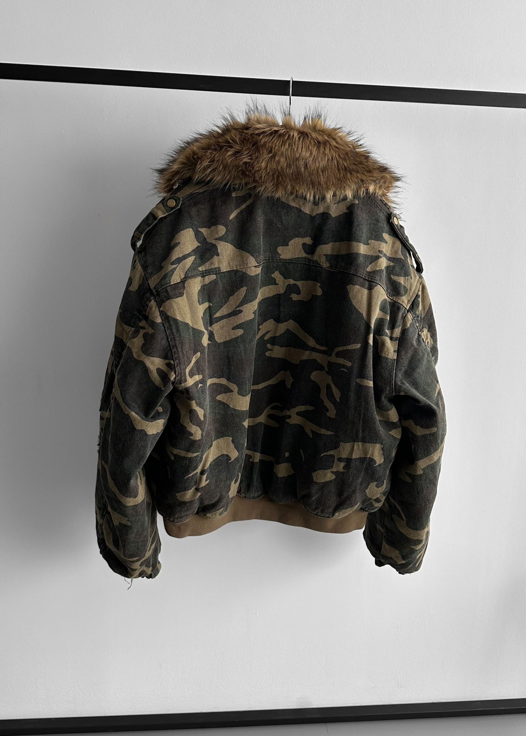 韓國 迷彩 全黑 絨毛領 重工 破壞 設計感 多口袋 重磅 工作外套 (2color)