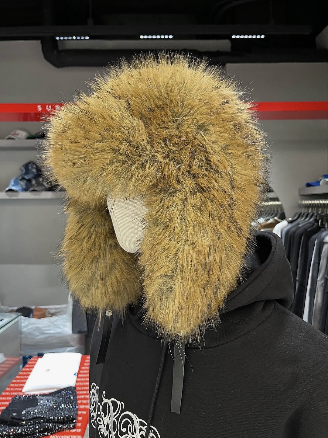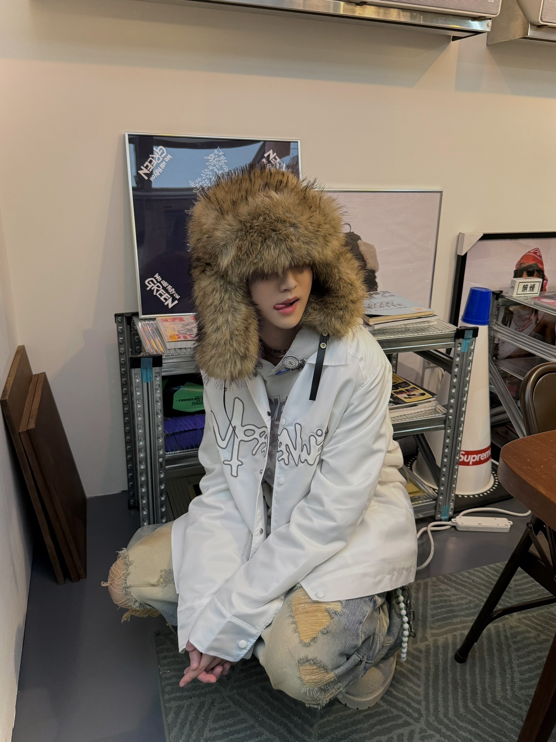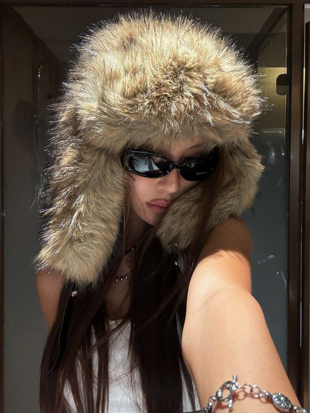 韓國 GD 權志龍 2025 MAMA 相似款 保暖 混色 絨毛 皮草 飛行帽