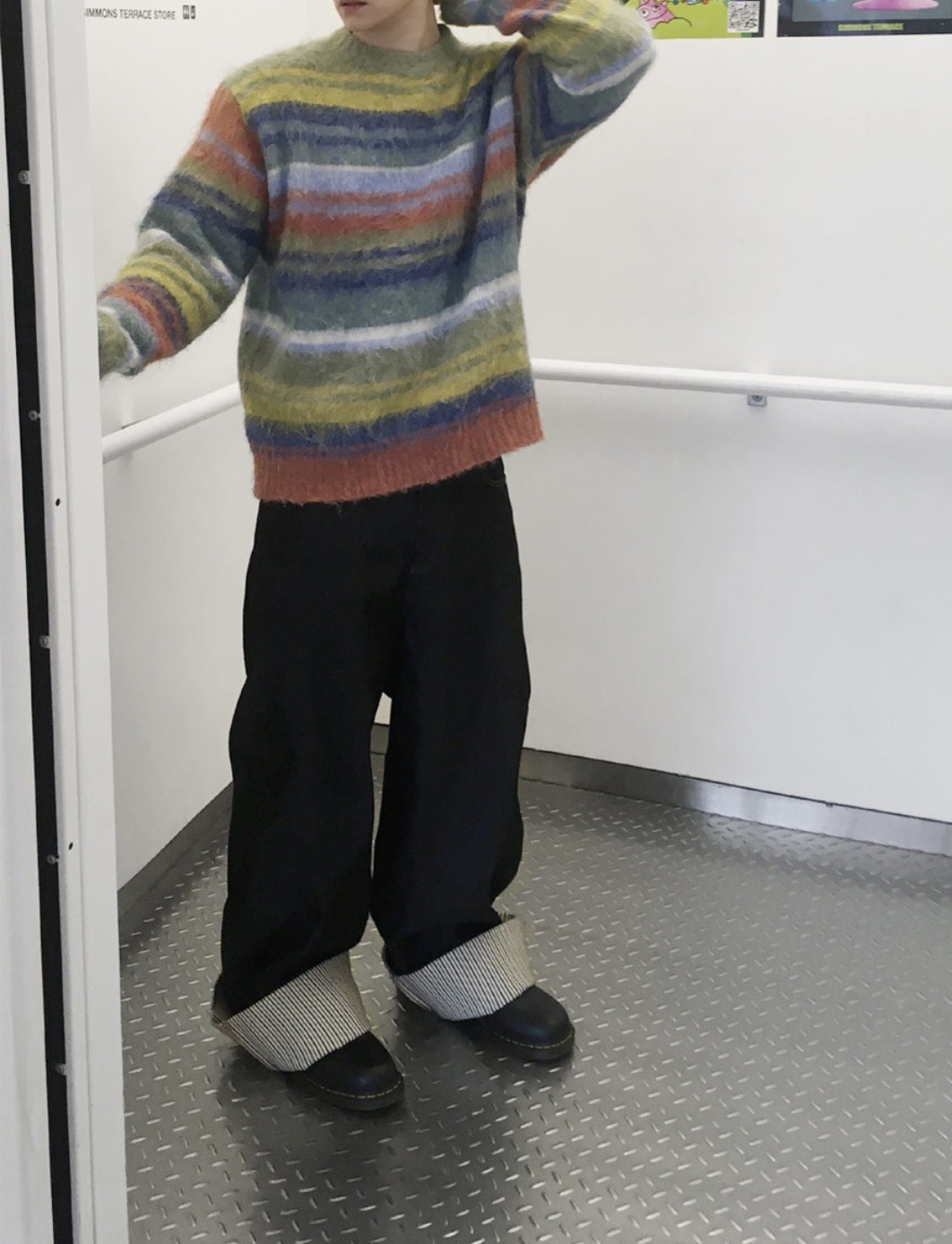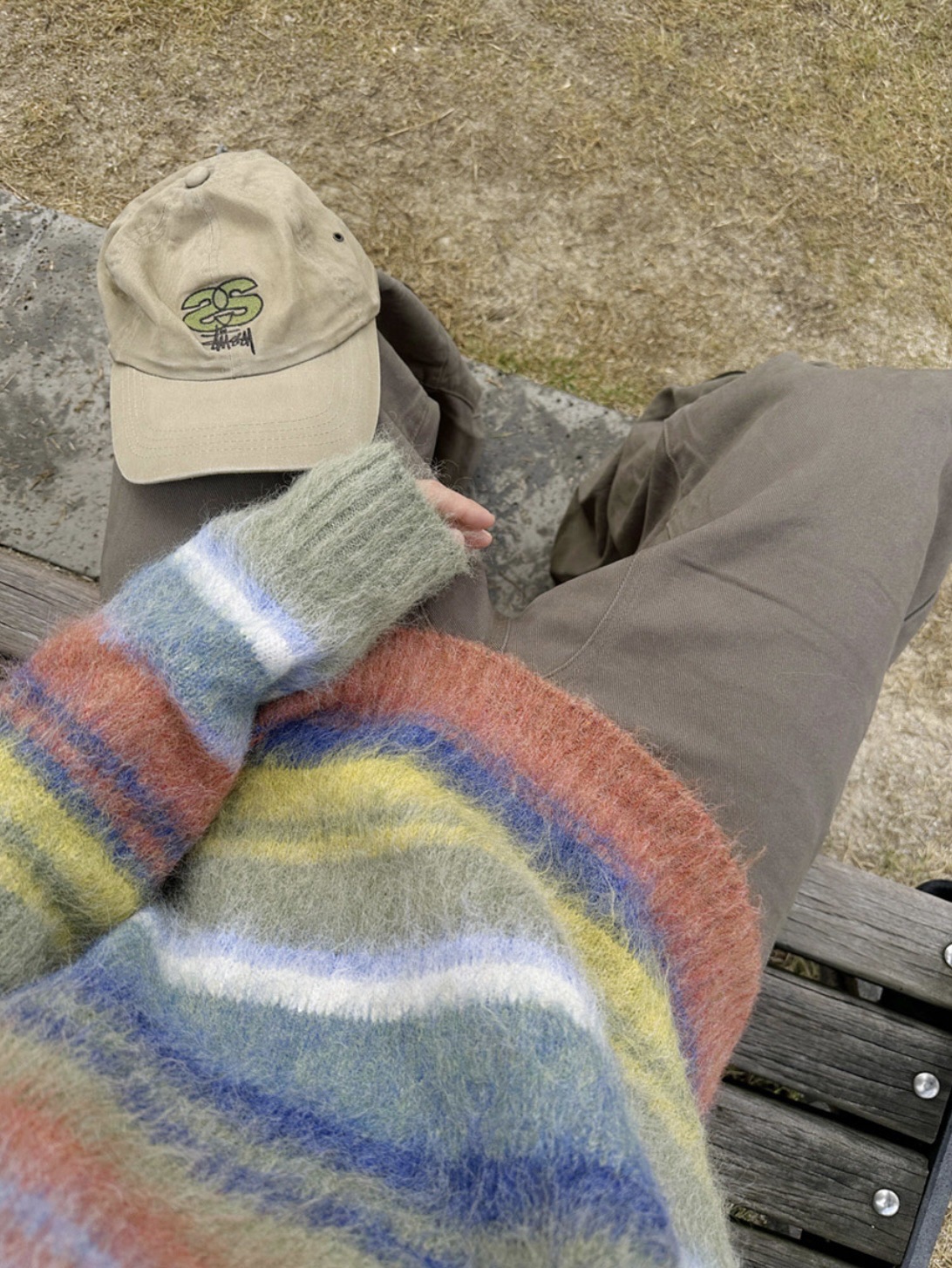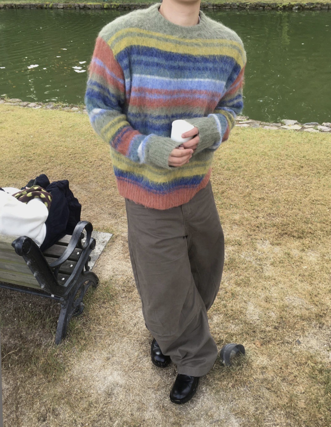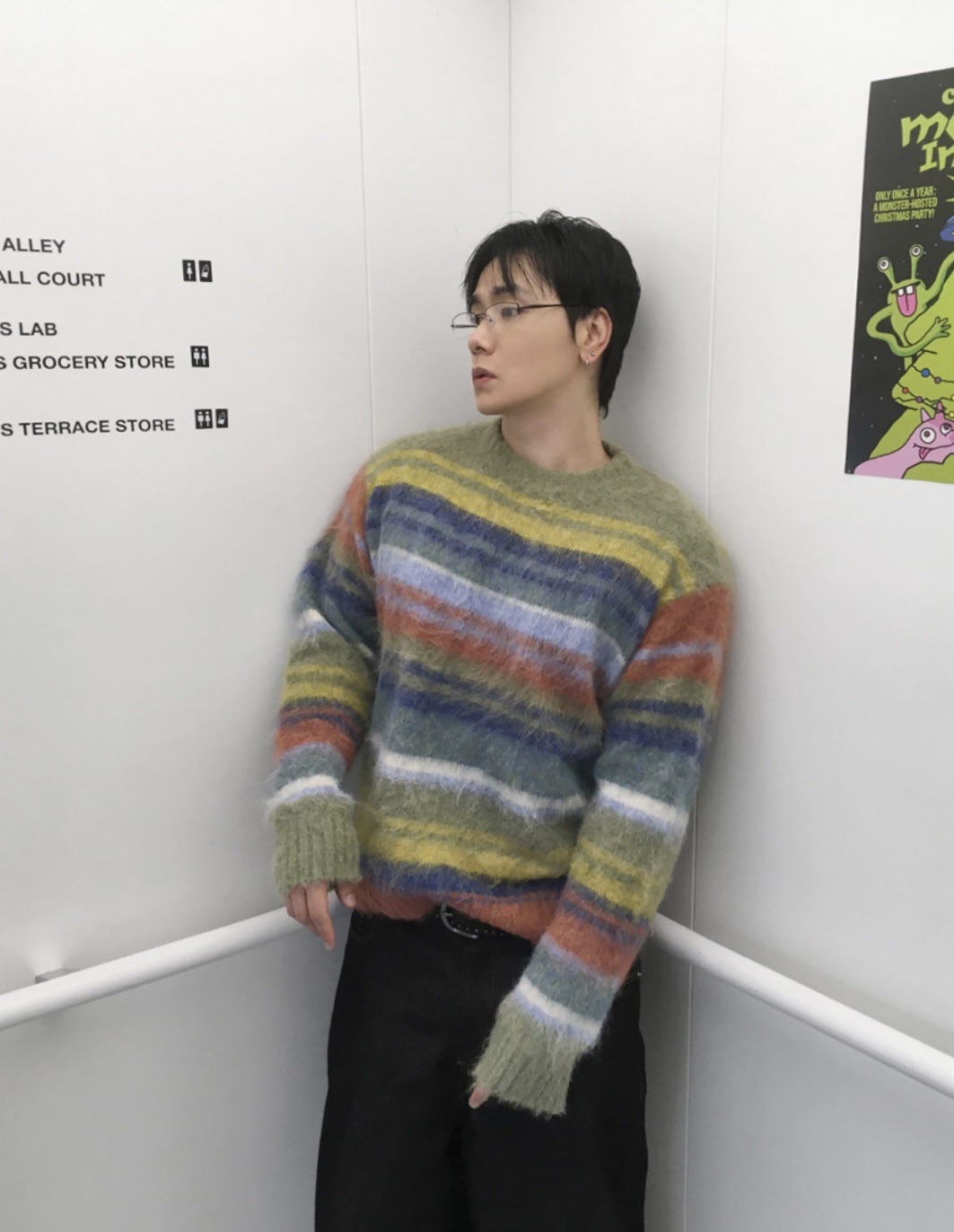 HOLY IN CODE 彩色 繽紛 條紋 馬海毛 保暖 毛衣 (2color)
