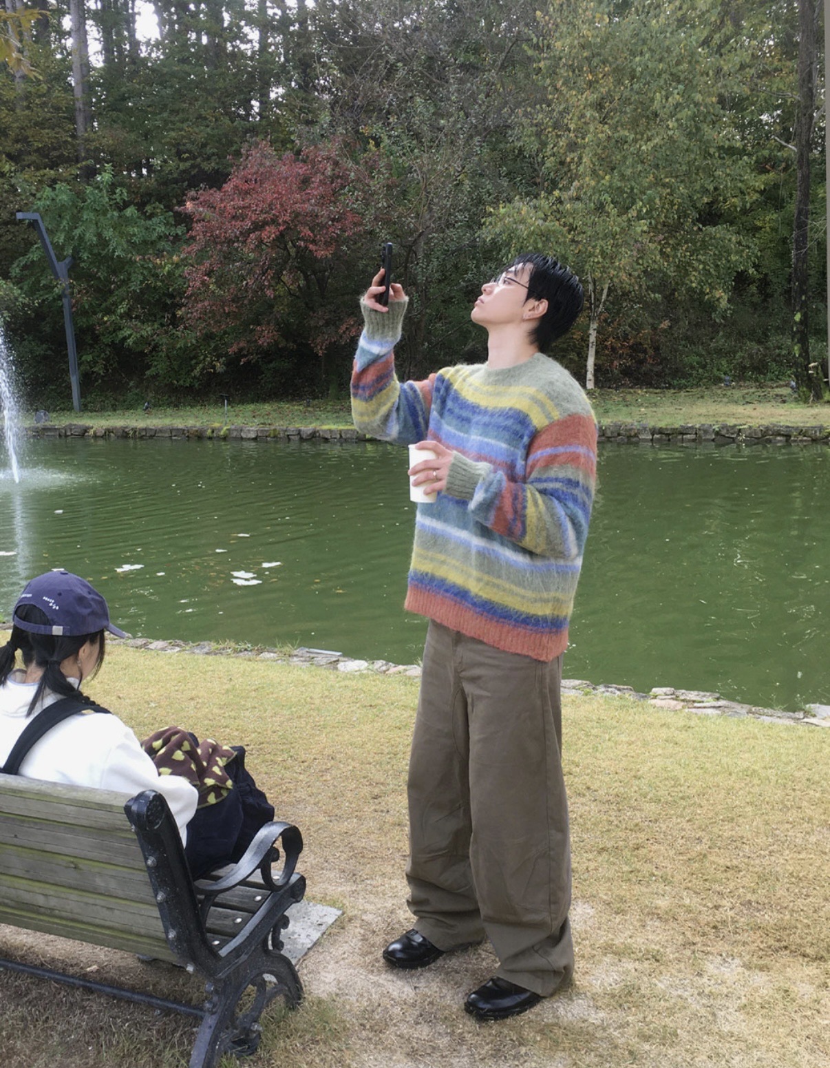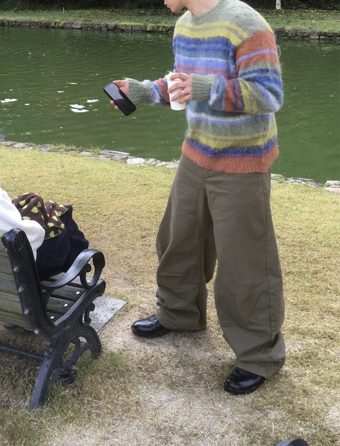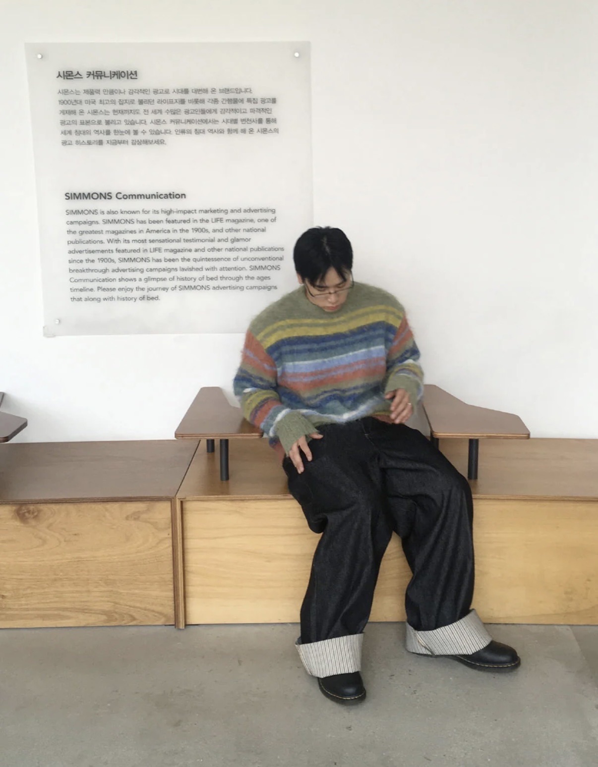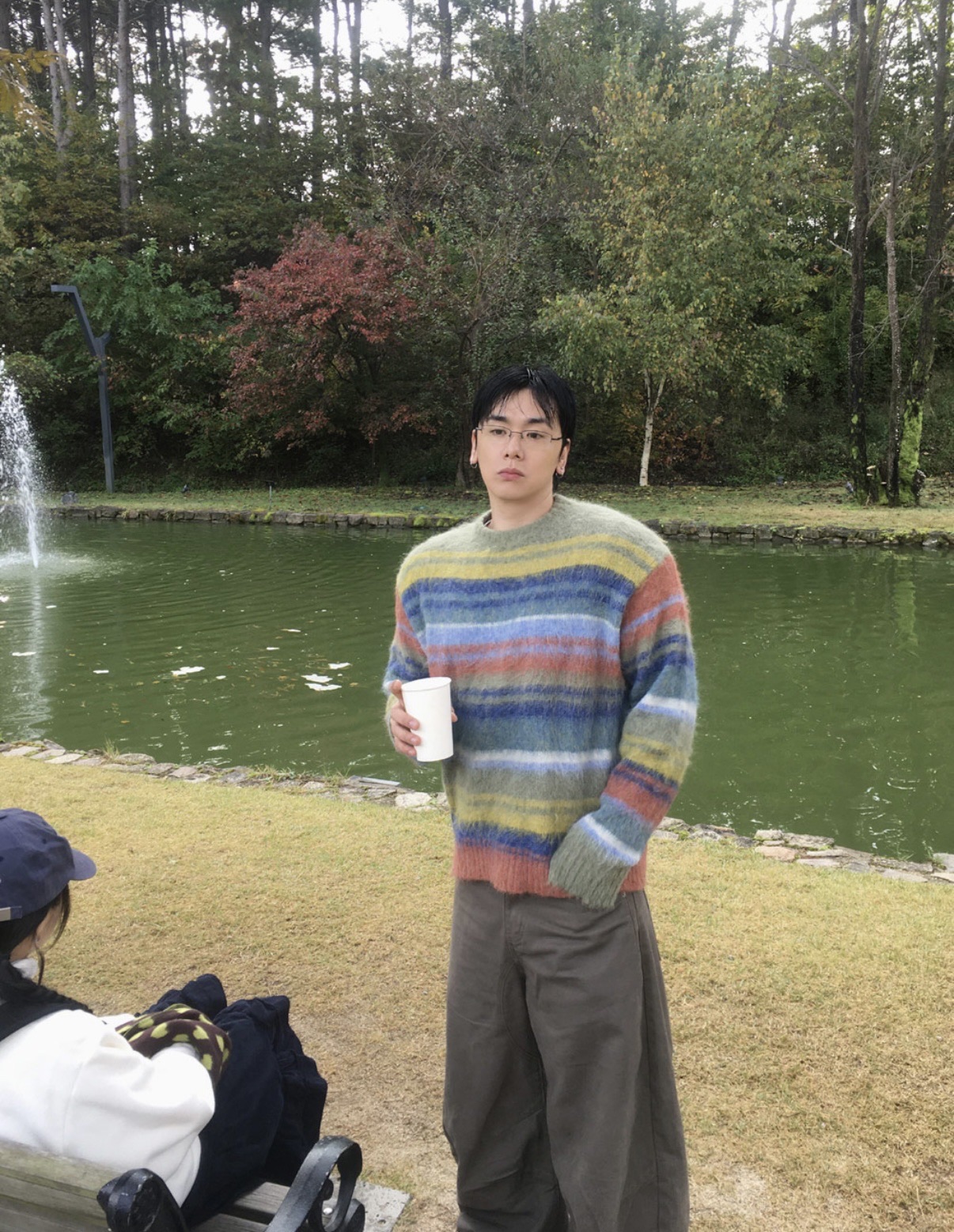 HOLY IN CODE 彩色 繽紛 條紋 馬海毛 保暖 毛衣 (2color)