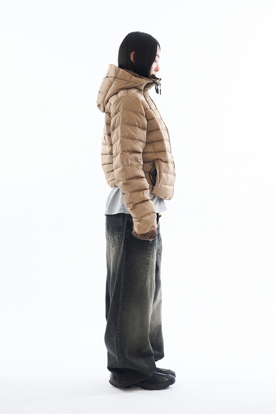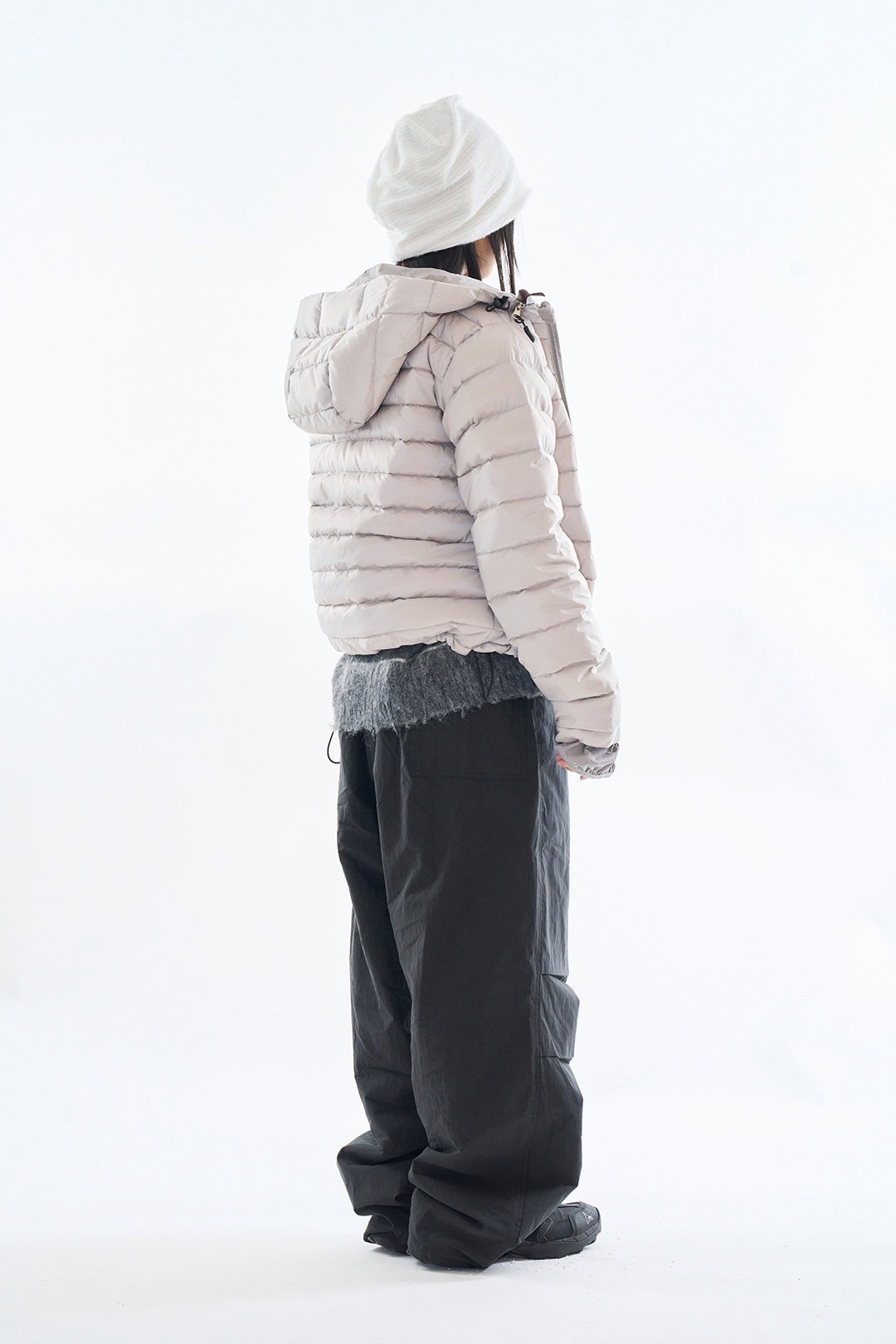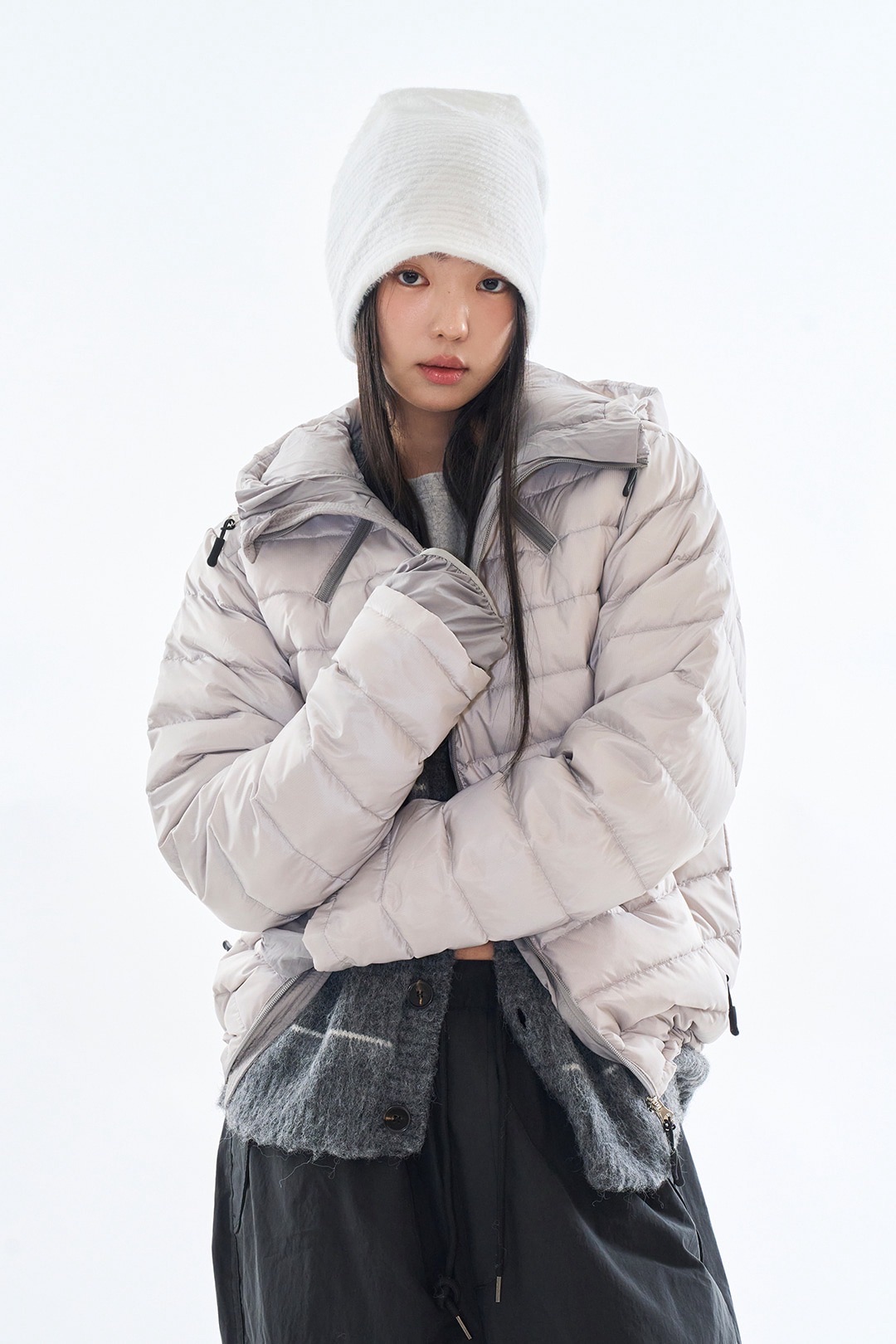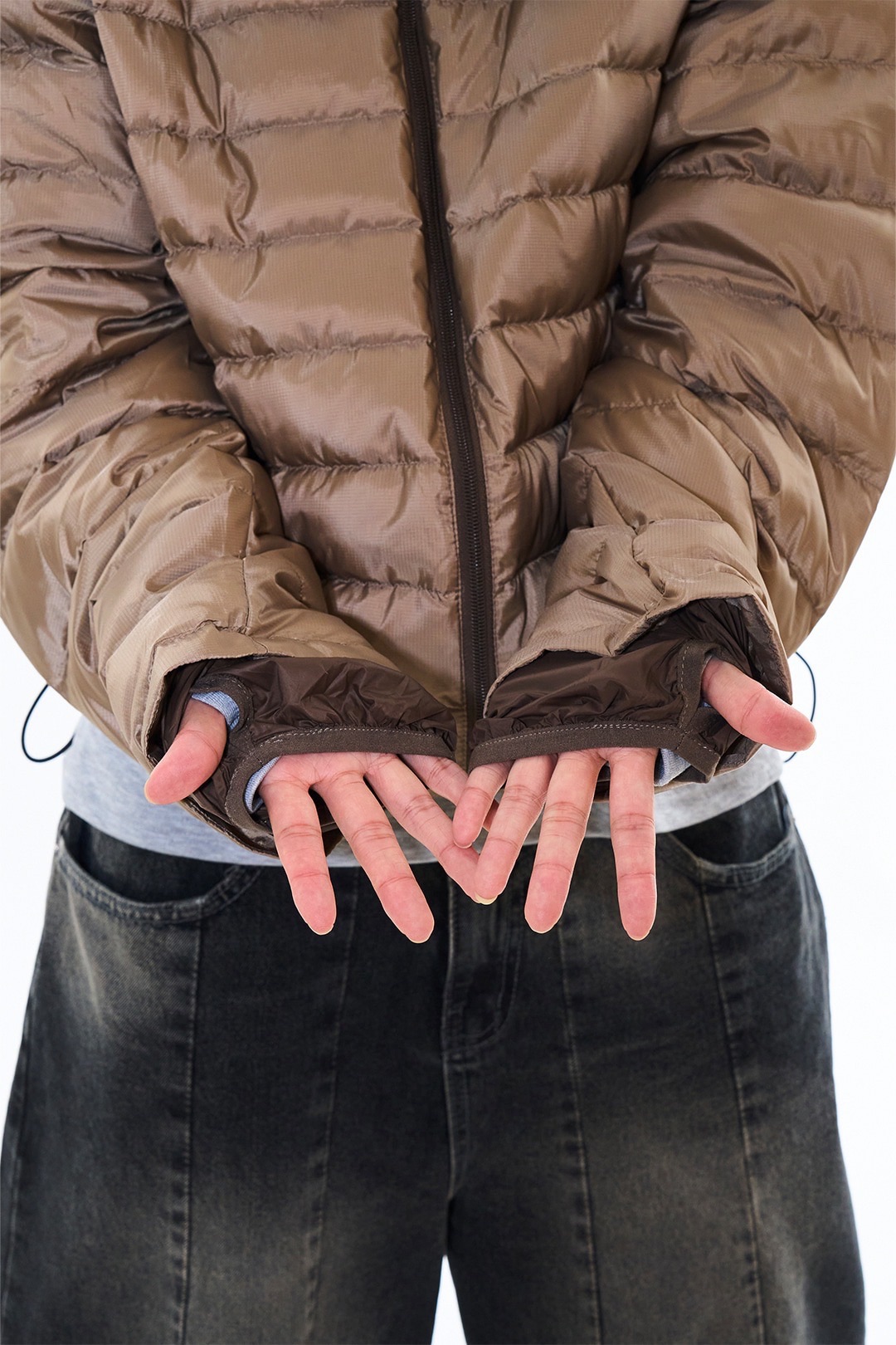 Rauco house 特殊拉鍊 指套設計 鴨絨 保暖 厚鋪棉 立領 抽繩 短版 連帽 羽絨外套 (3color)