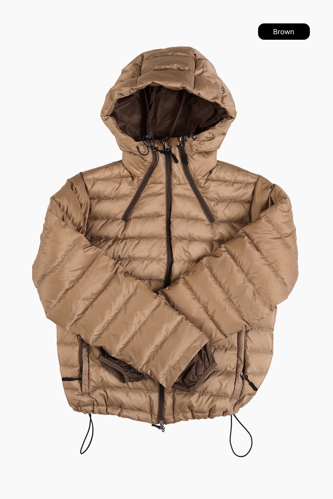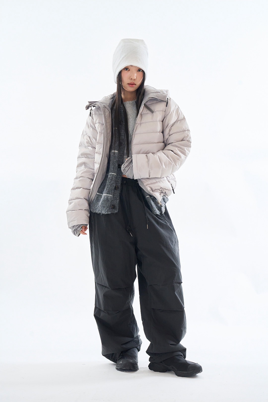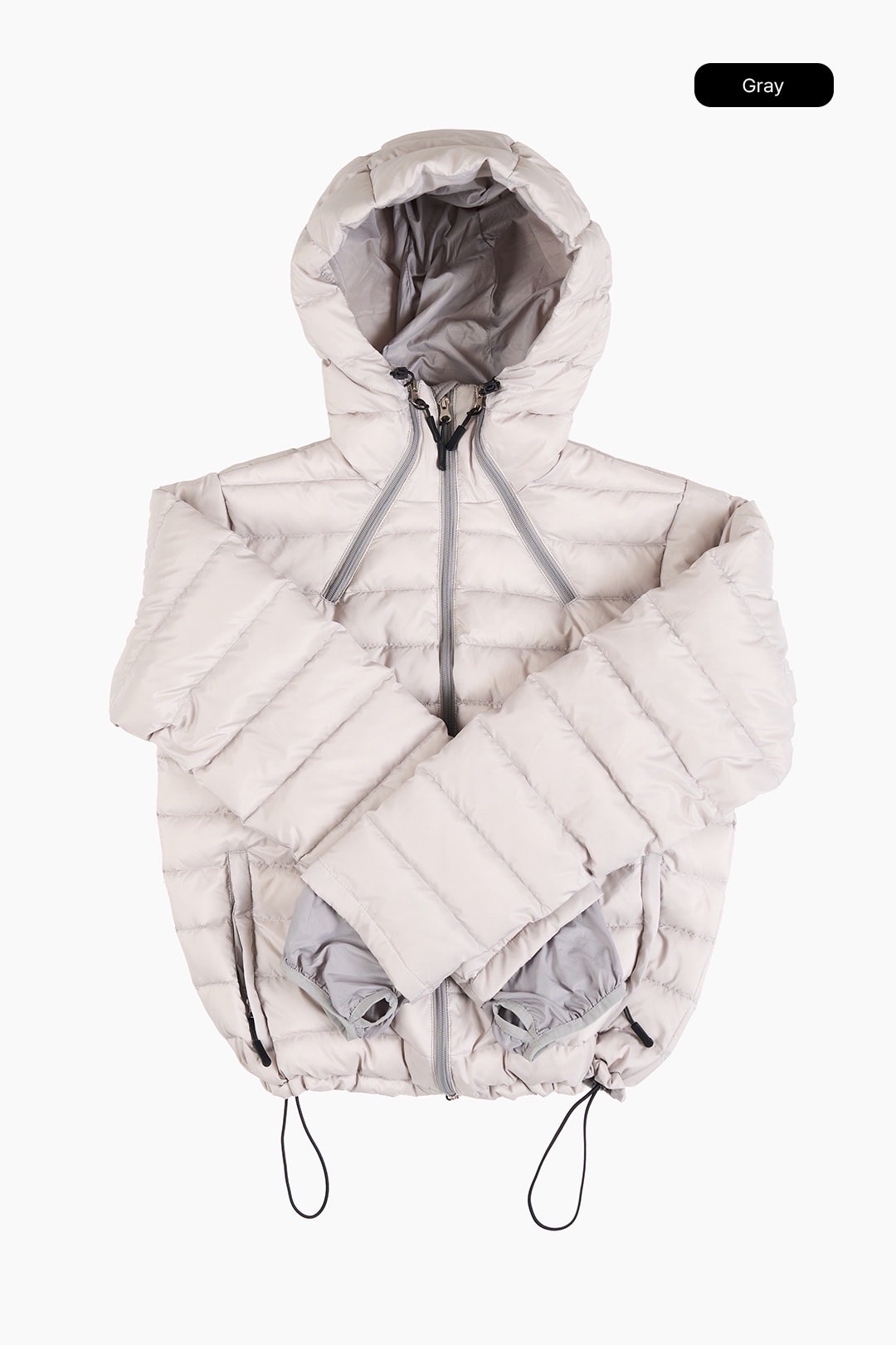 Rauco house 特殊拉鍊 指套設計 鴨絨 保暖 厚鋪棉 立領 抽繩 短版 連帽 羽絨外套 (3color)