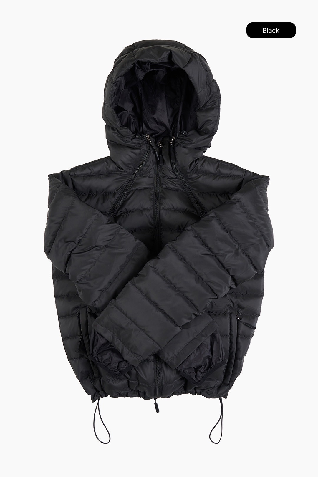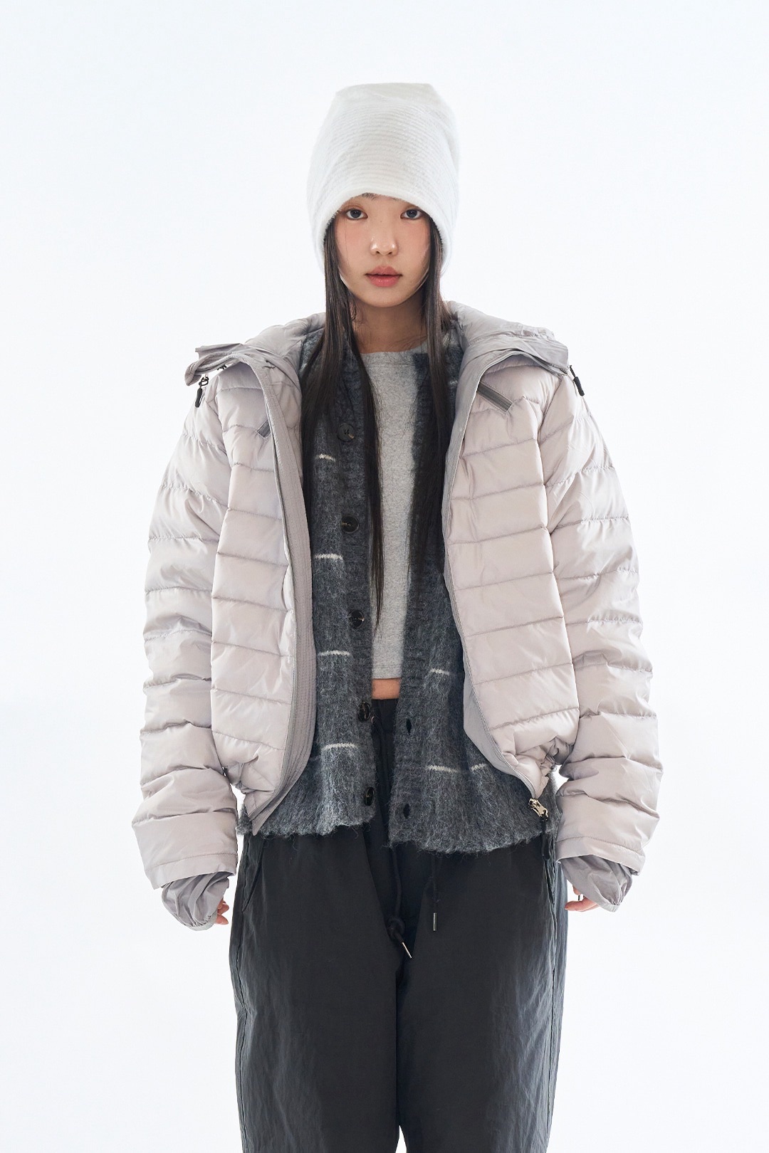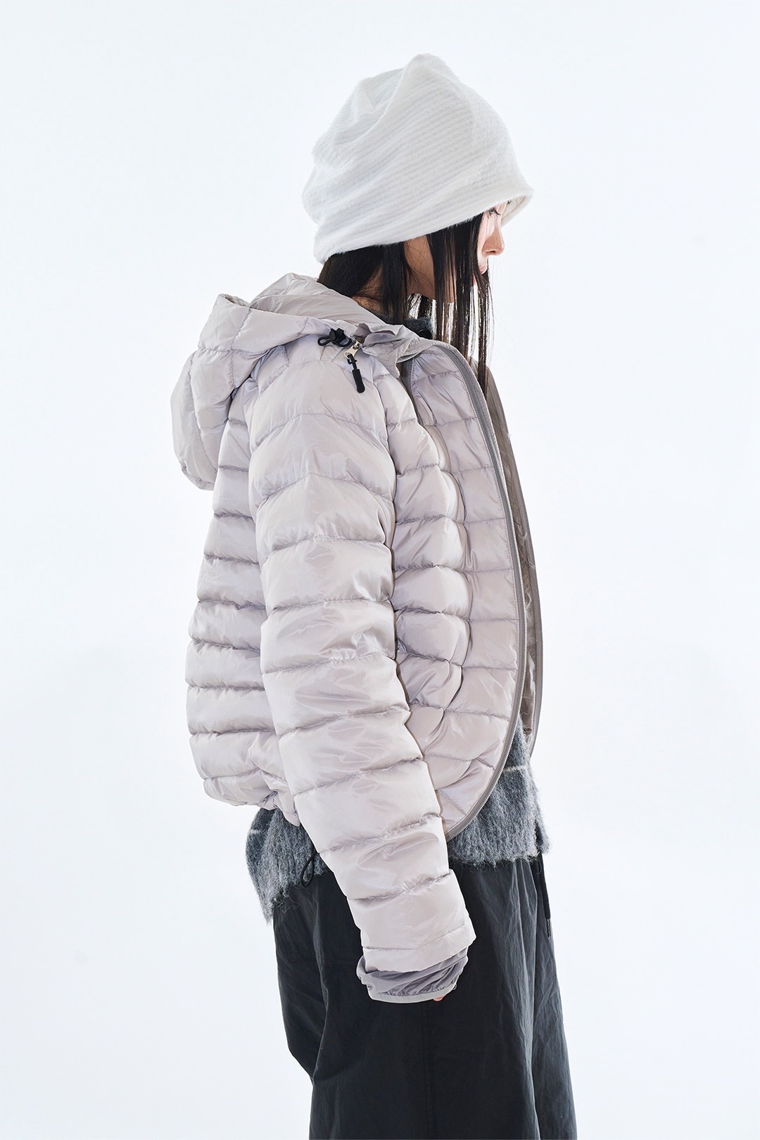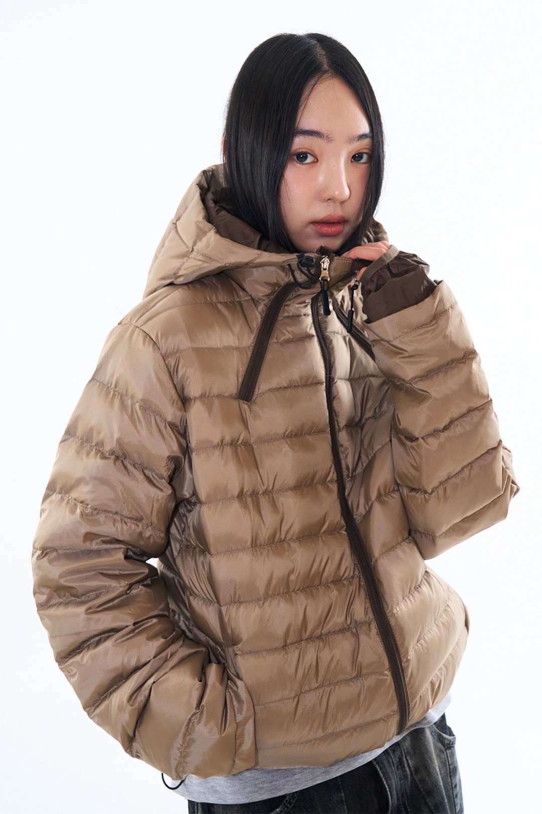 Rauco house 特殊拉鍊 指套設計 鴨絨 保暖 厚鋪棉 立領 抽繩 短版 連帽 羽絨外套 (3color)