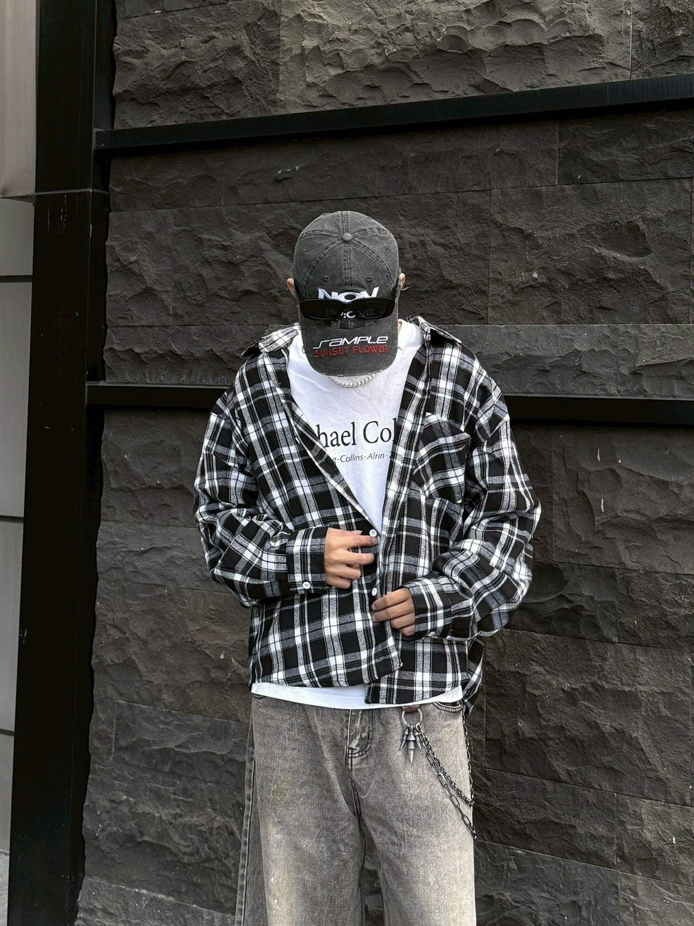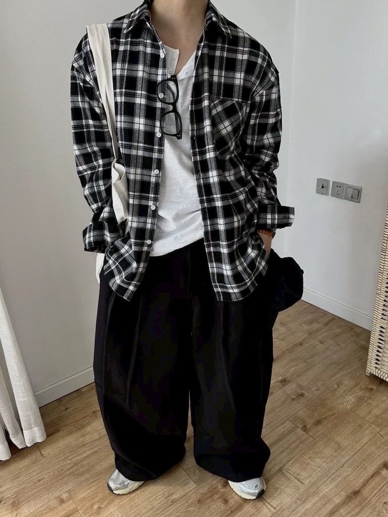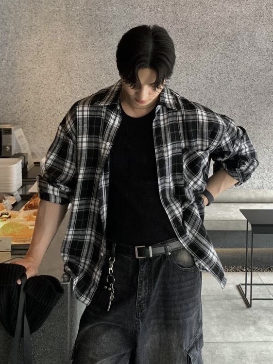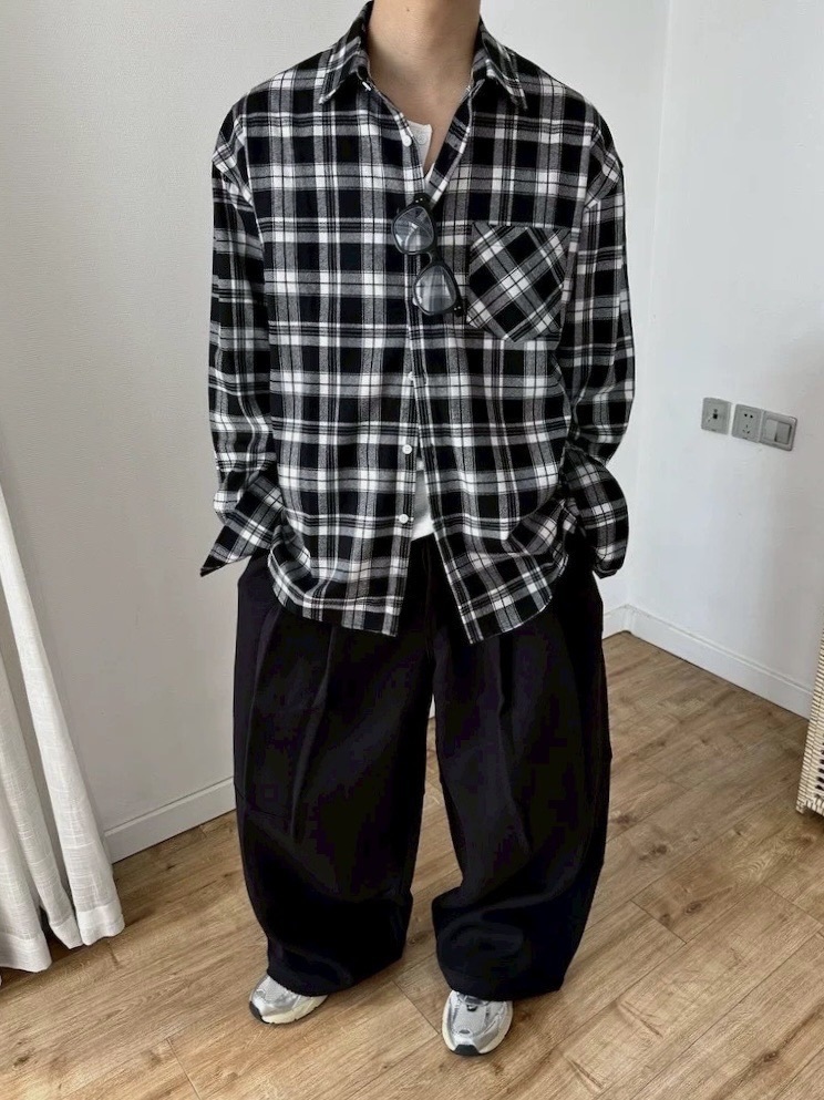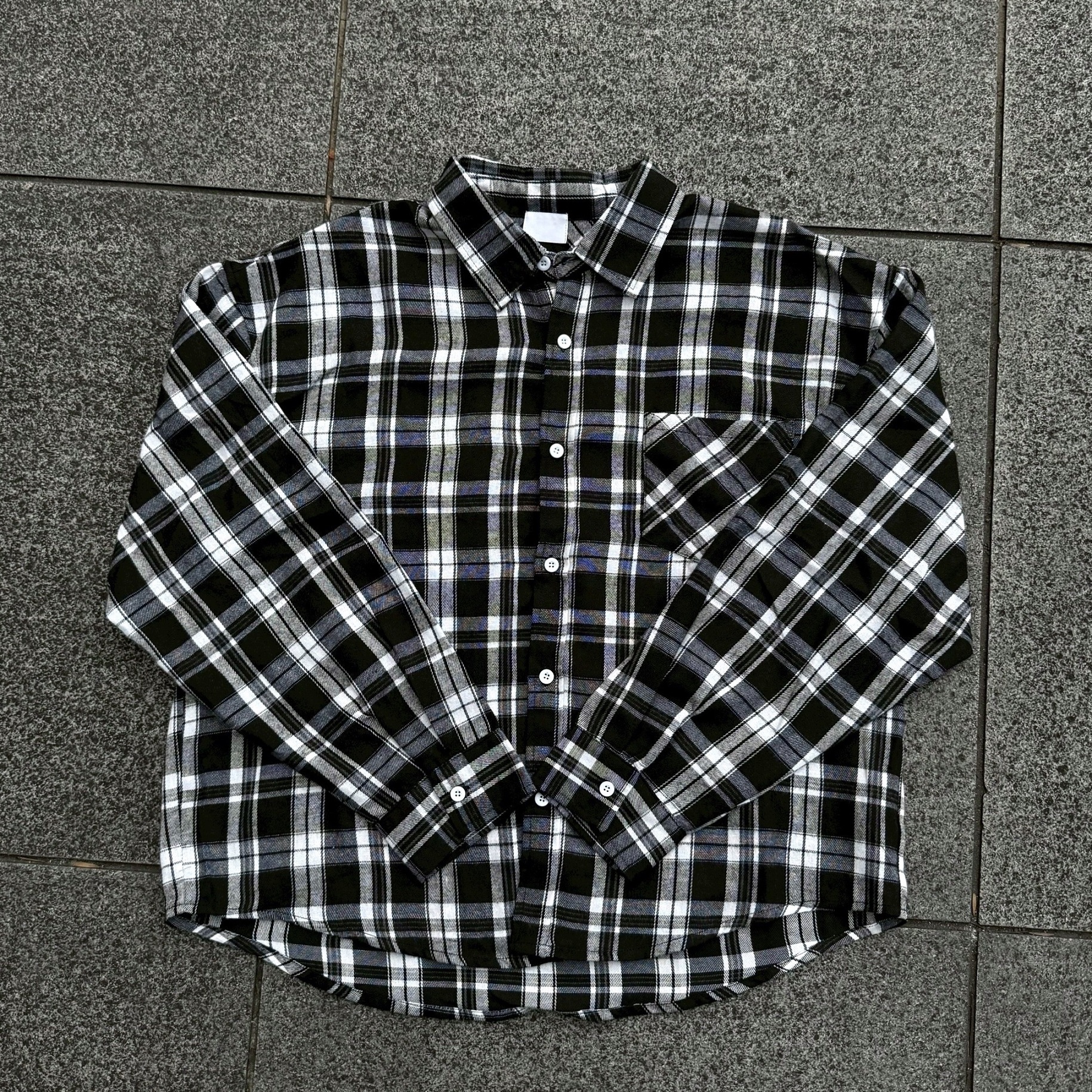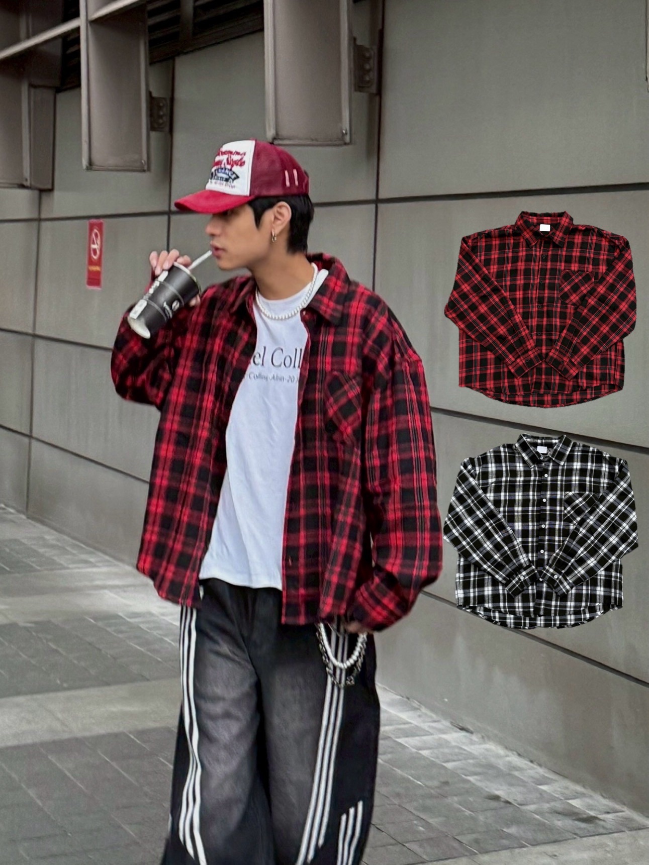 韓國 秋冬 經典 格紋 口袋 長袖襯衫 (2color)