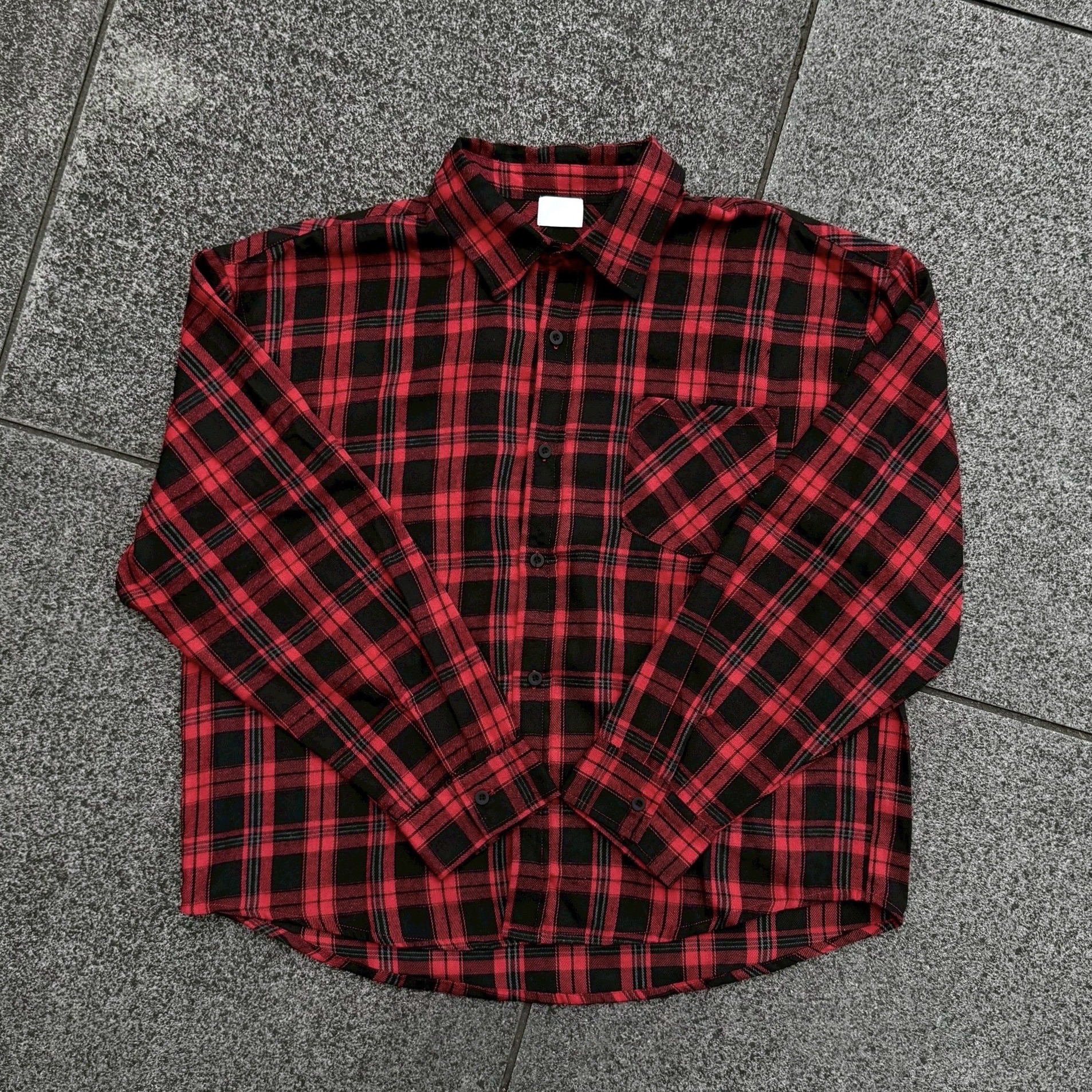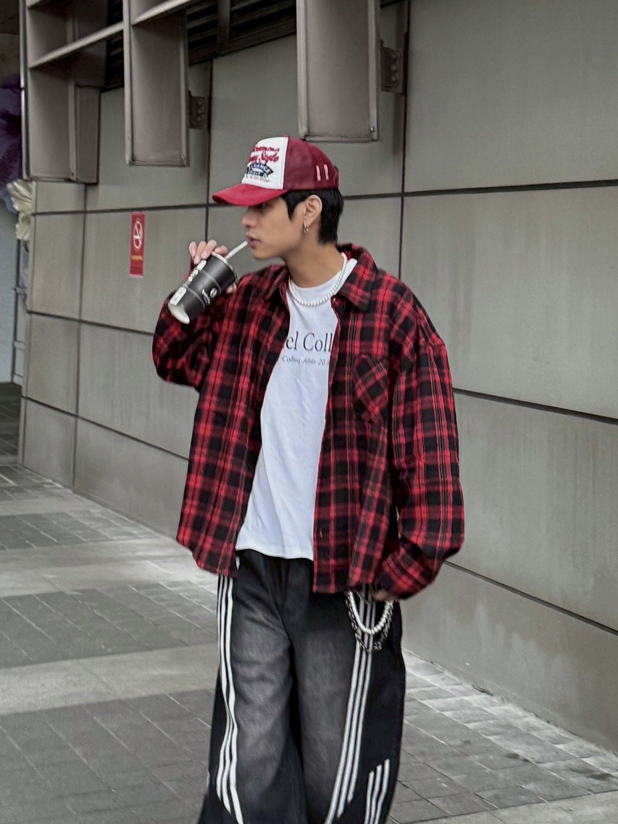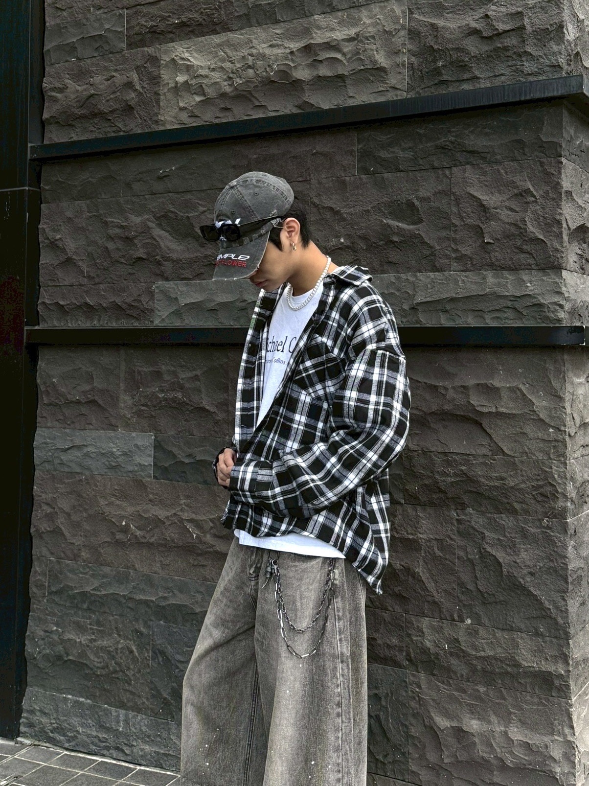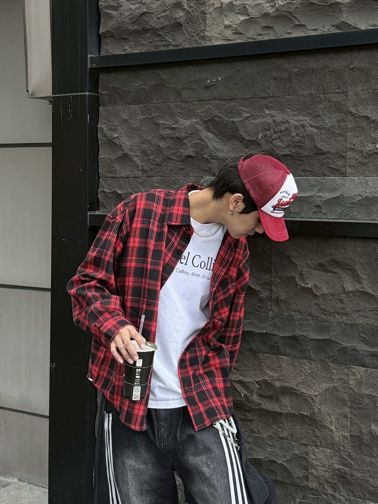 韓國 秋冬 經典 格紋 口袋 長袖襯衫 (2color)