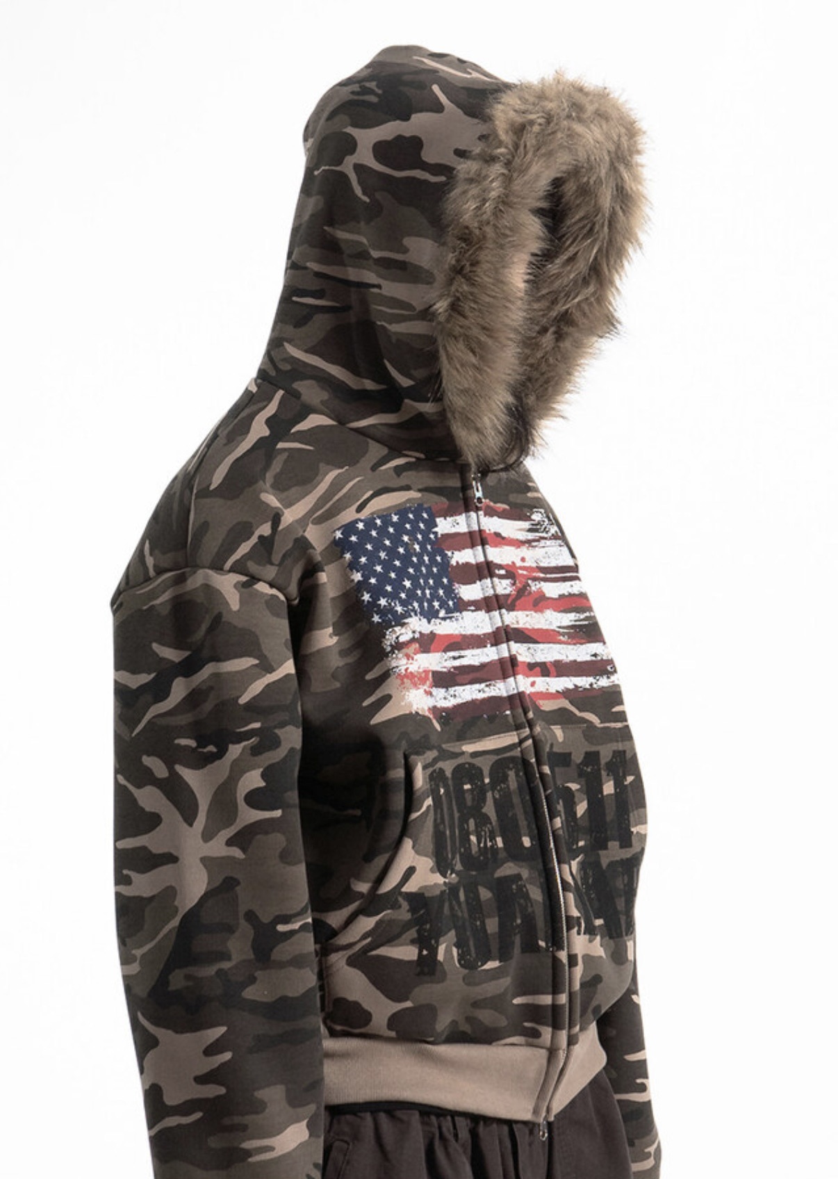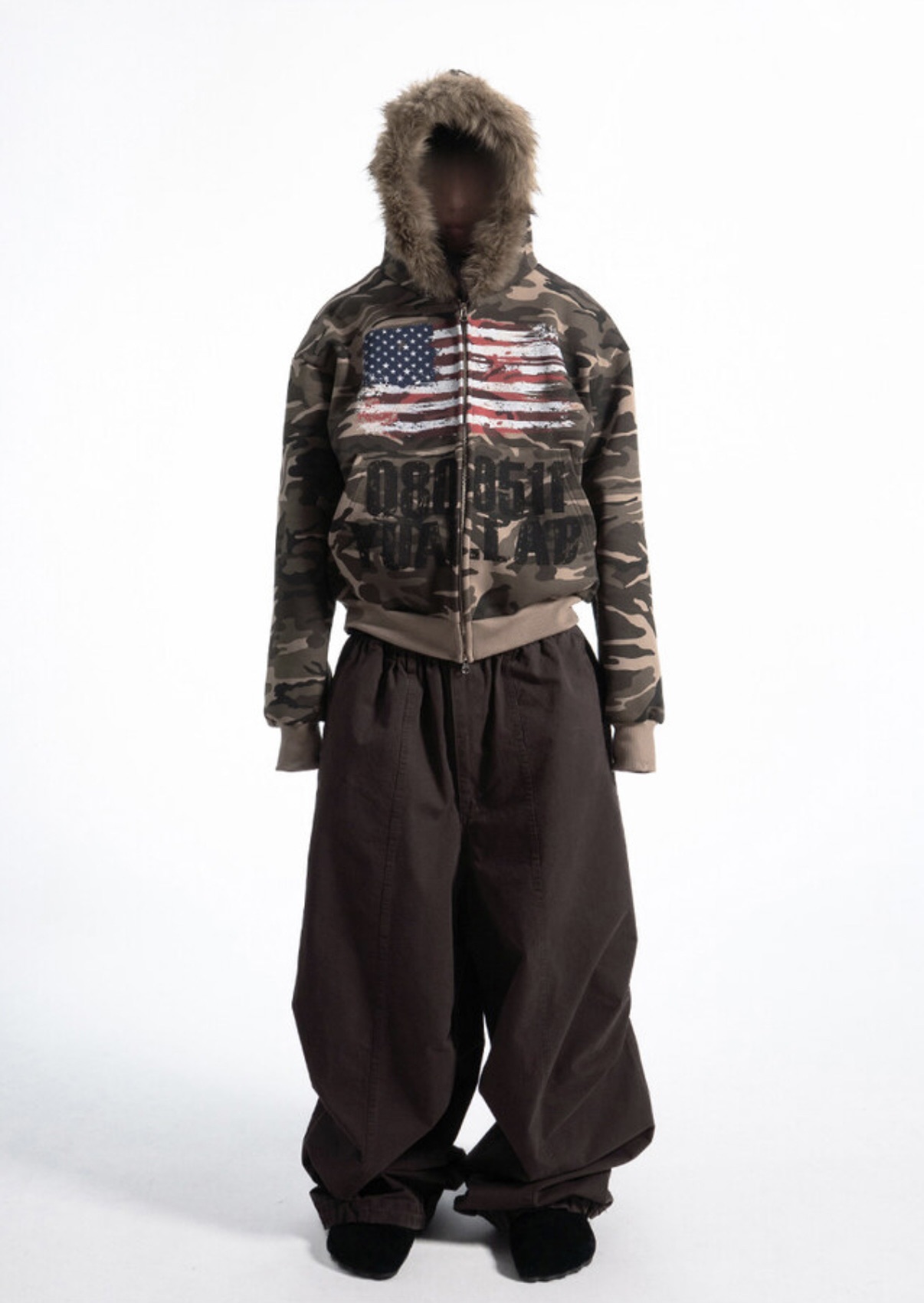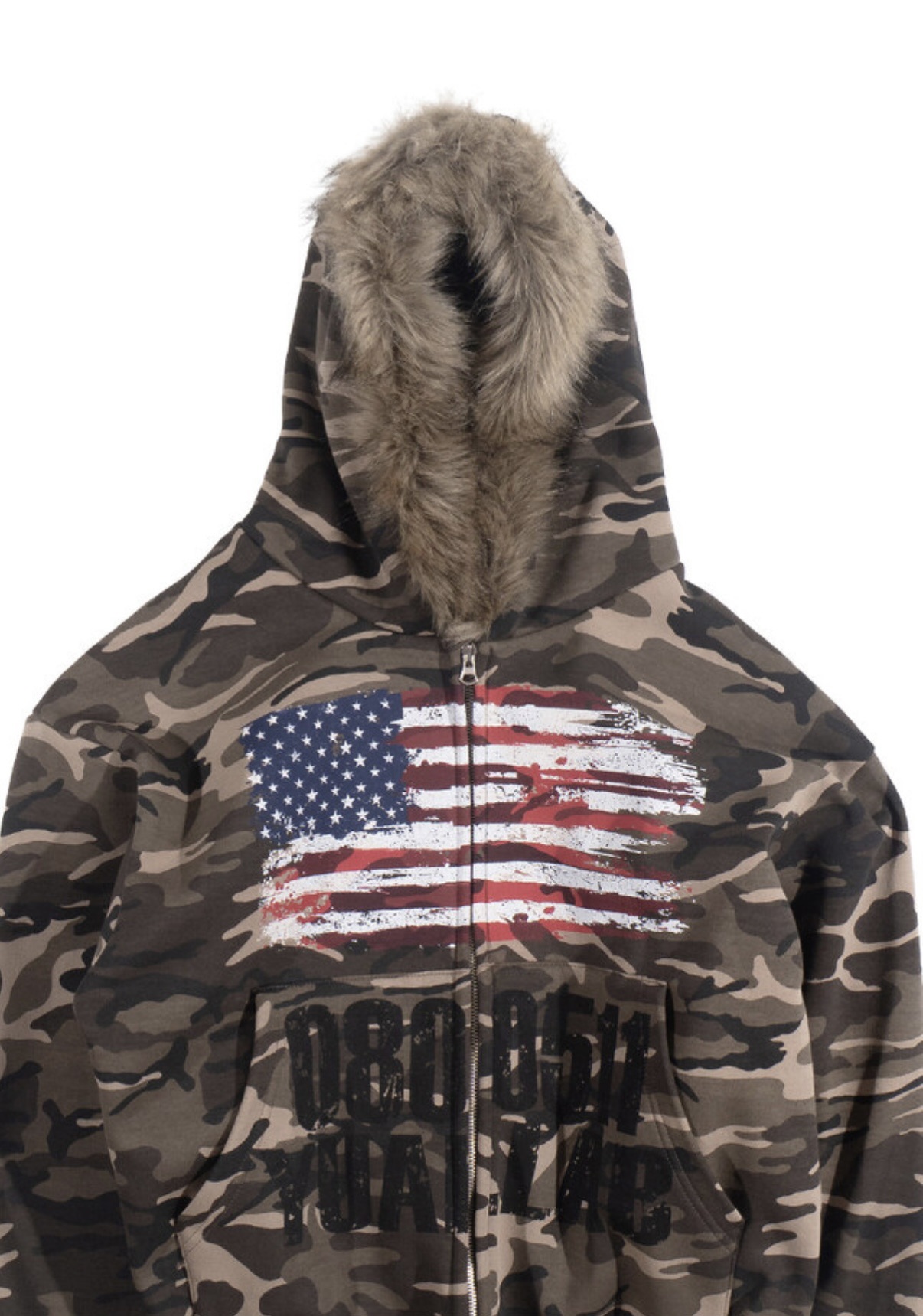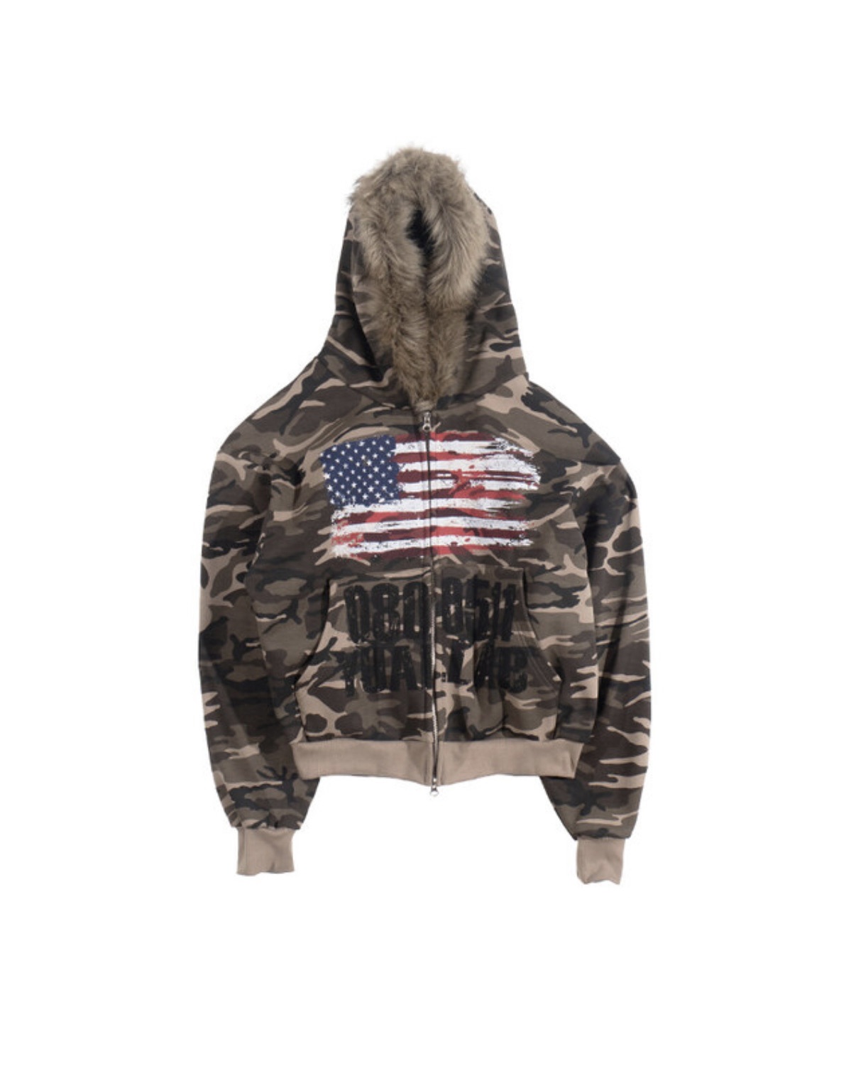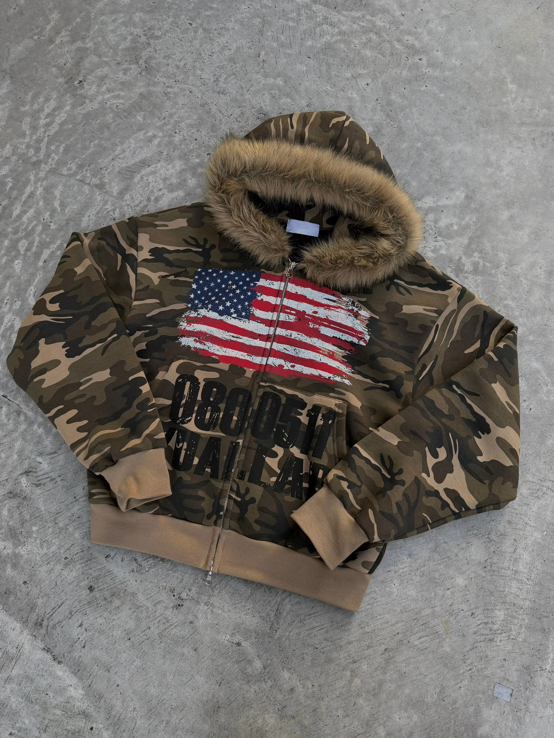 韓國 YUAI.LAB 美式 迷彩 刷漆 BOXY 短版 絨毛 拉鍊 連帽外套 82MAJOR 南誠模 同款 (2color)