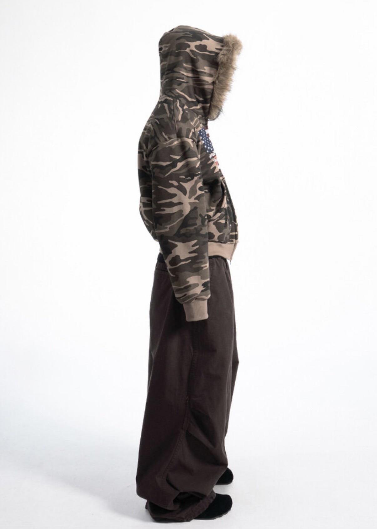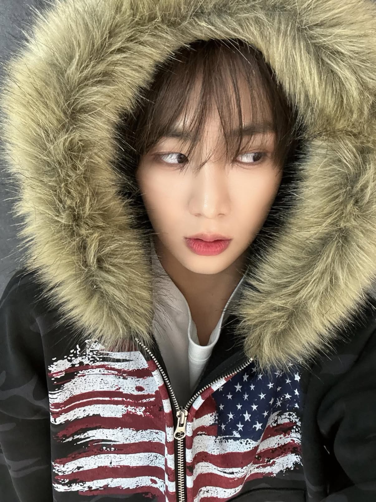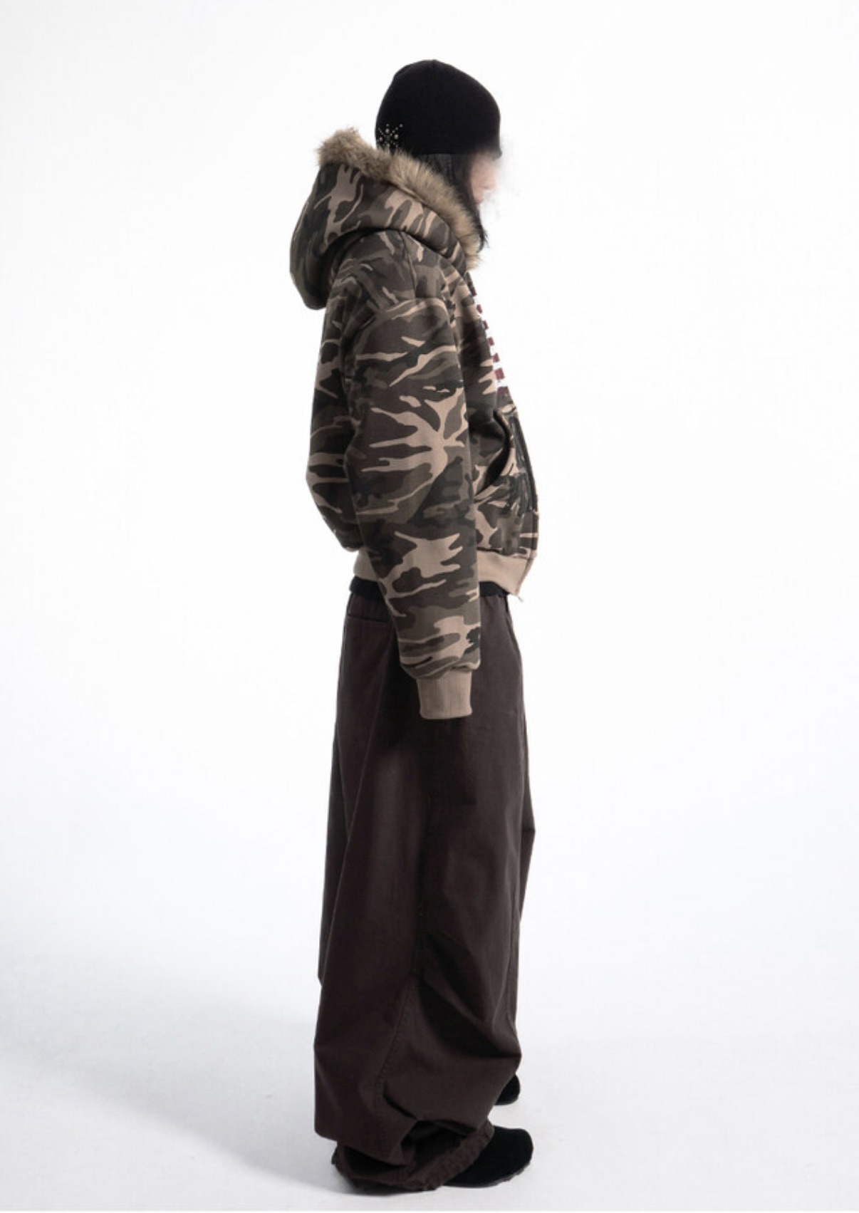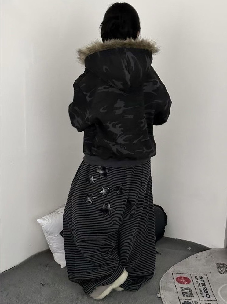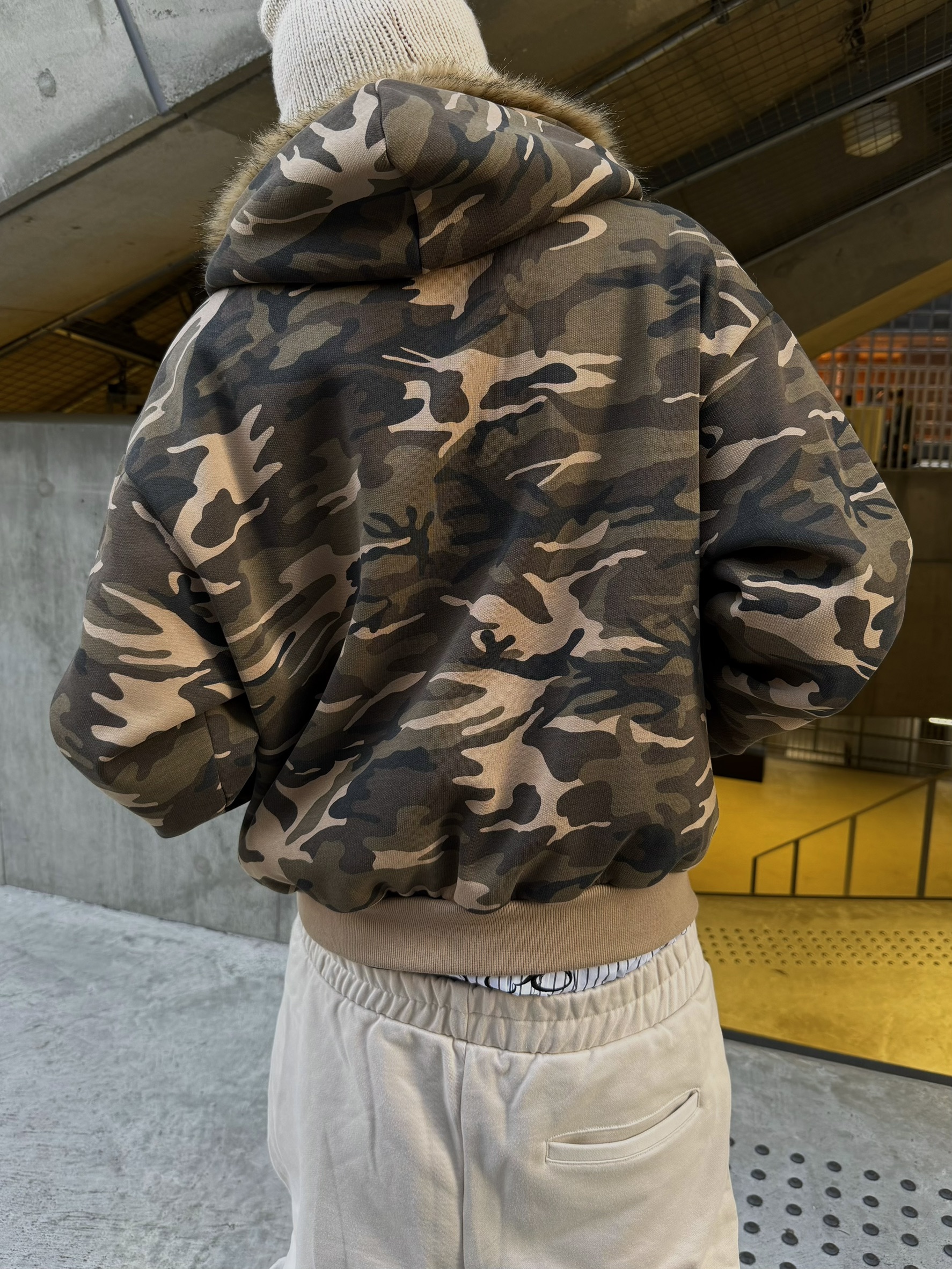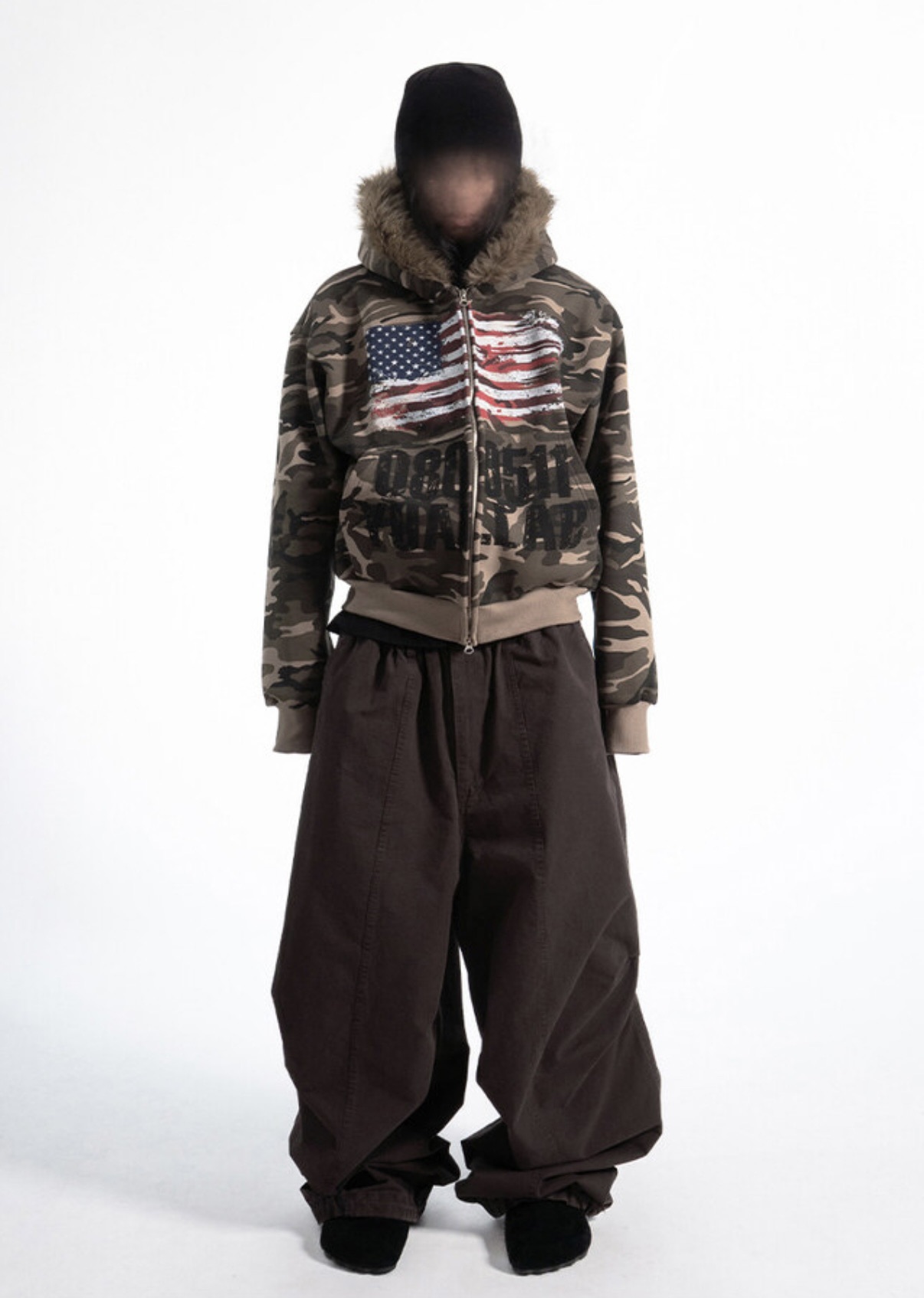 韓國 YUAI.LAB 美式 迷彩 刷漆 BOXY 短版 絨毛 拉鍊 連帽外套 82MAJOR 南誠模 同款 (2color)