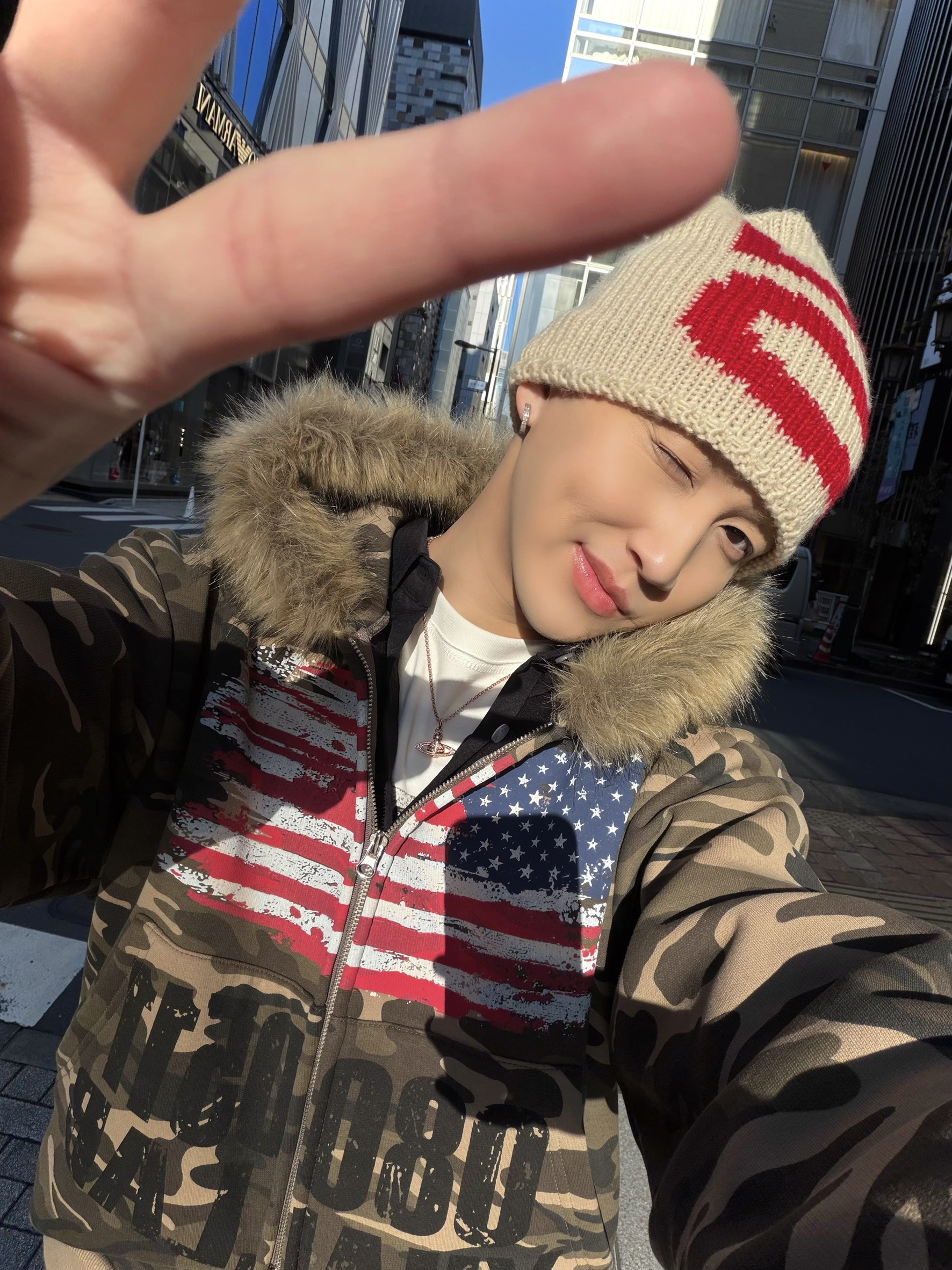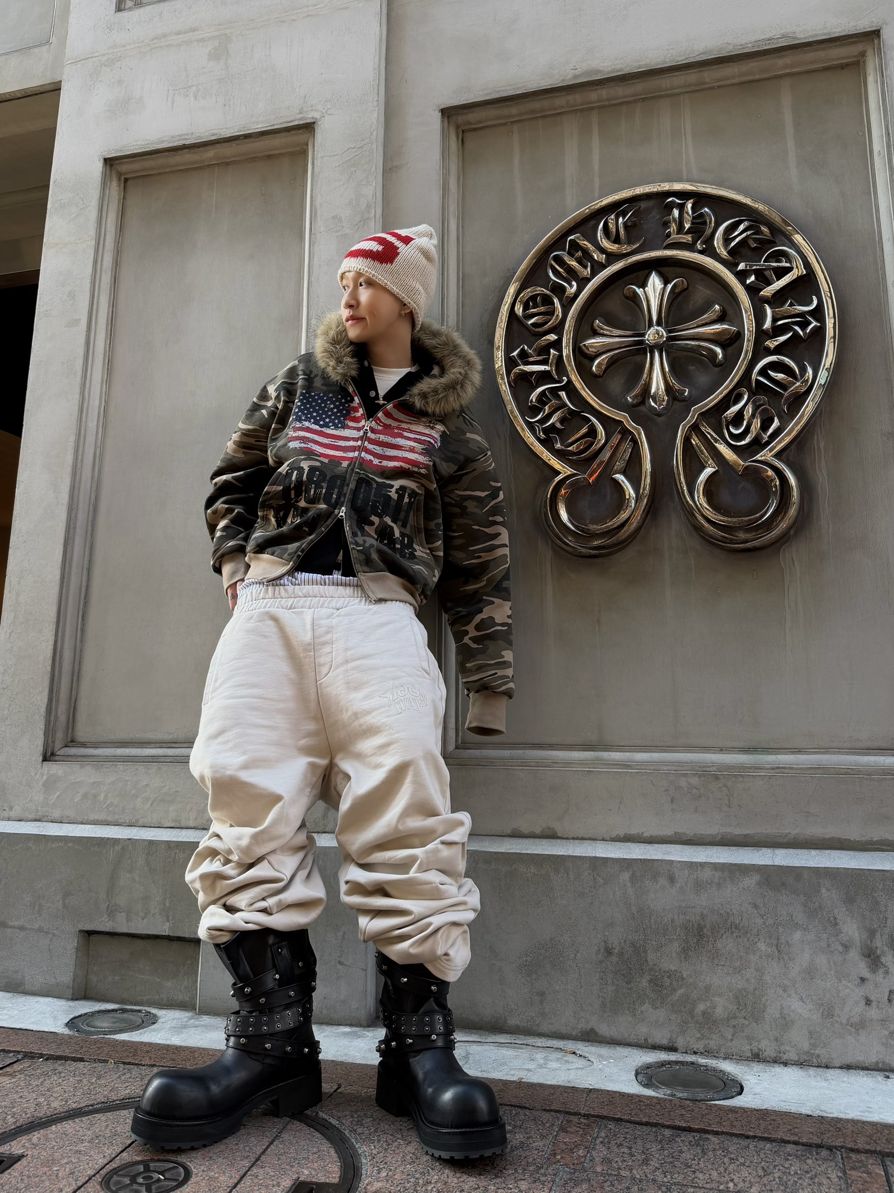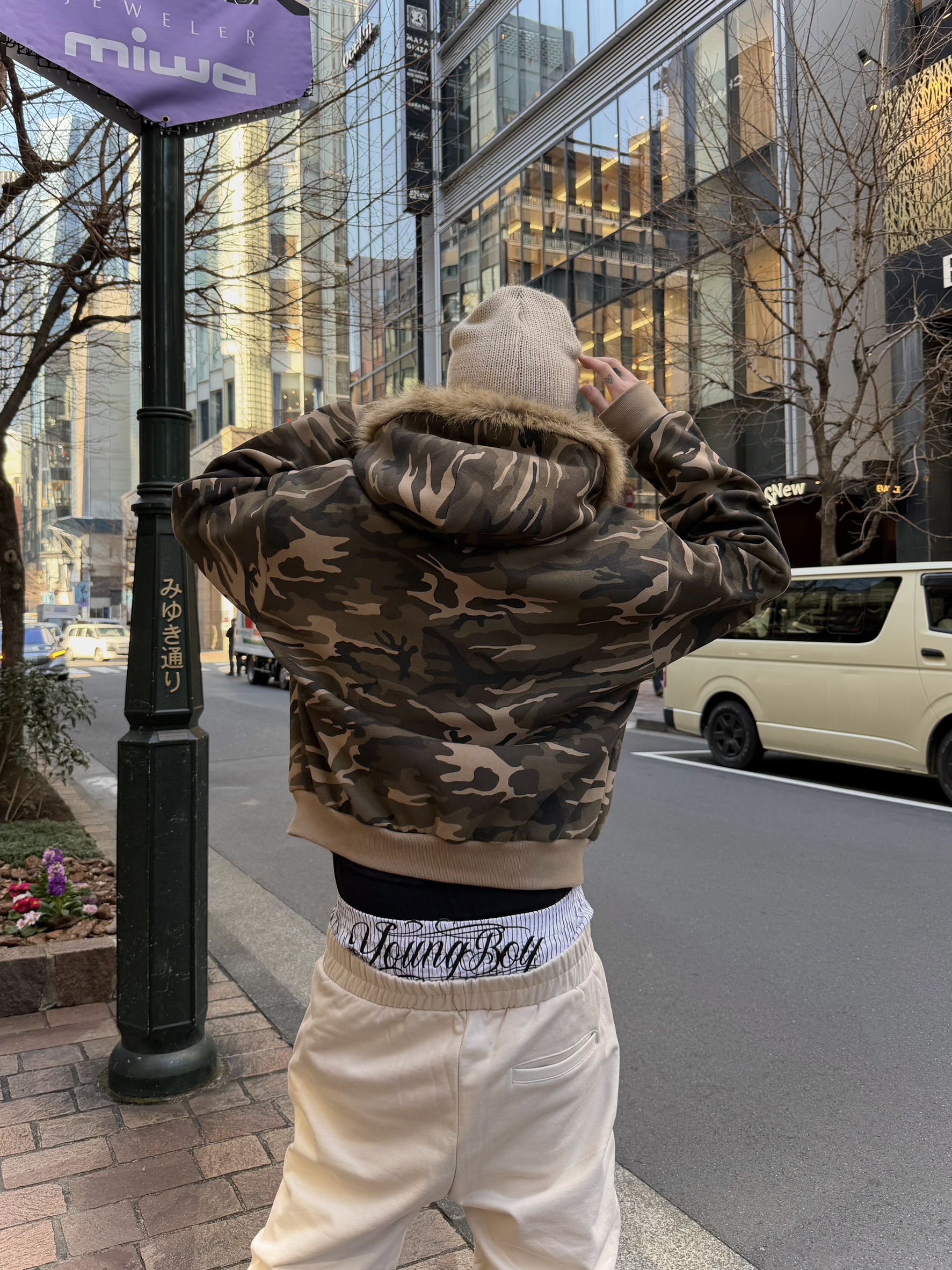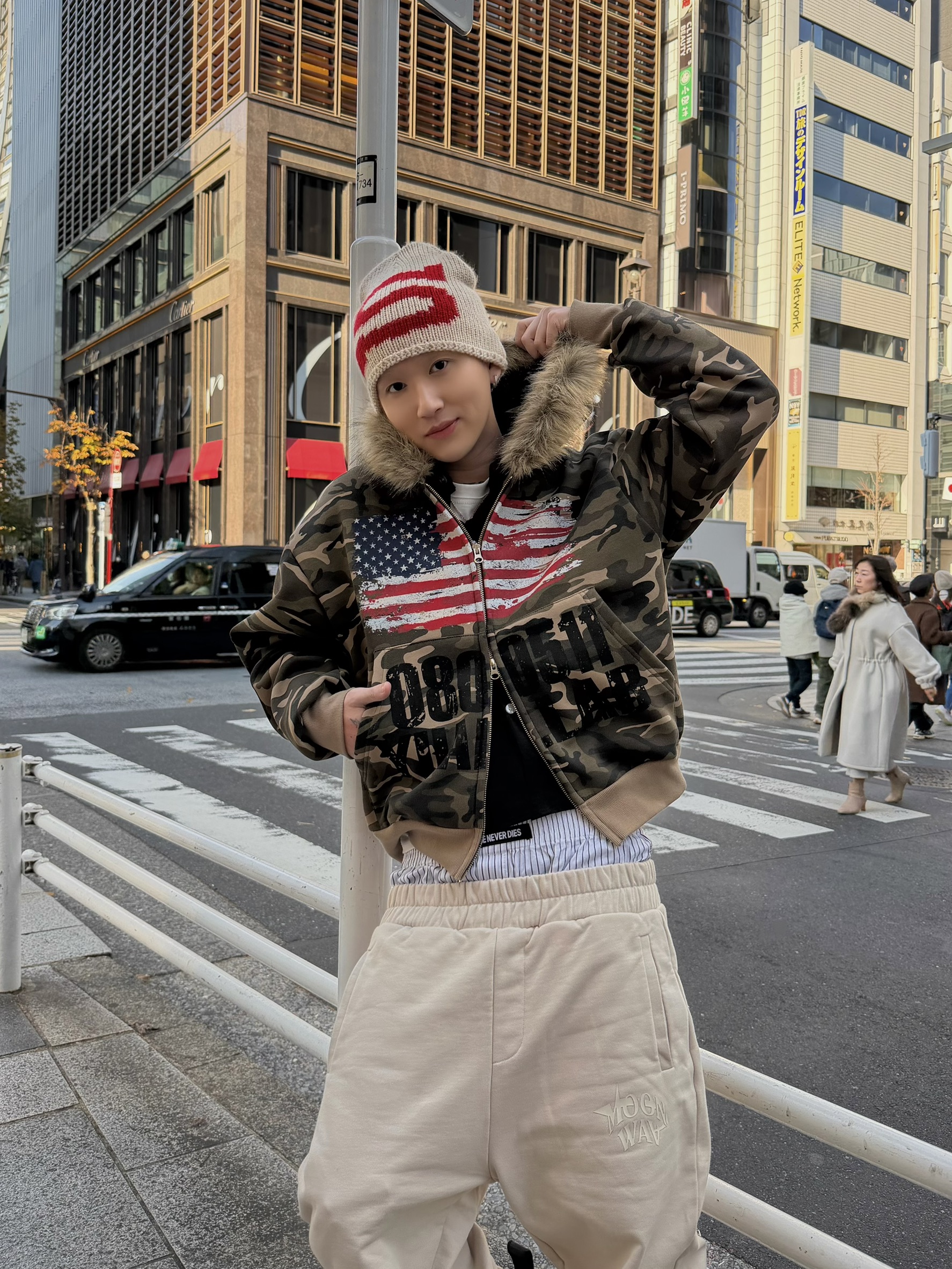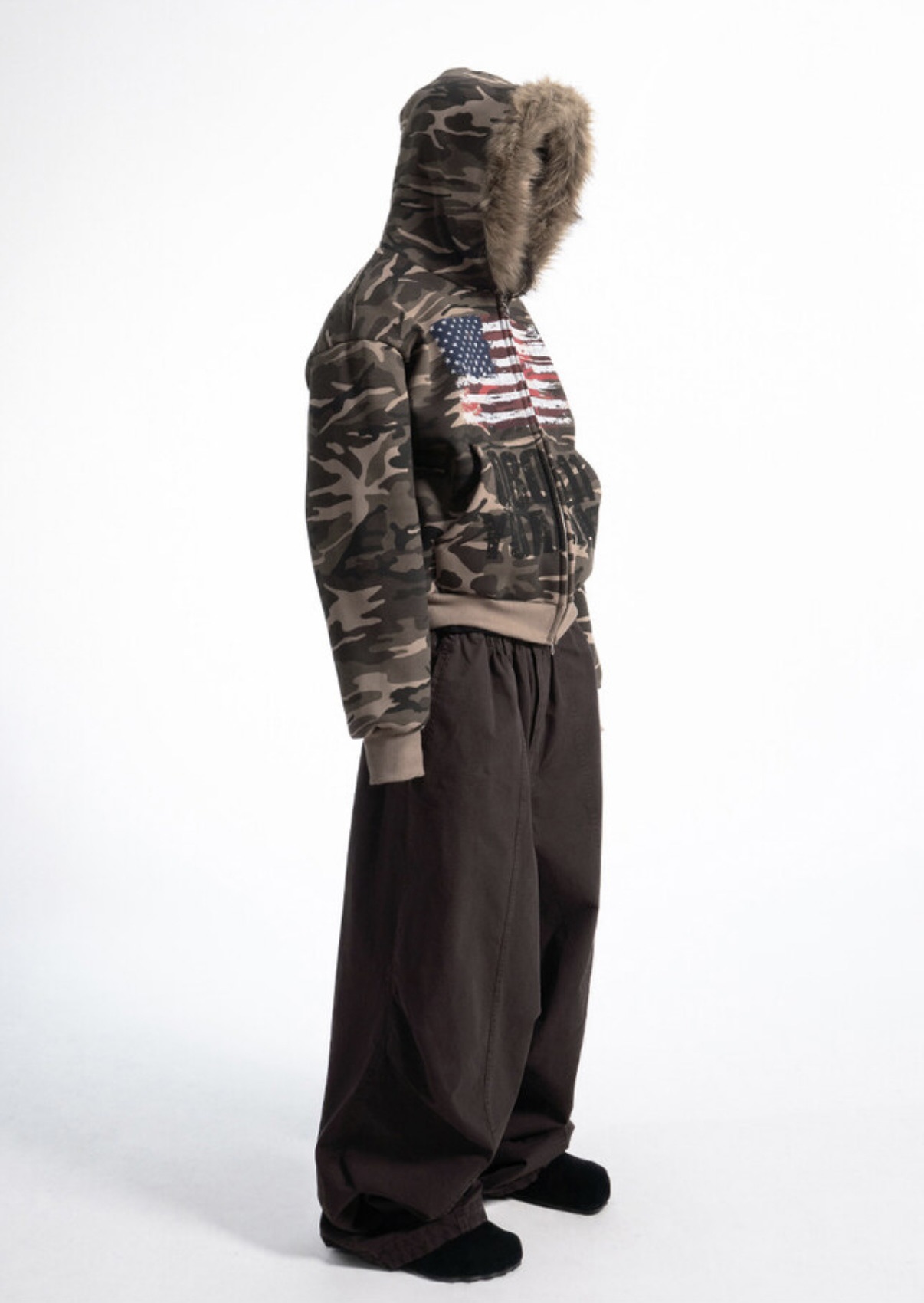 韓國 YUAI.LAB 美式 迷彩 刷漆 BOXY 短版 絨毛 拉鍊 連帽外套 82MAJOR 南誠模 同款 (2color)