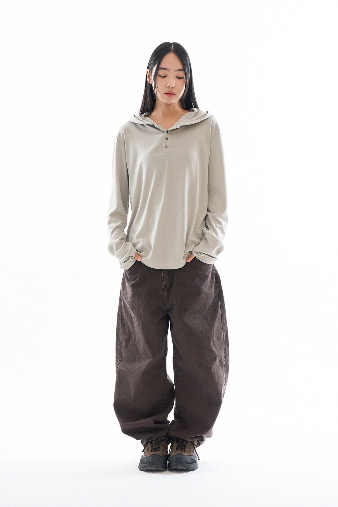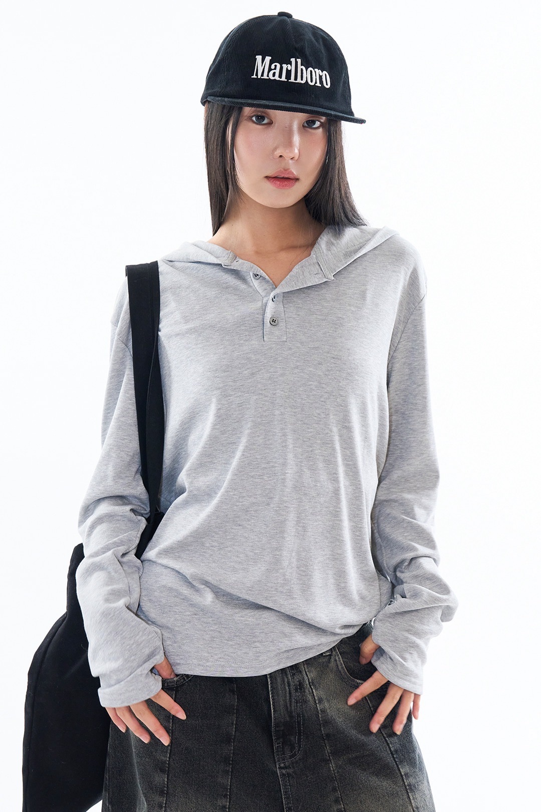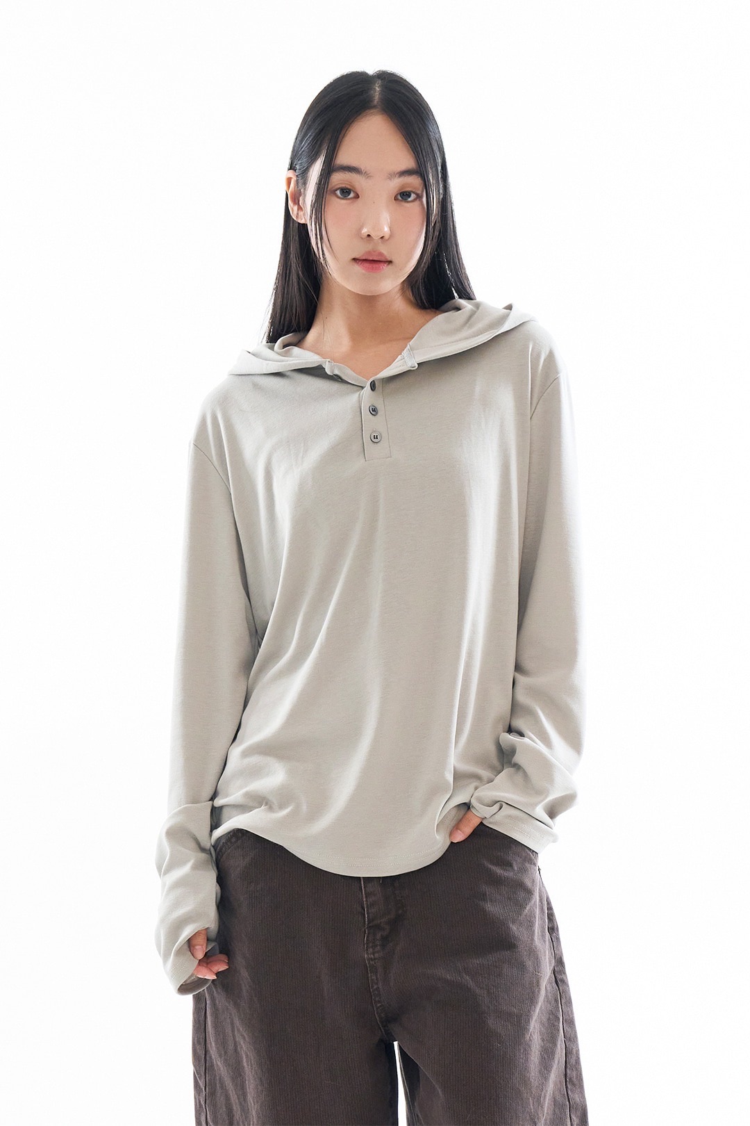 Rauco house 指套設計 素色 鈕扣 連帽 長袖 上衣 (4color)