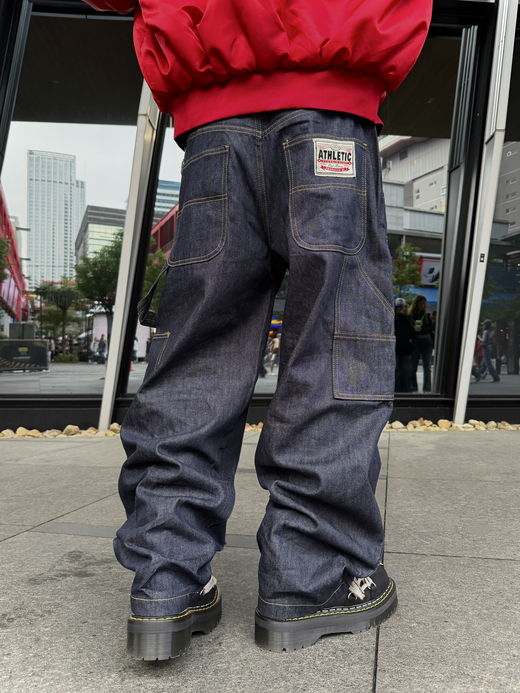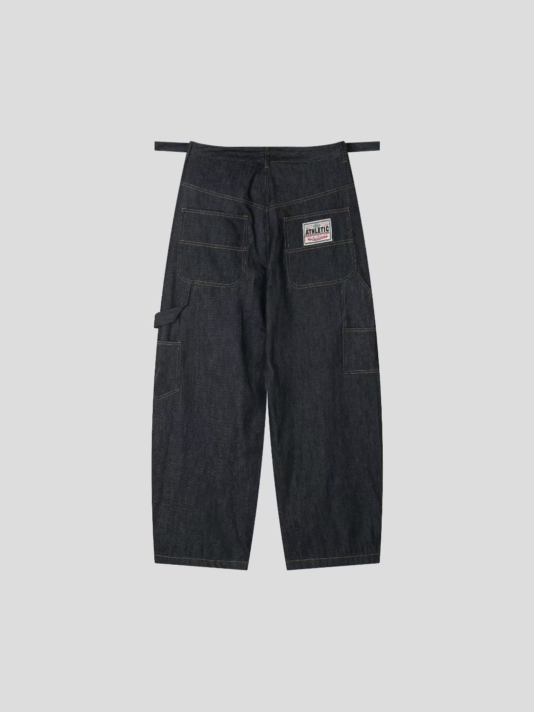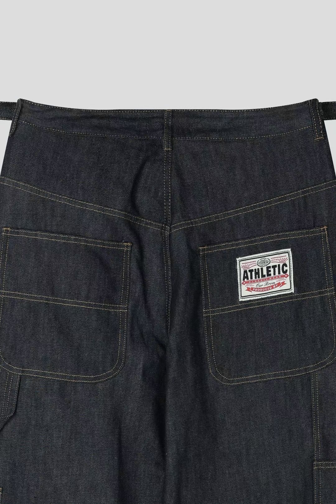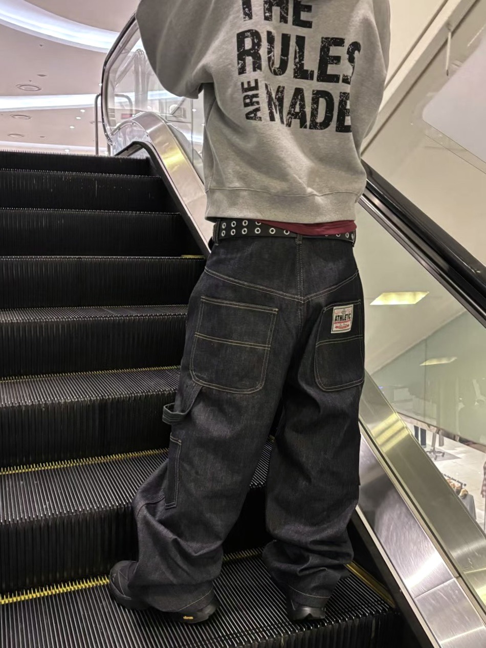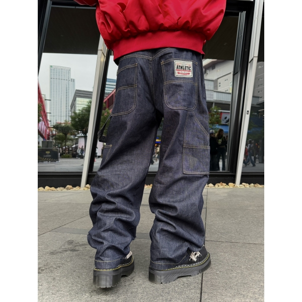 韓國 ATHLETIC 設計感 小標 皺摺感 立體 硬挺 丹寧 寬版 牛仔褲 (Grailz聯名可參考)