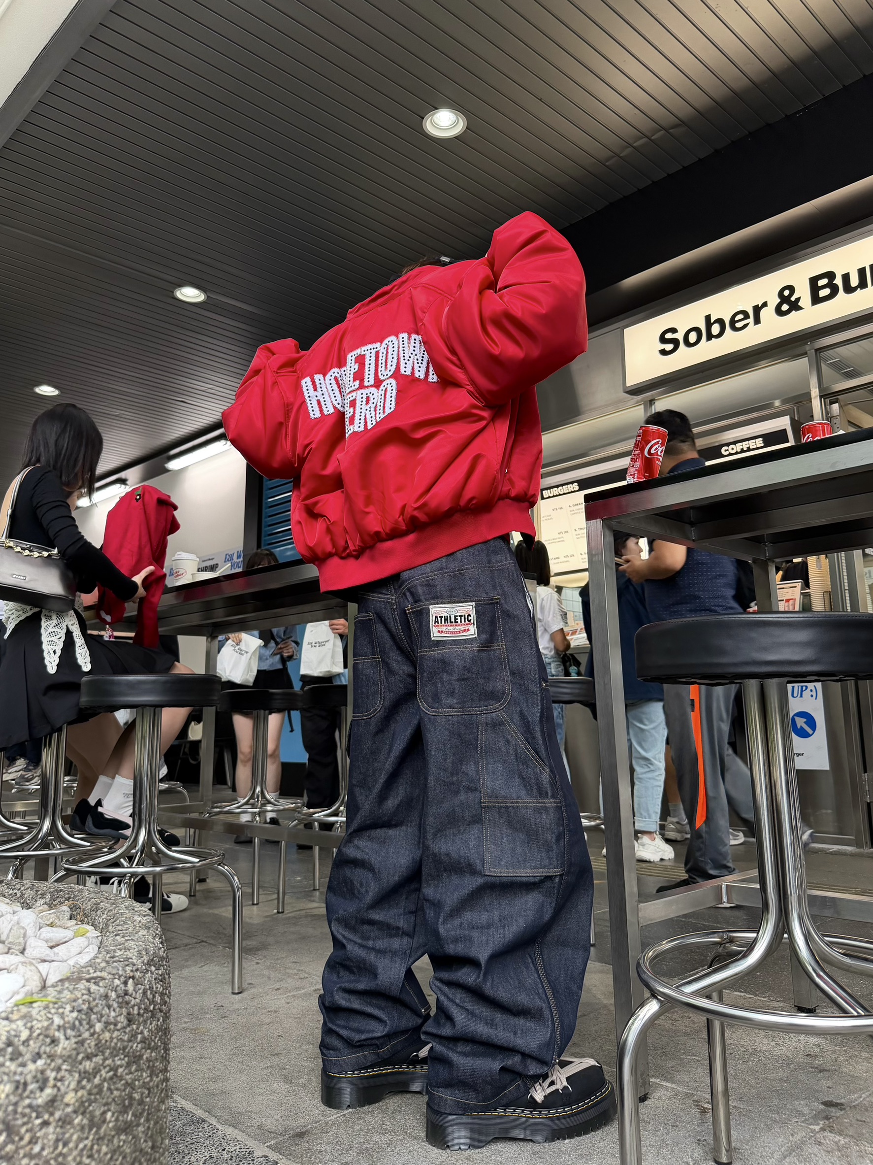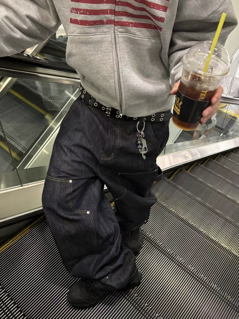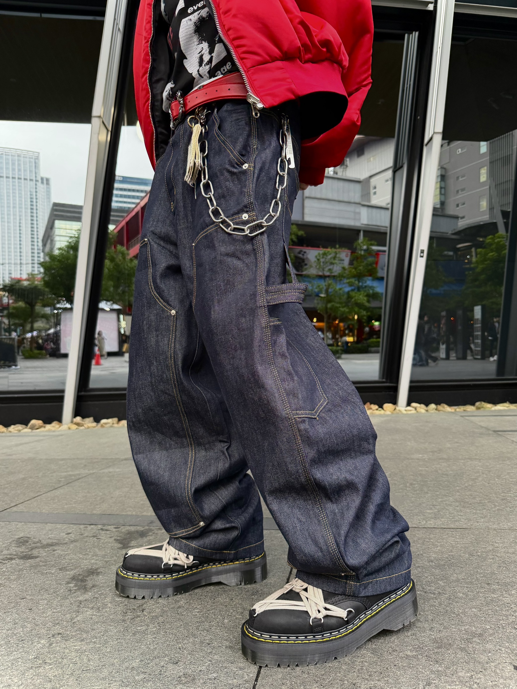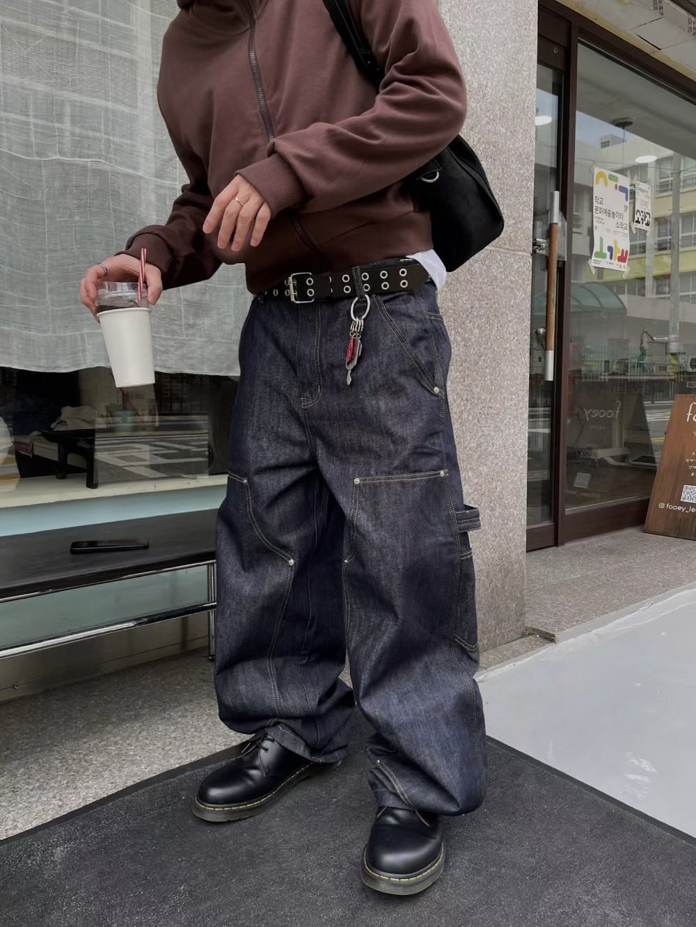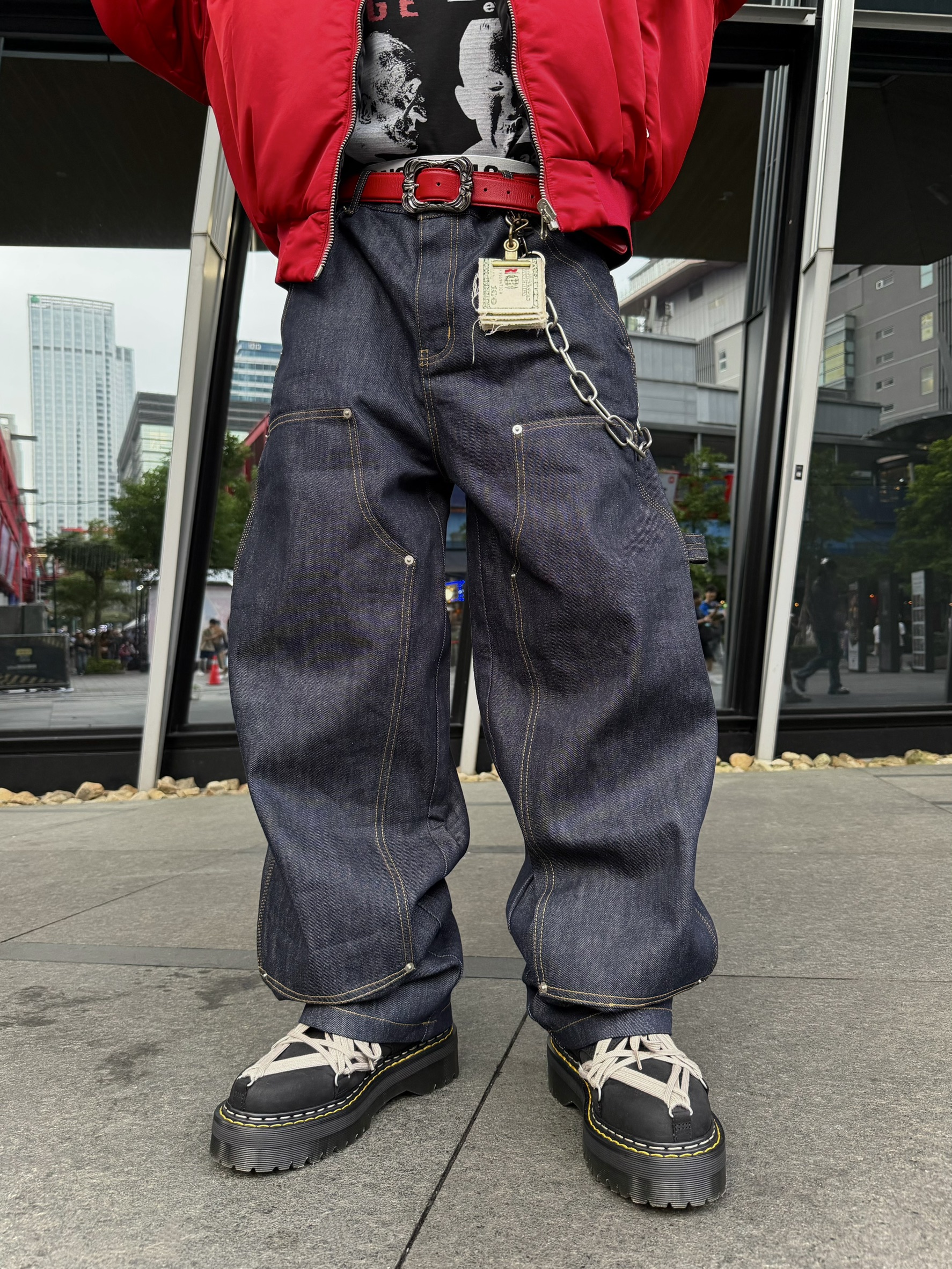 韓國 ATHLETIC 設計感 小標 皺摺感 立體 硬挺 丹寧 寬版 牛仔褲 (Grailz聯名可參考)