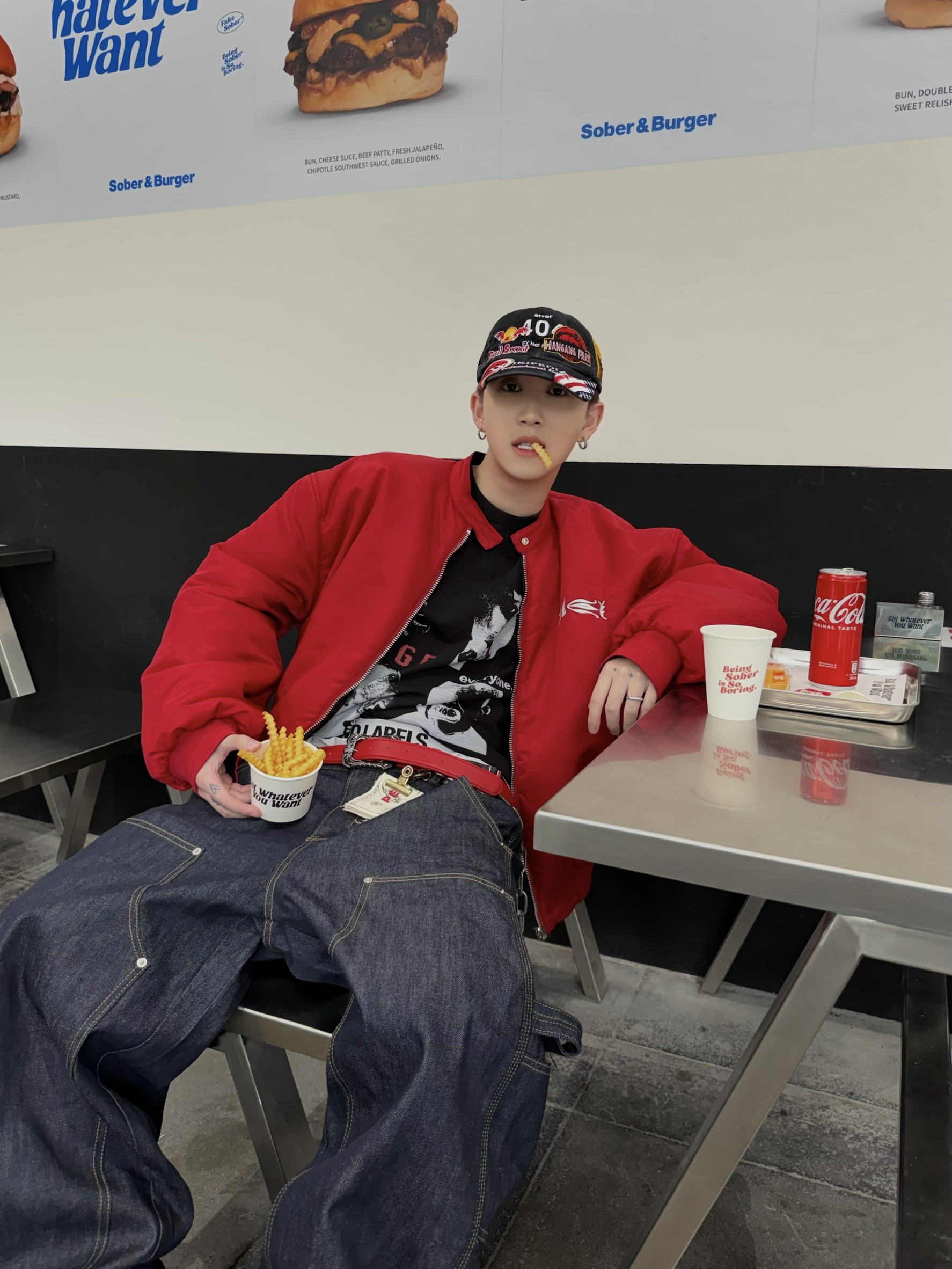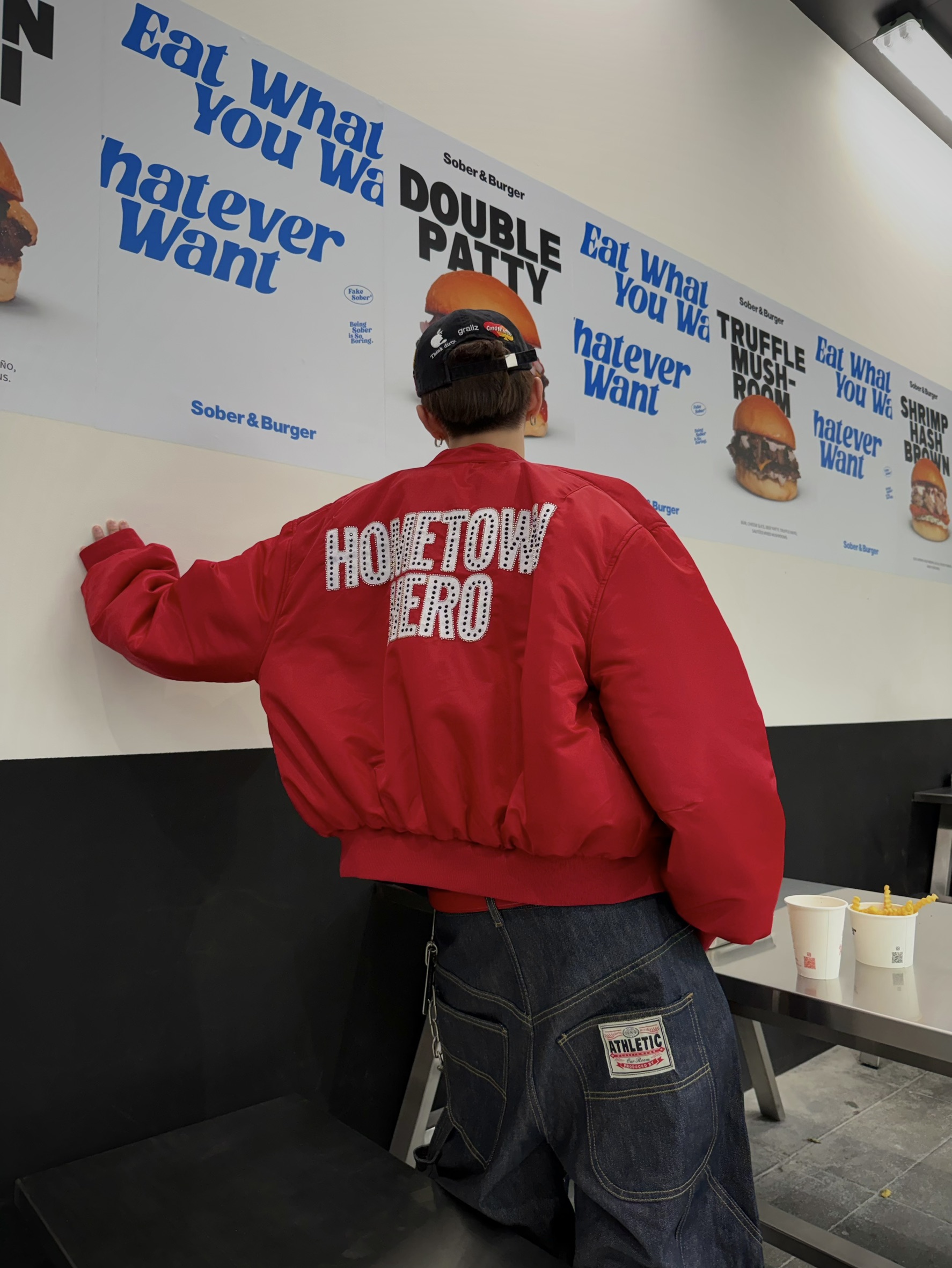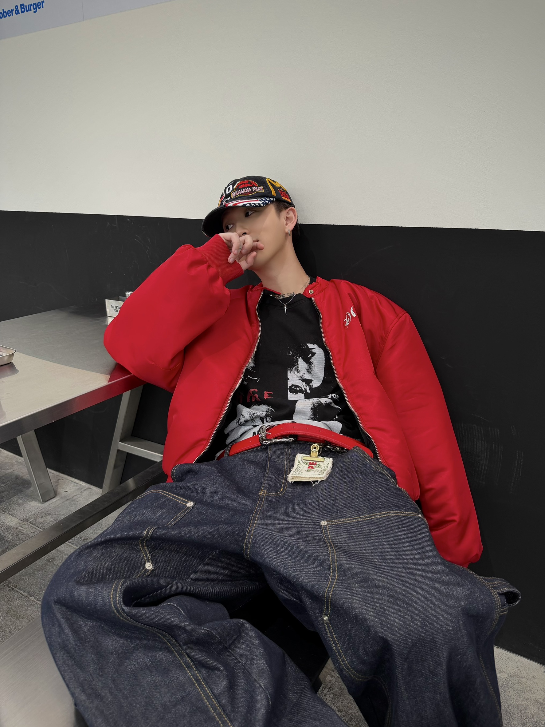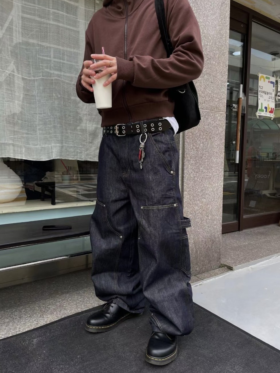 韓國 ATHLETIC 設計感 小標 皺摺感 立體 硬挺 丹寧 寬版 牛仔褲 (Grailz聯名可參考)