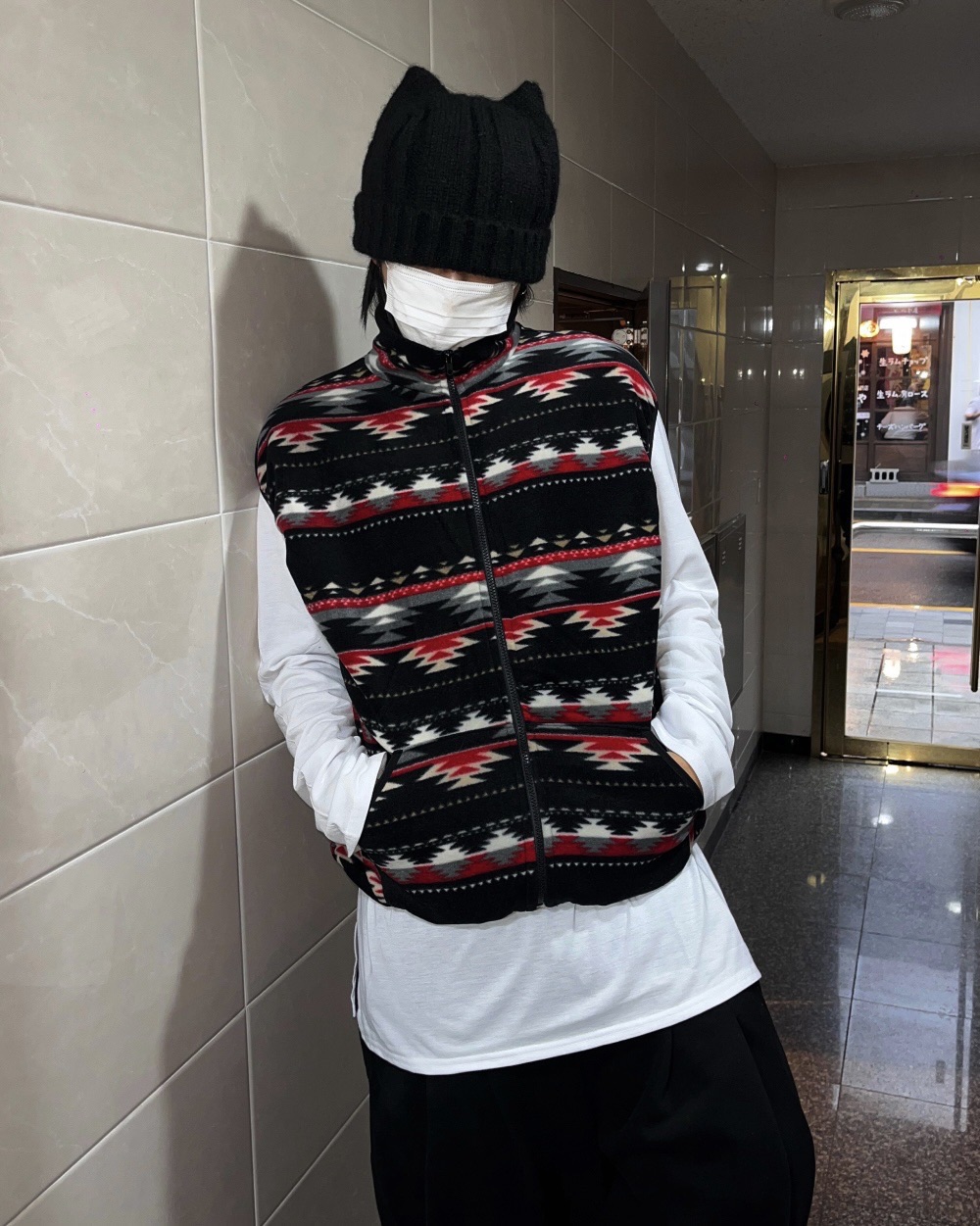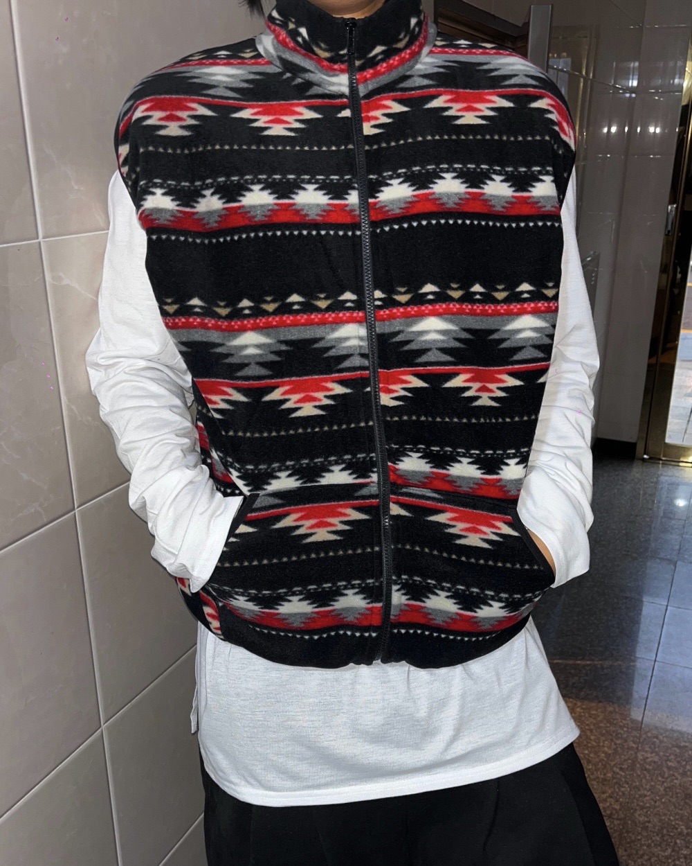 Cause closet 聖誕vibe 圖騰 搖粒絨 外搭 拉鍊背心 (3color)