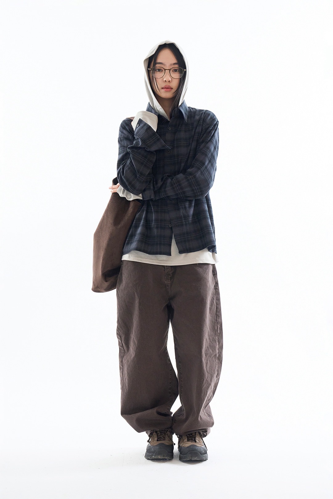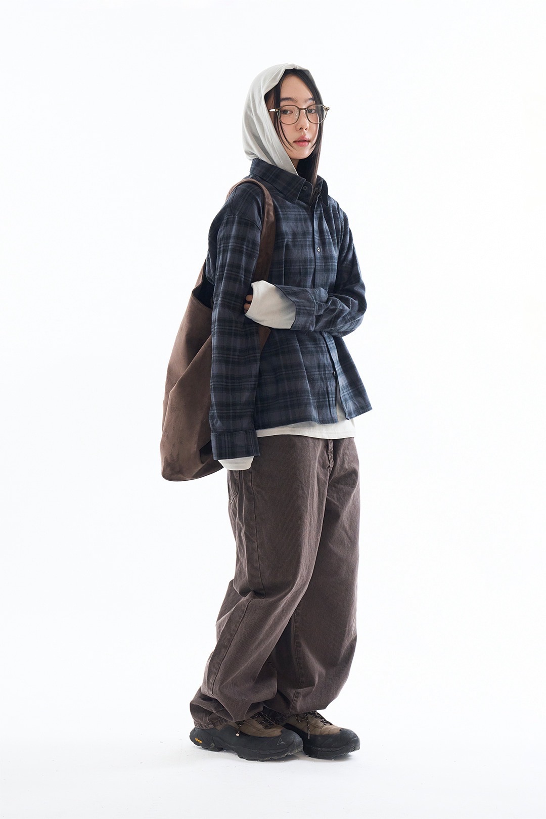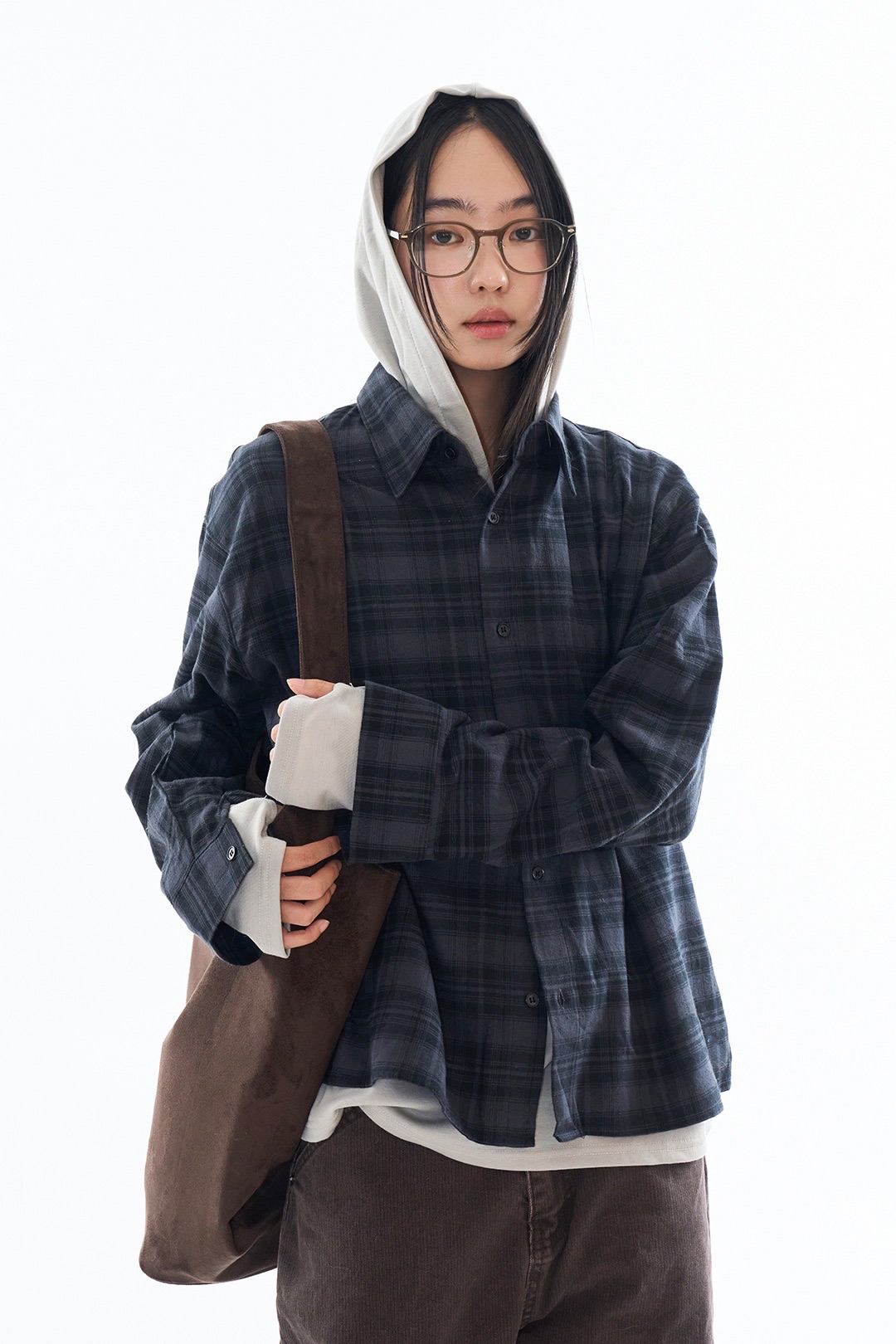 Rauco house BOXY 格紋 暗色系 短版 鈕扣 長袖襯衫 (3color)