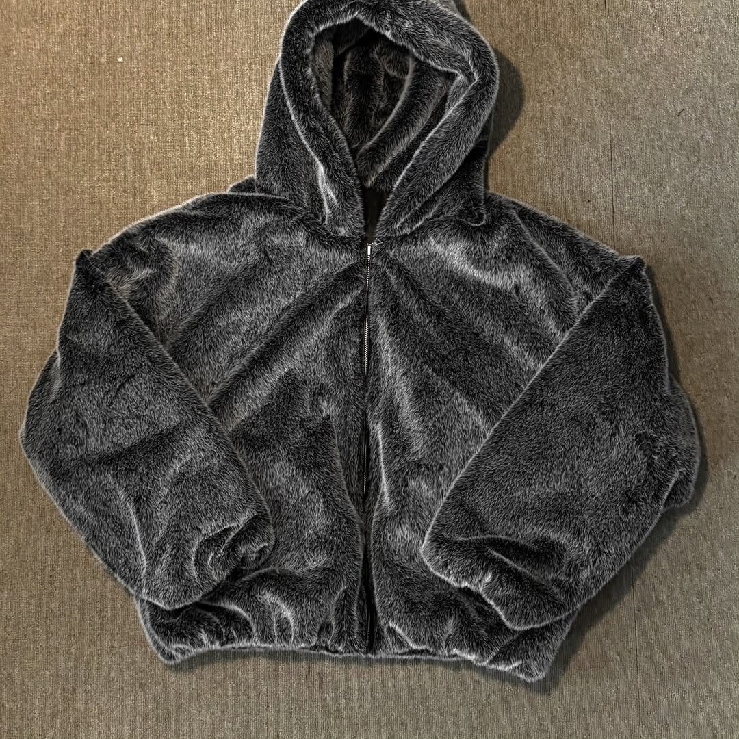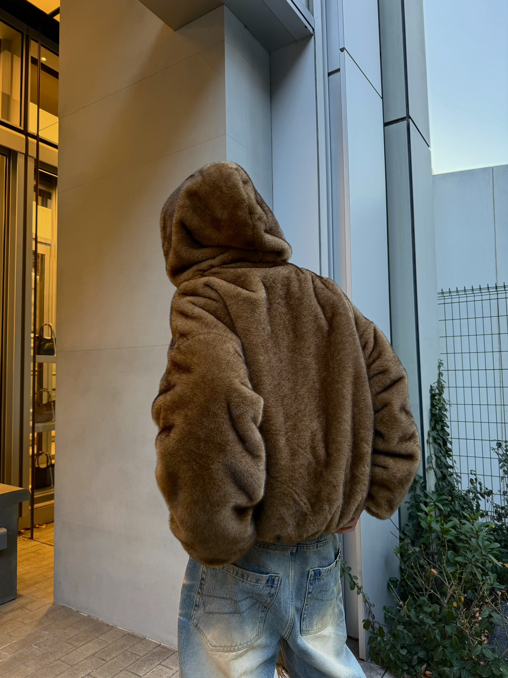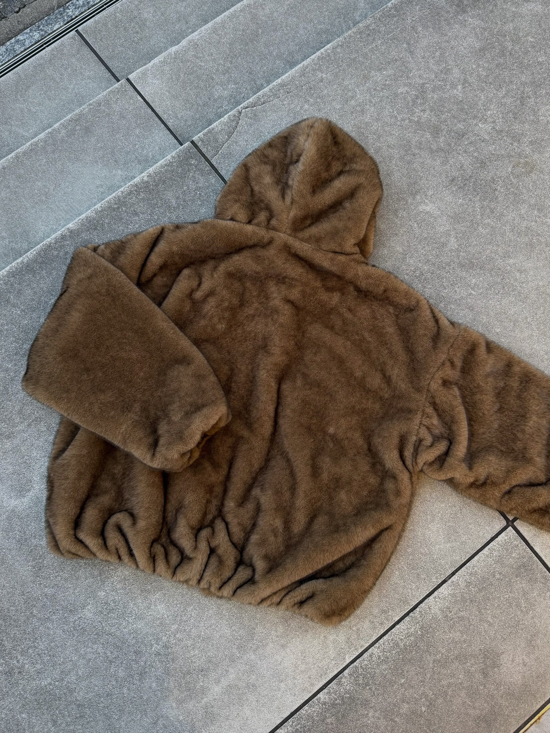 韓國 熊熊 貂絨毛 皮革 內裡 重磅 超保暖 拉鍊 連帽外套 (2color)