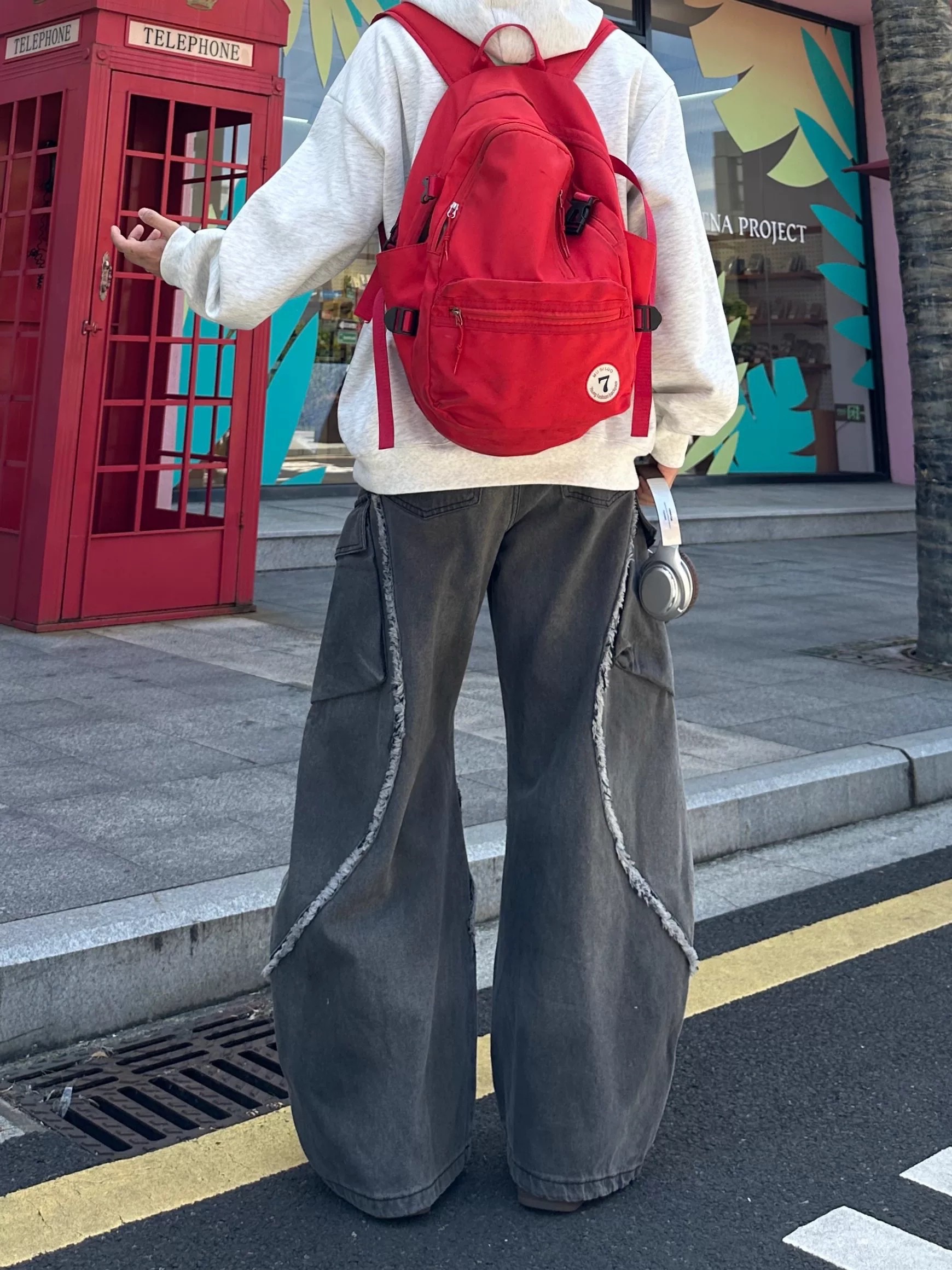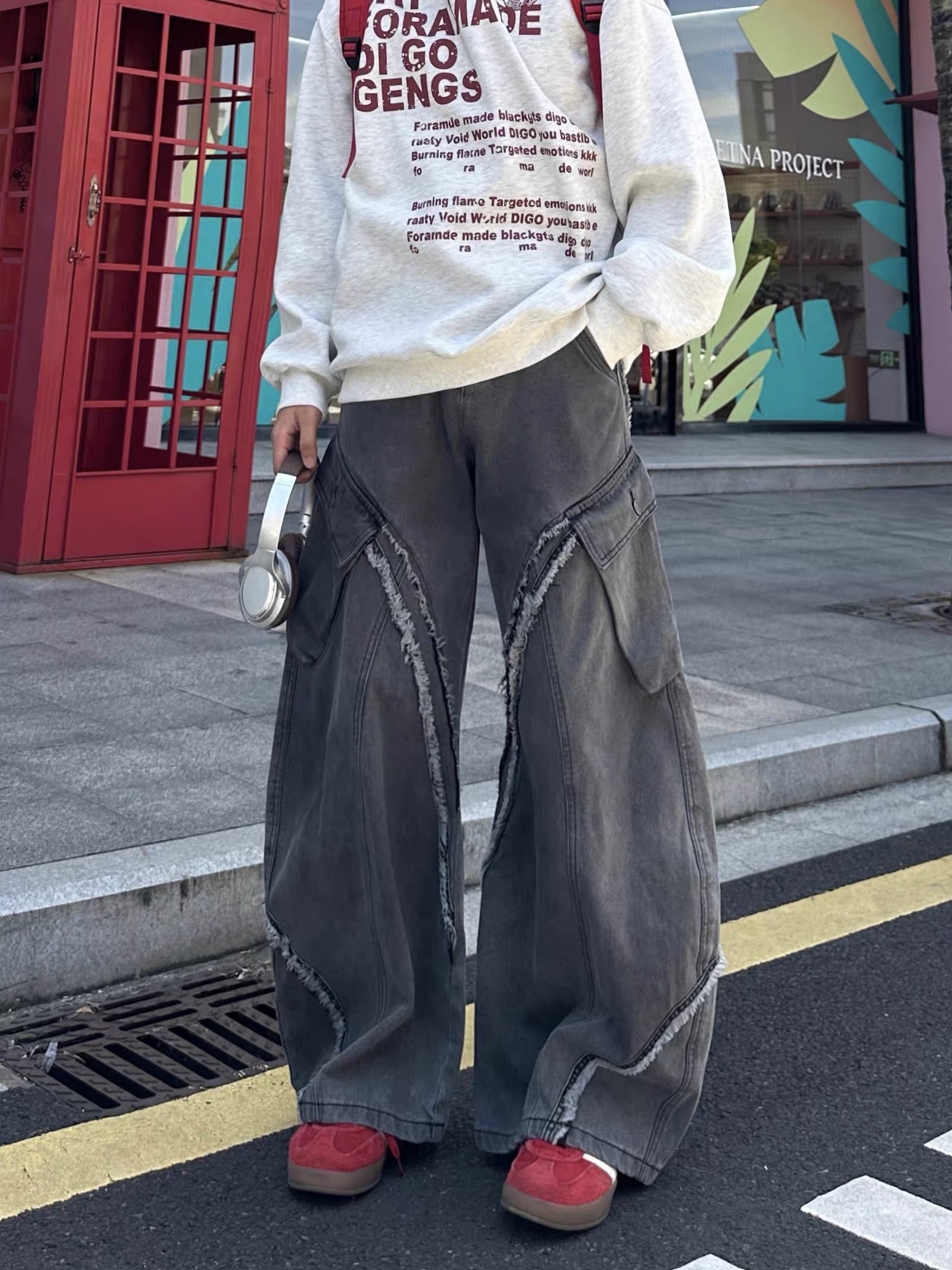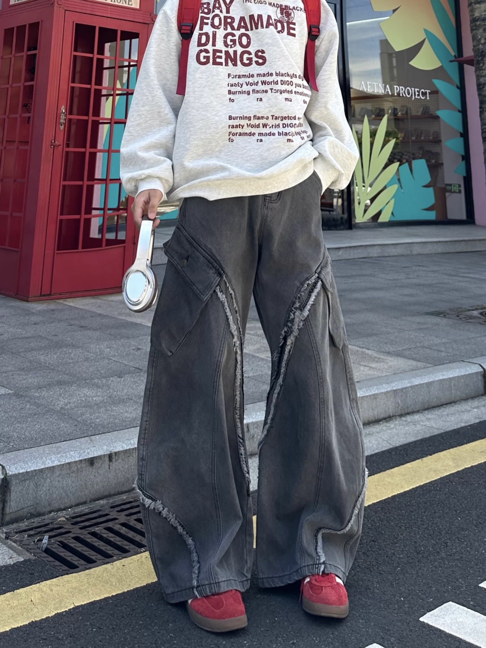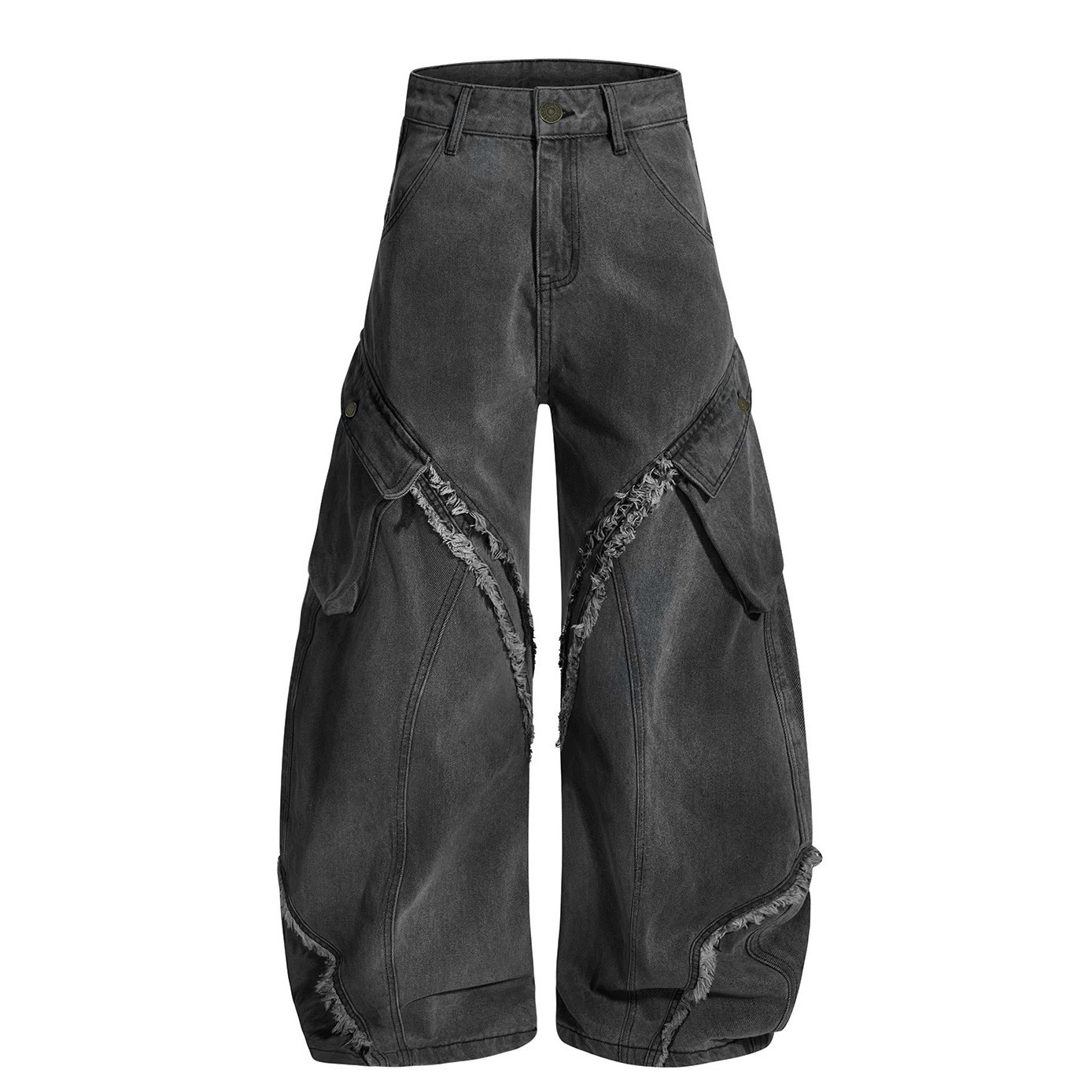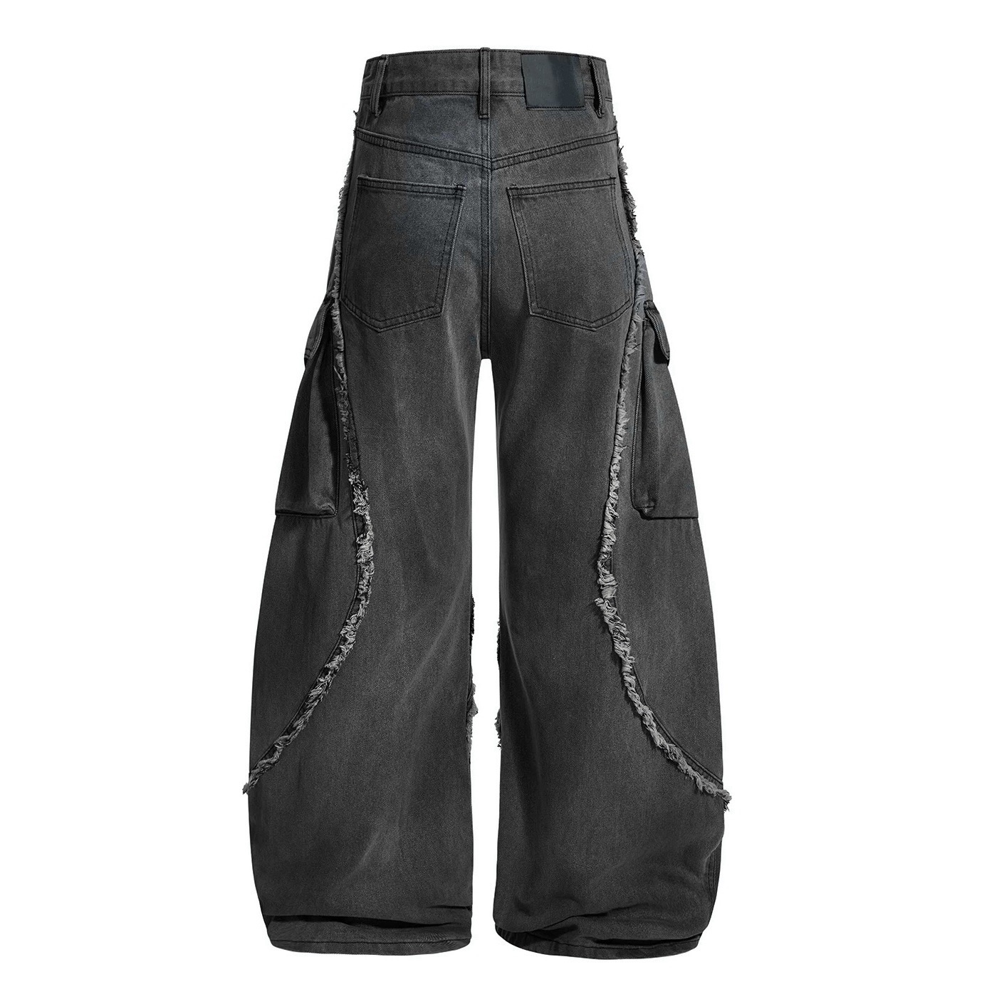 毛邊 破壞 設計感 立體 輪廓 水洗 寬版 牛仔褲