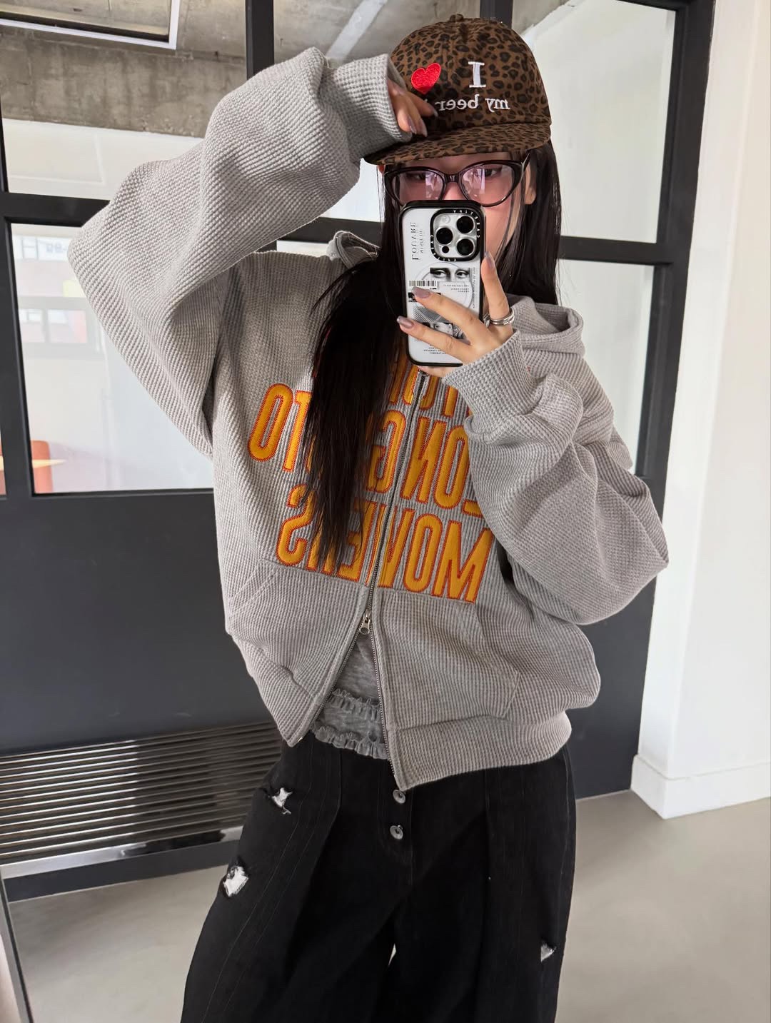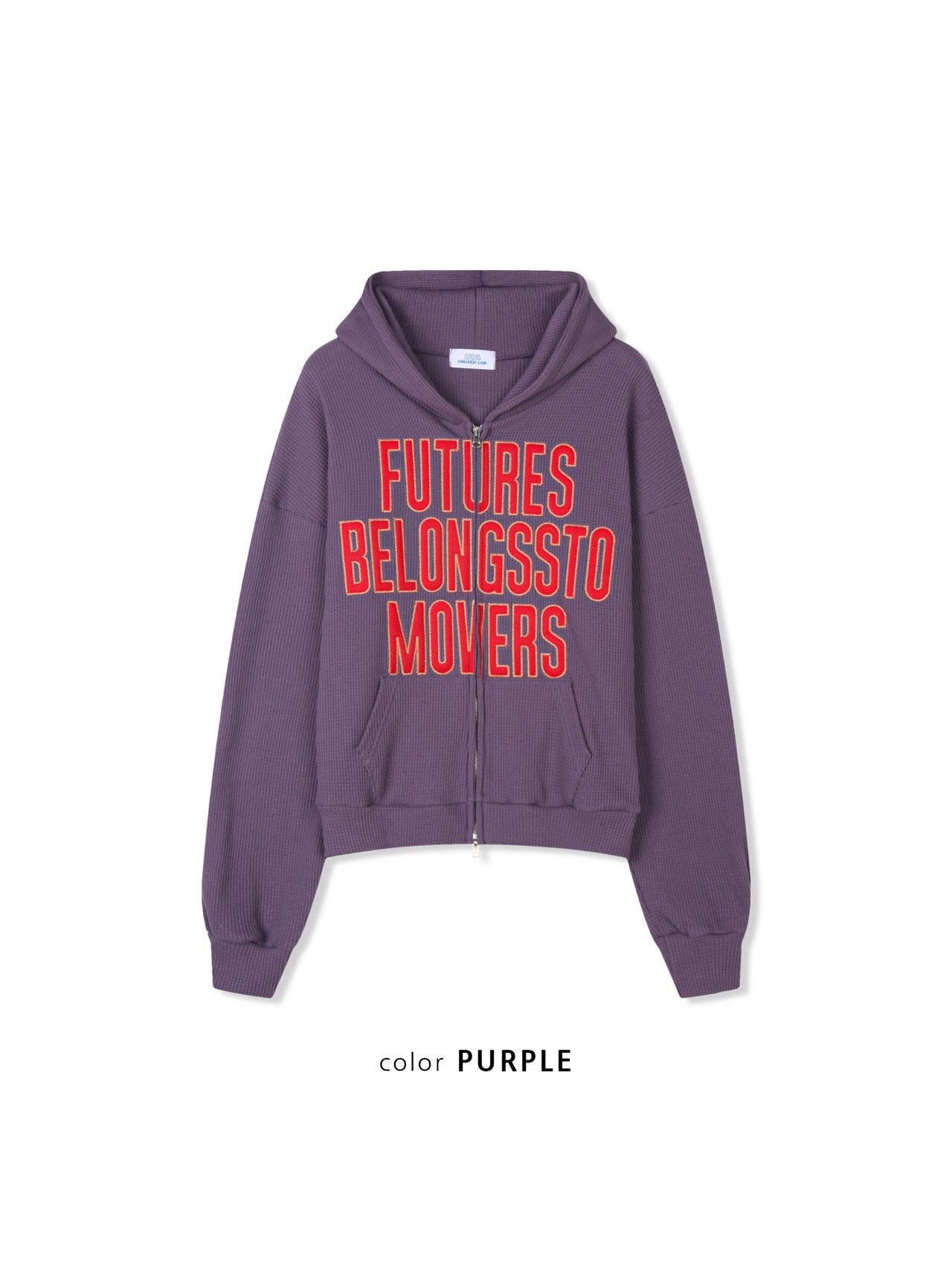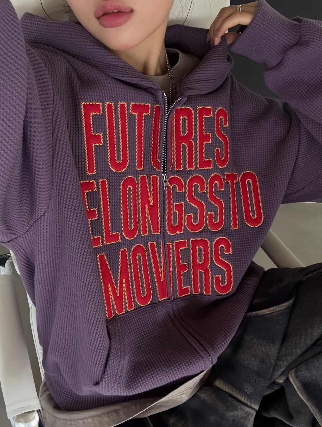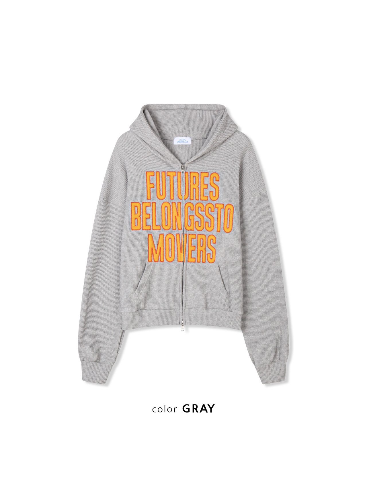 韓國 FUTURES 高級 華夫格 立體 刺繡 短版 雙拉鍊 連帽外套 (3color)