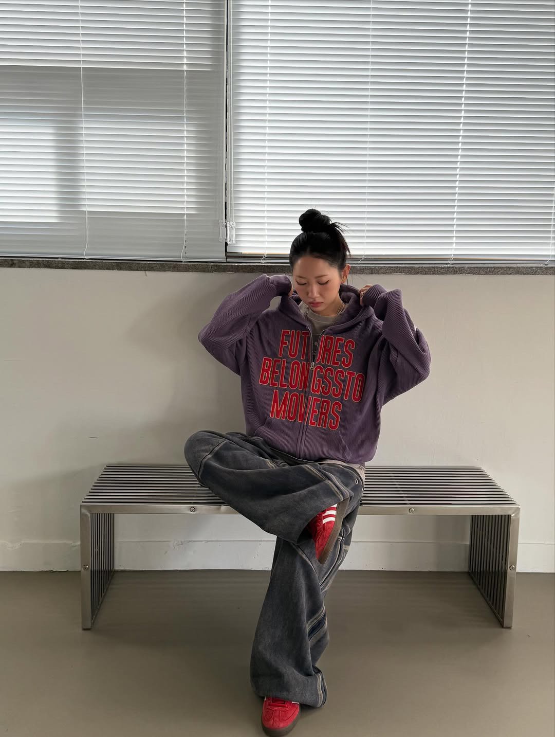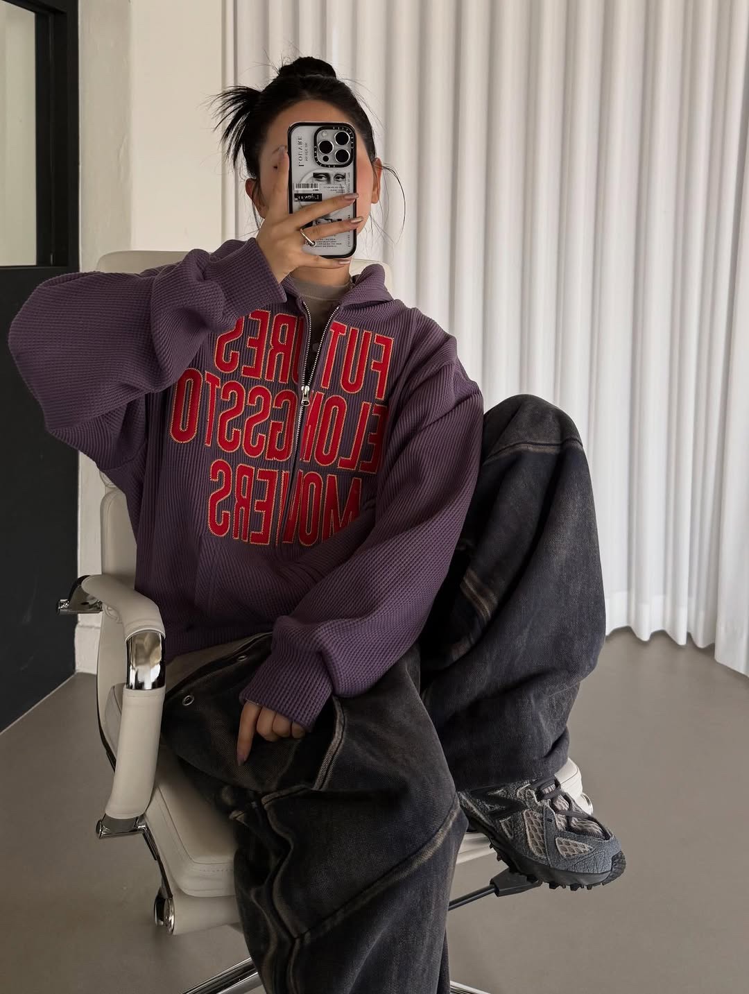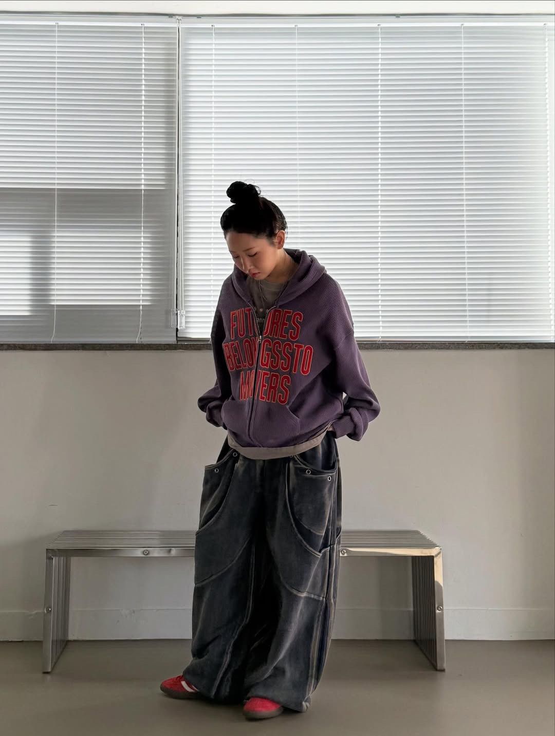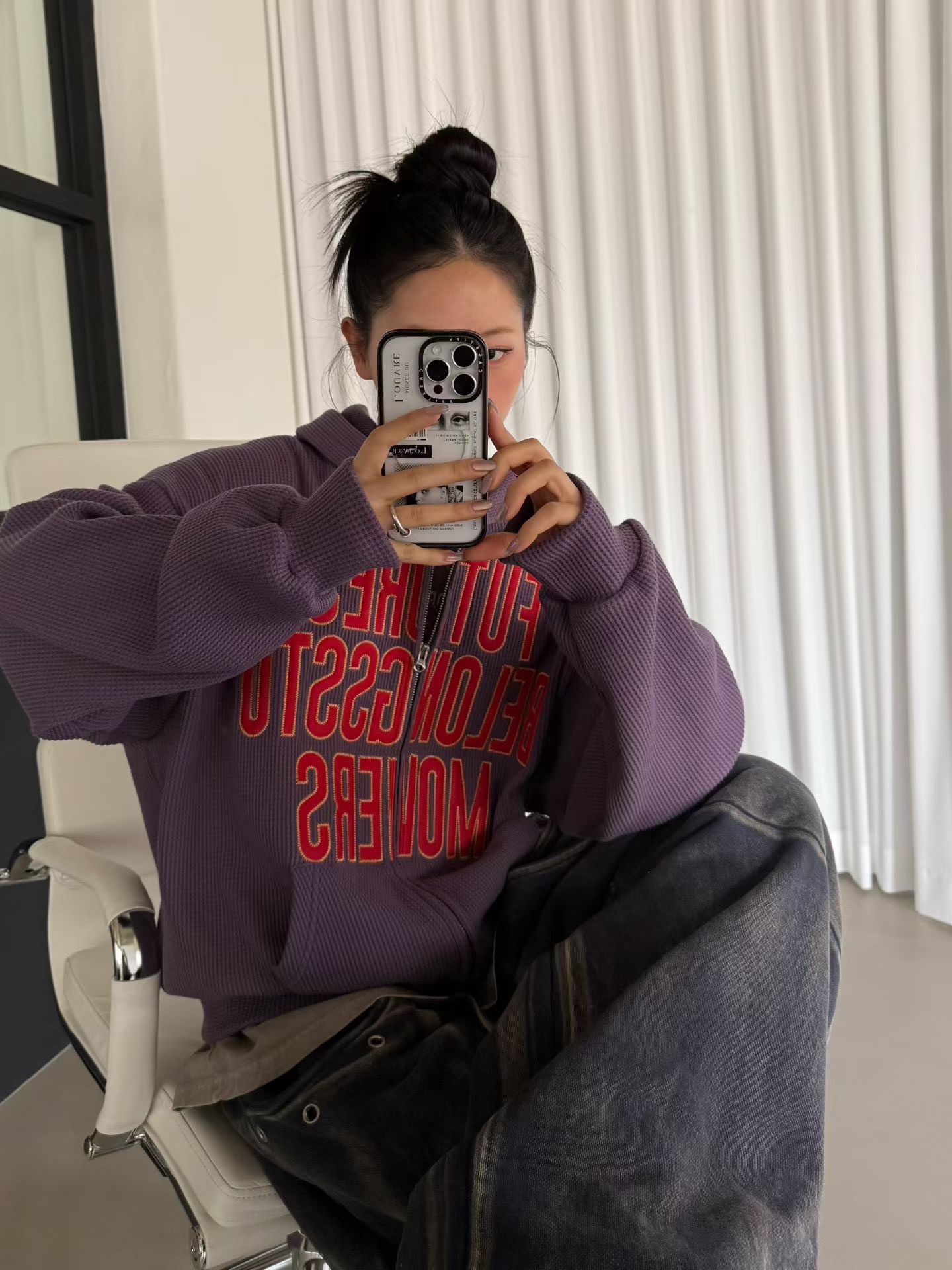 韓國 FUTURES 高級 華夫格 立體 刺繡 短版 雙拉鍊 連帽外套 (3color)