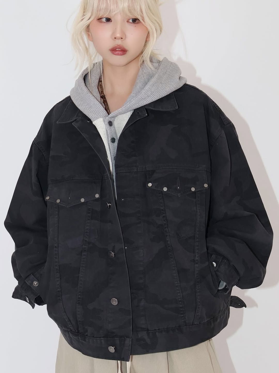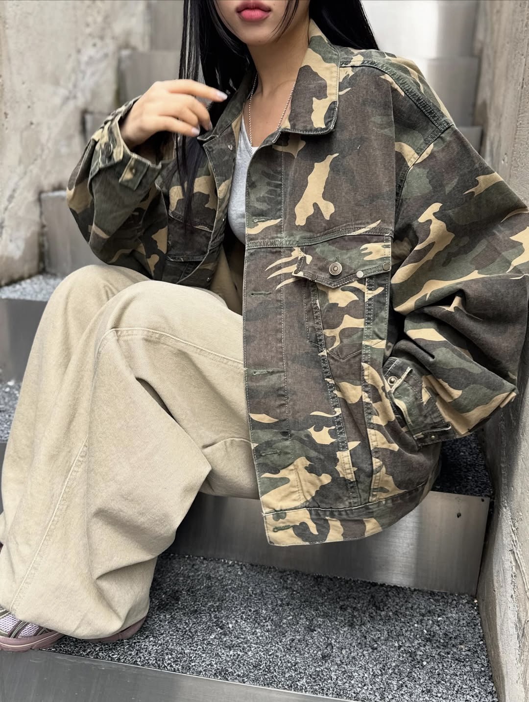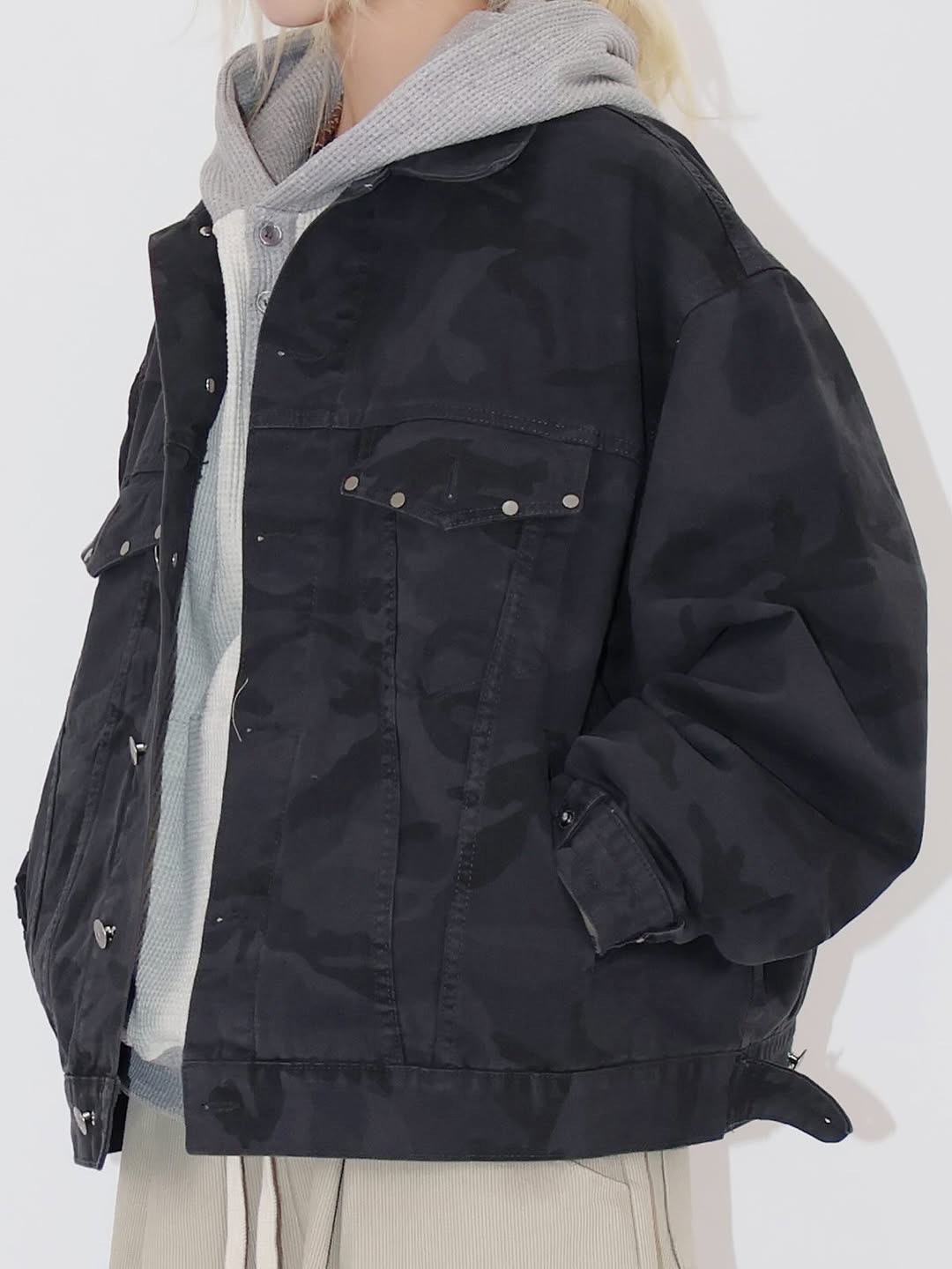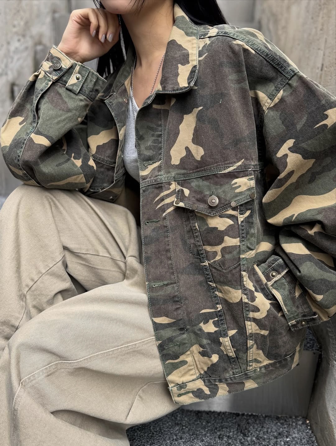 韓國 CAMO 迷彩 工裝感 雙口袋 重磅 立體 硬挺 外套 夾克 (2color)